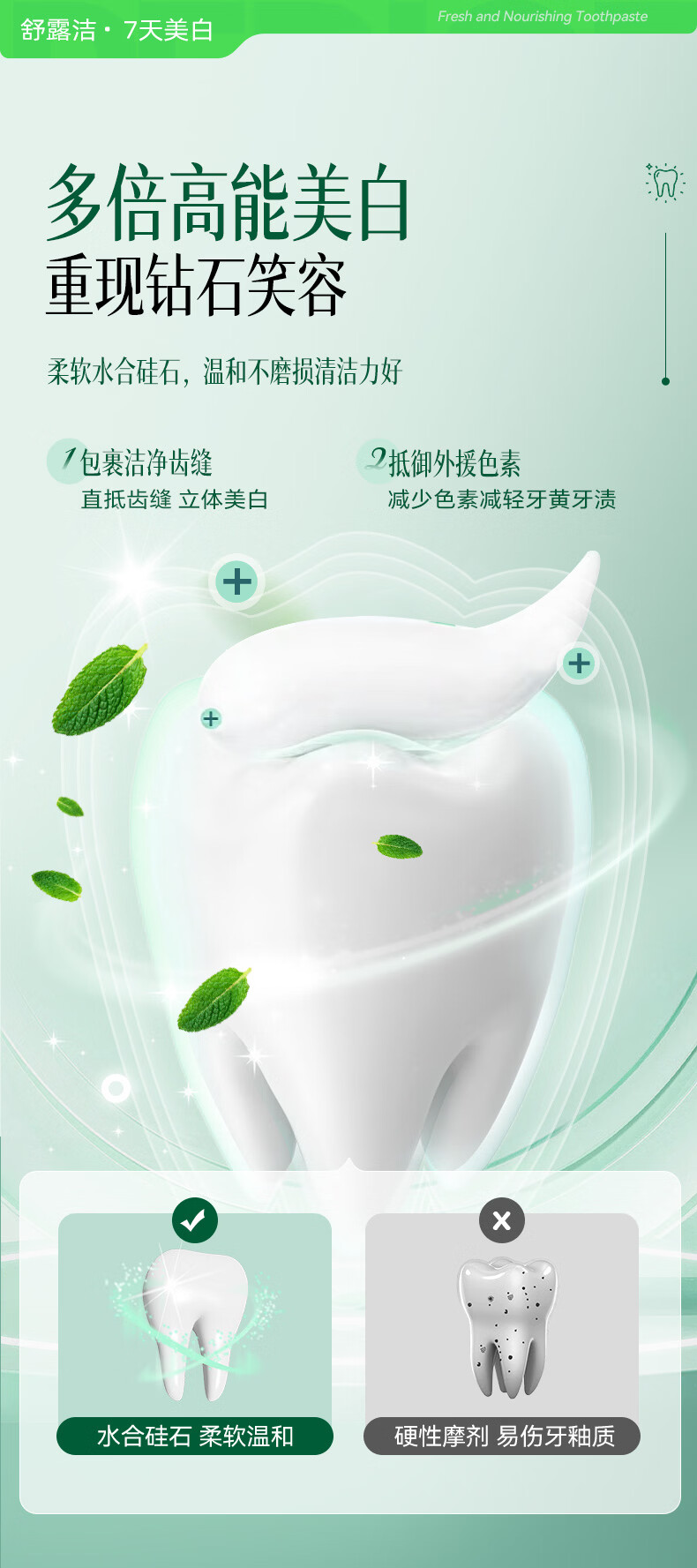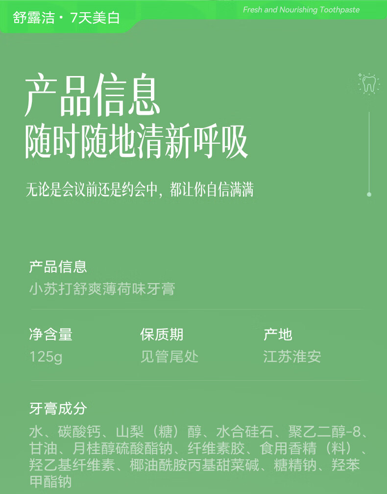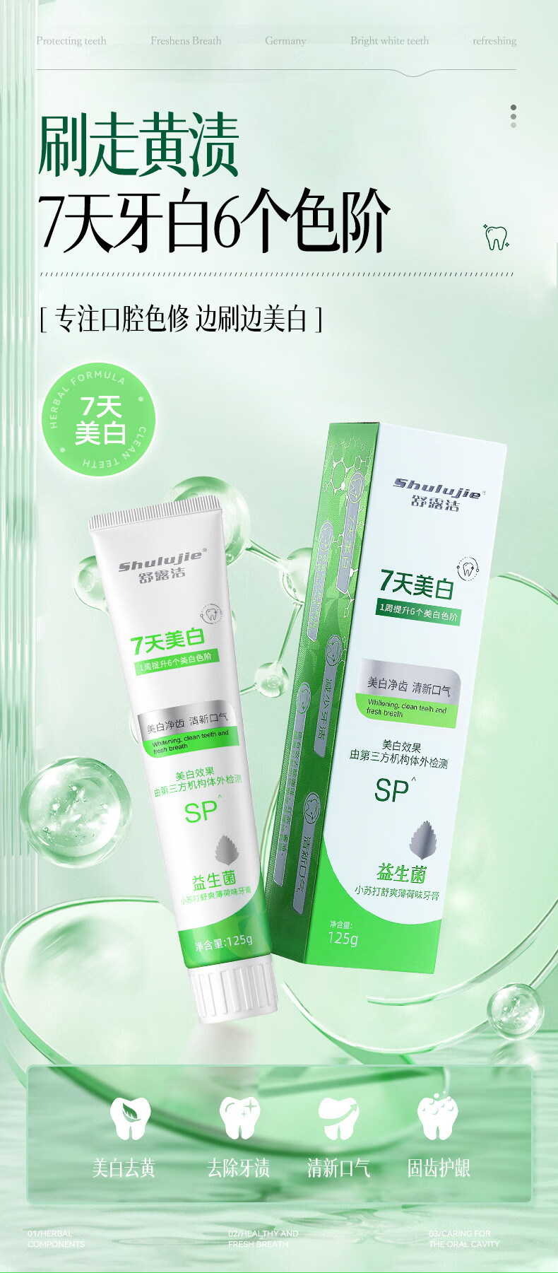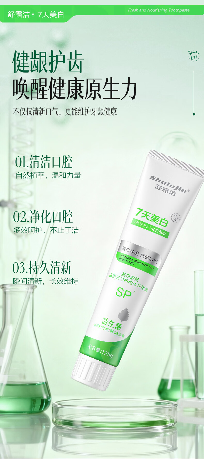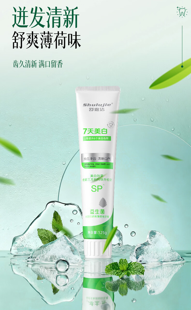 Shulujie益生菌小苏打舒爽薄荷牙膏成人泡沫细腻温和清洁口腔2支装 125g*2支装