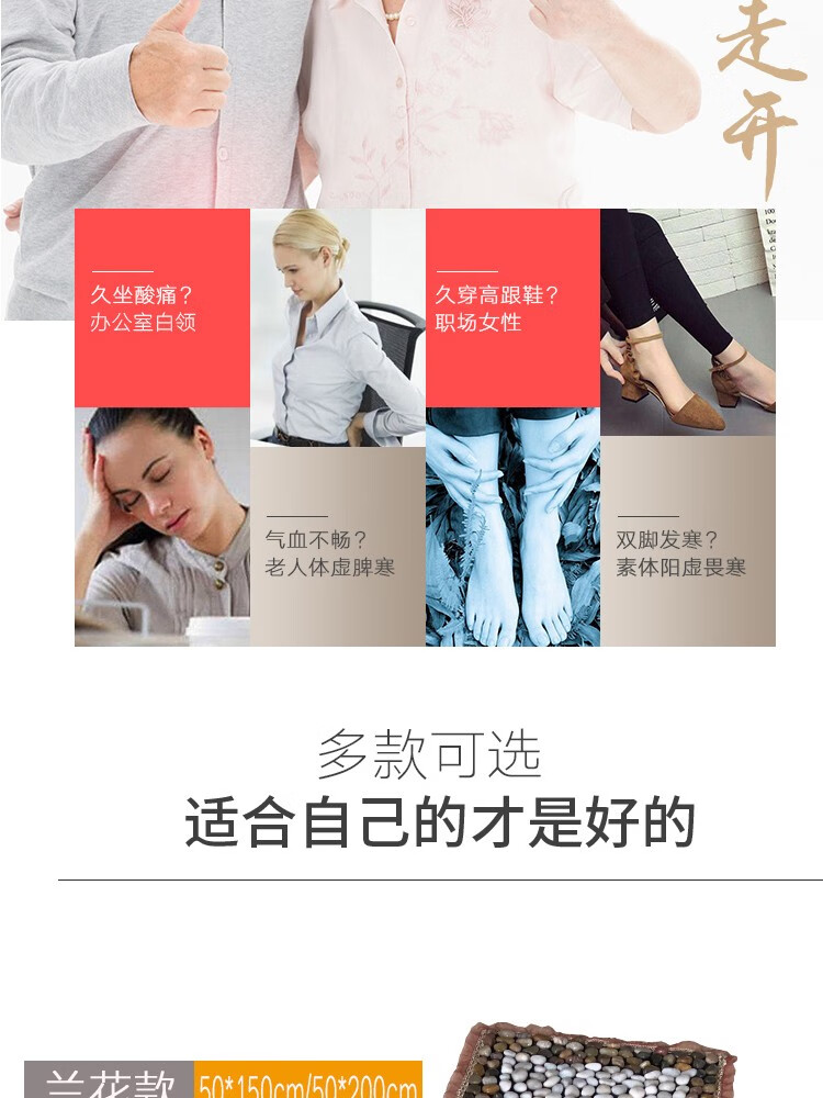 天然鹅卵石地垫足底按摩脚垫雨花石腿部穴位训练走毯指压板器材 平安结 50*200cm