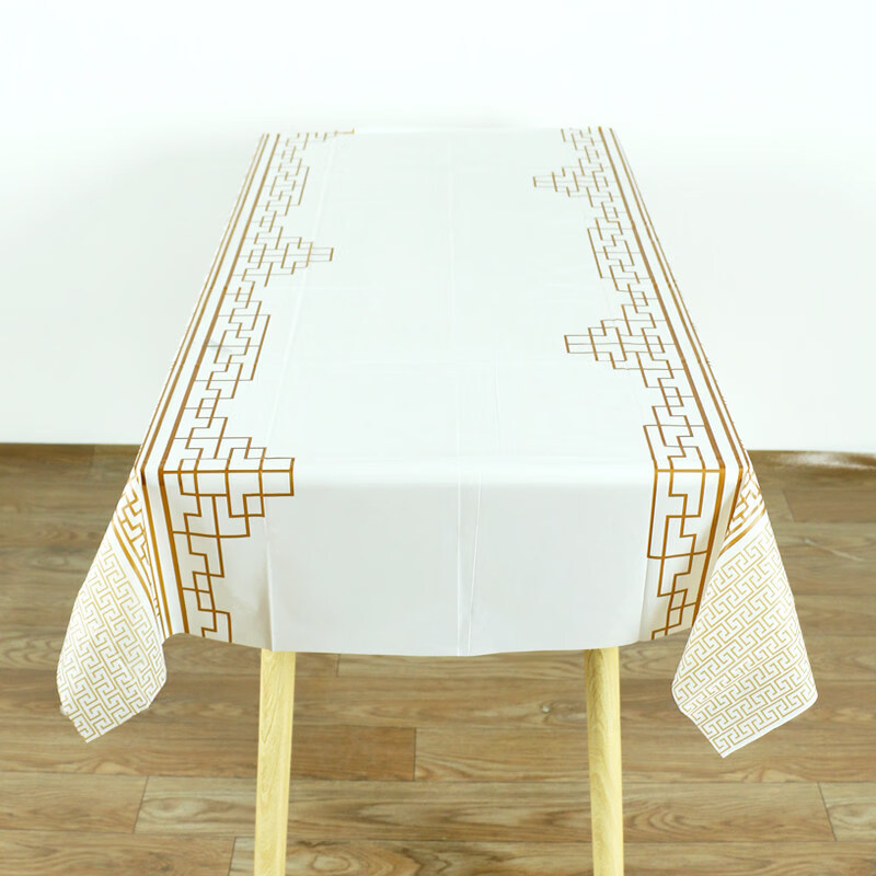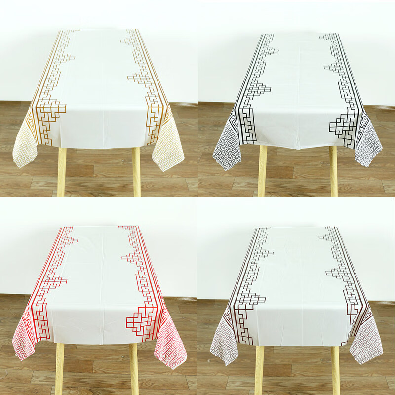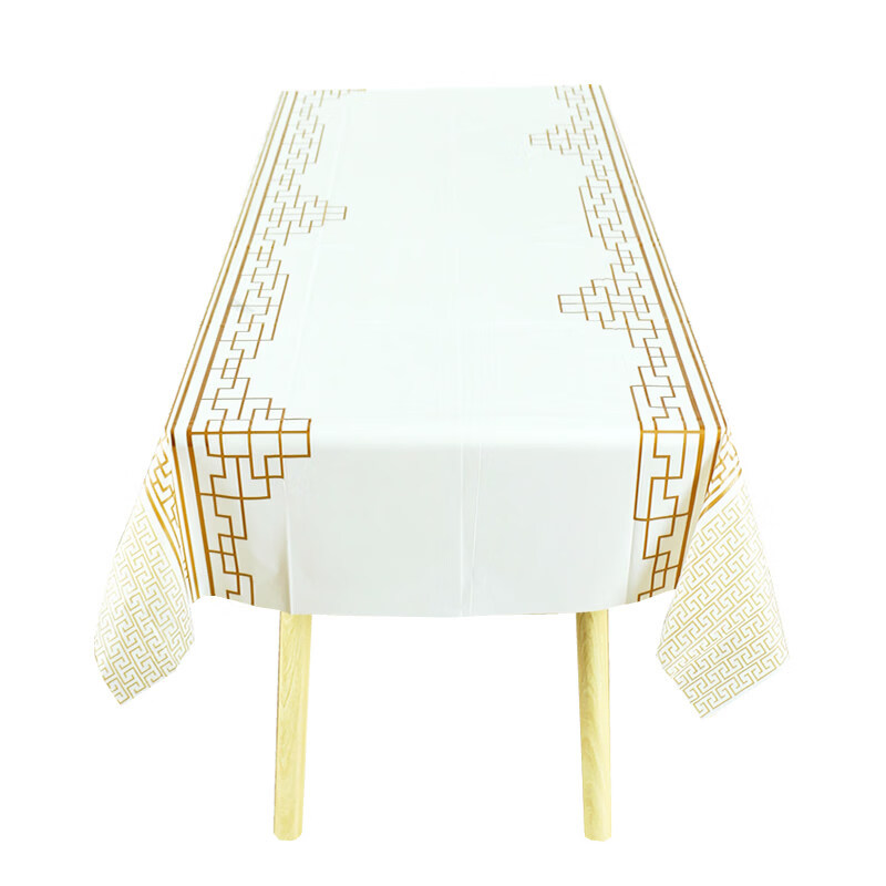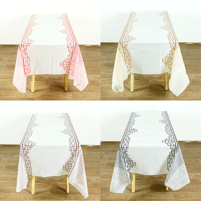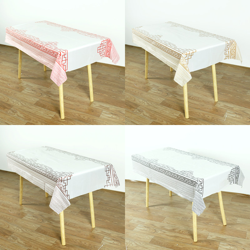 迦图鲮一次性防水防油野餐桌布长方形桌小清新黑白格子徽派餐布加厚塑料 1.4X1.4m 金窗花 10张/袋