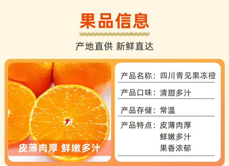 涨金正宗四川青见果冻橙柑橘子新鲜水果生鲜果冻橙酸甜口生鲜整箱A 带箱5斤70mm+净重4.5-5斤