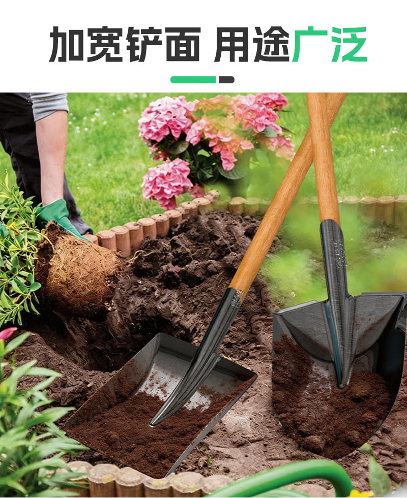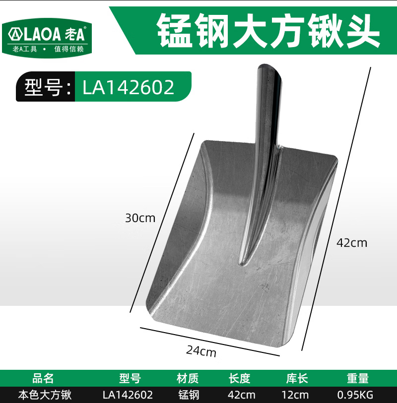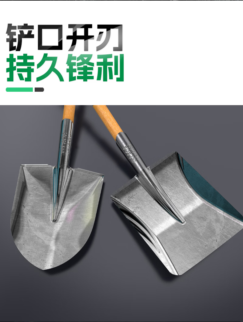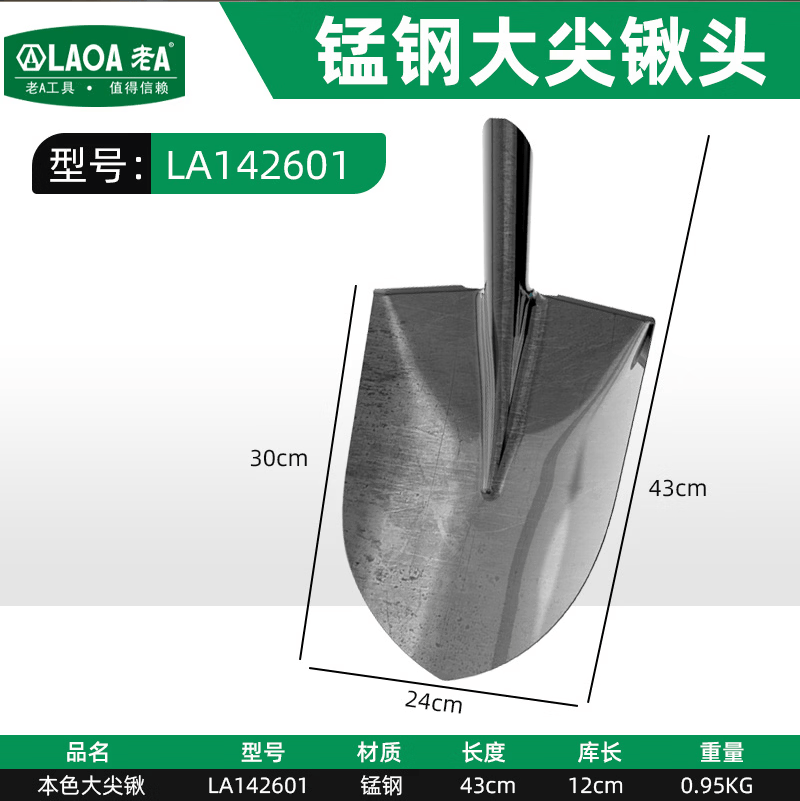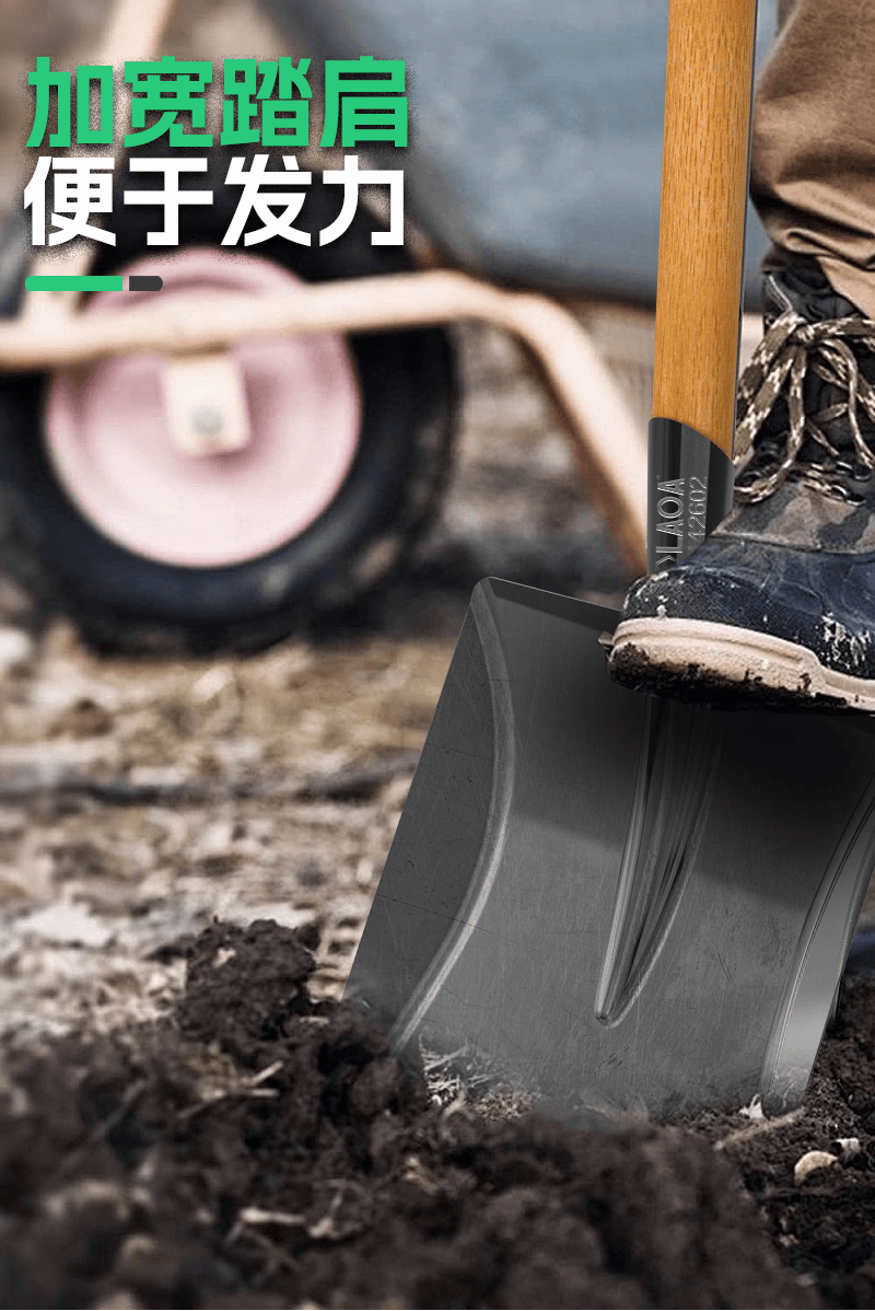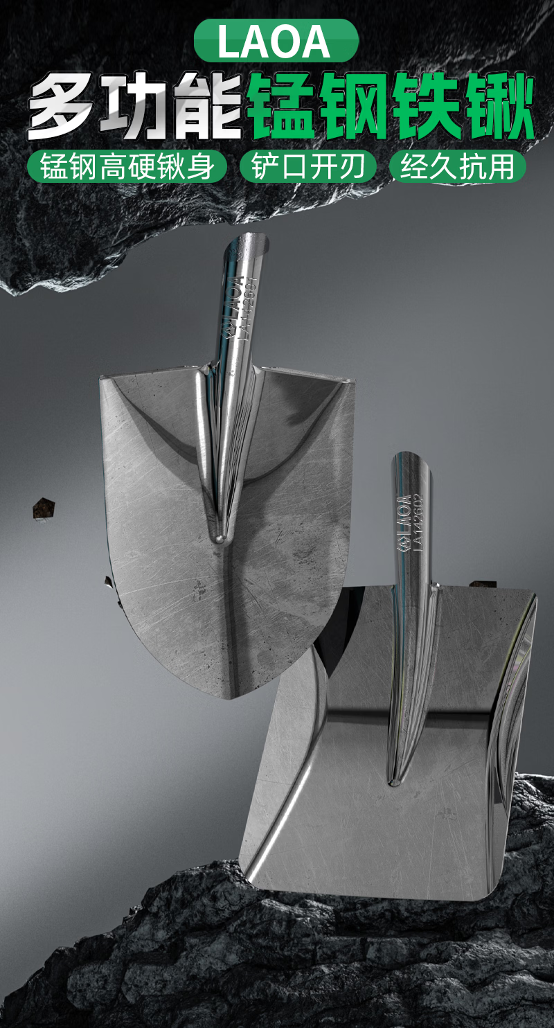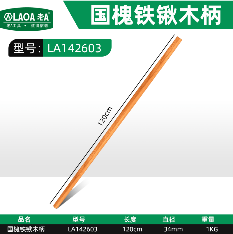 LAOA老A多功能锰钢铁锹头挖沟洞防汛抗洪木柄铲土铲泥铁铲大号园林锹 国槐杆长1.2m直径34mm【单独木柄】