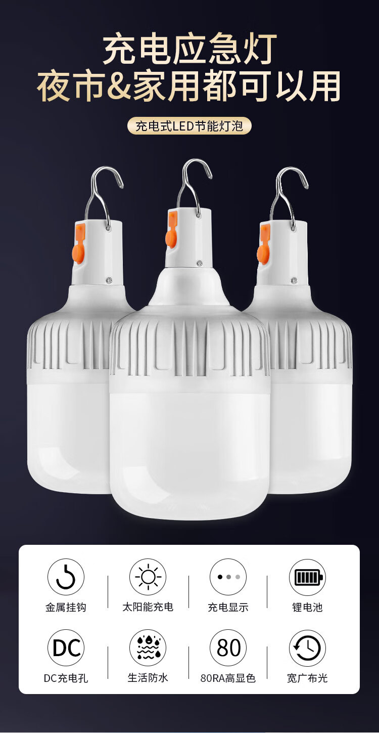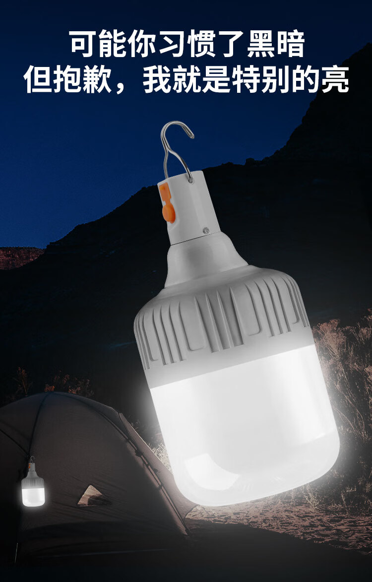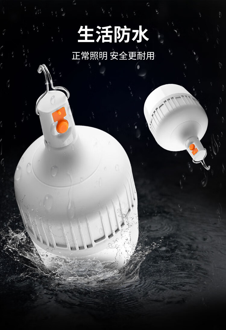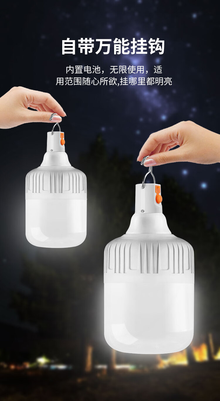 魔铁(MOTIE)LED充电灯泡家用停电应急照明灯户外露营超亮移动夜市摆摊地摊灯 【60%选择】100W高亮款 续航6-48小时+Type-C线