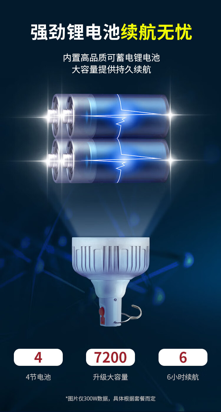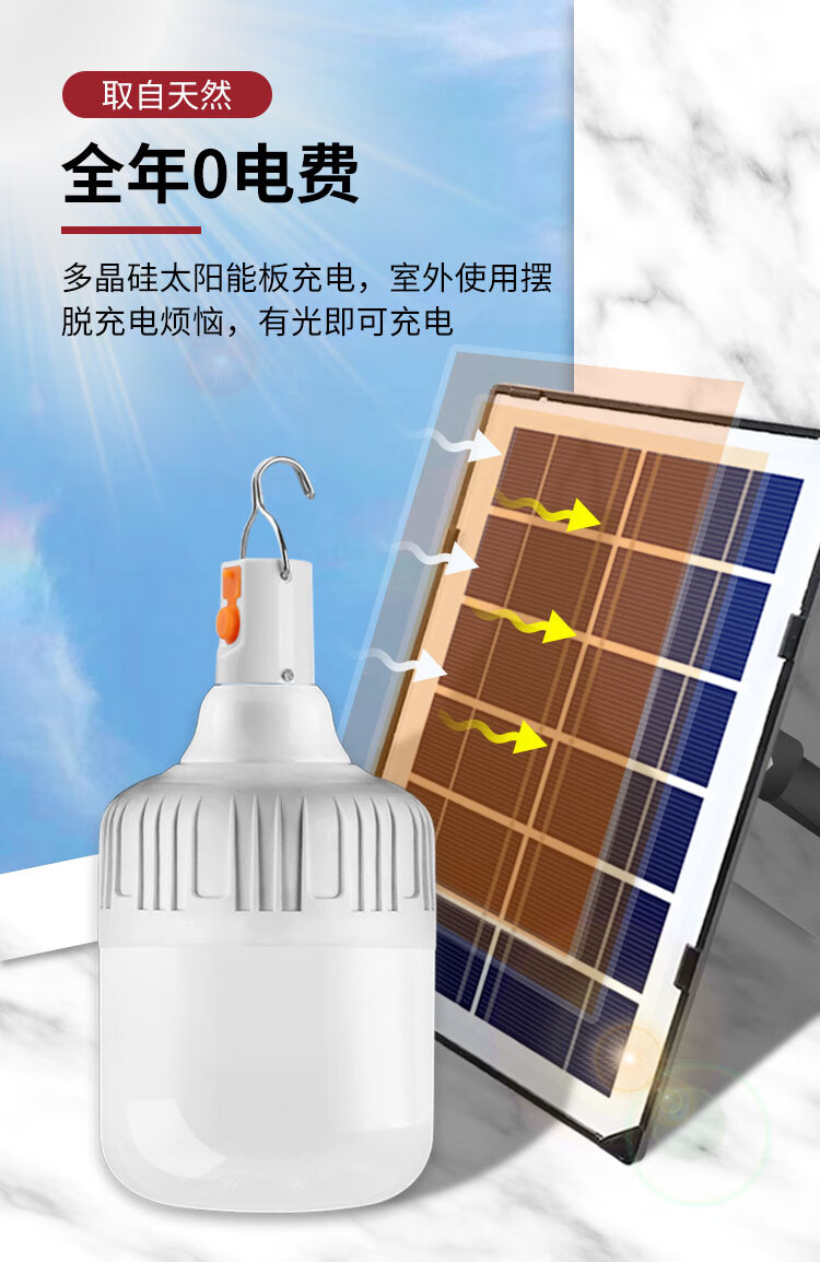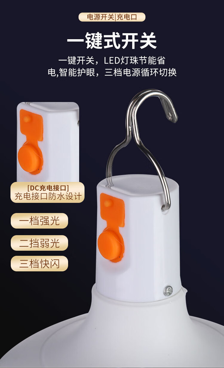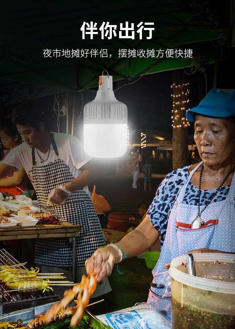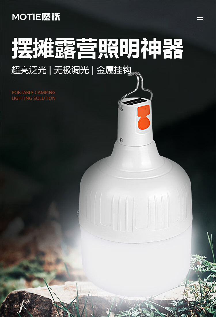 魔铁(MOTIE)LED充电灯泡家用停电应急照明灯户外露营超亮移动夜市摆摊地摊灯 【60%选择】100W高亮款 续航6-48小时+Type-C线