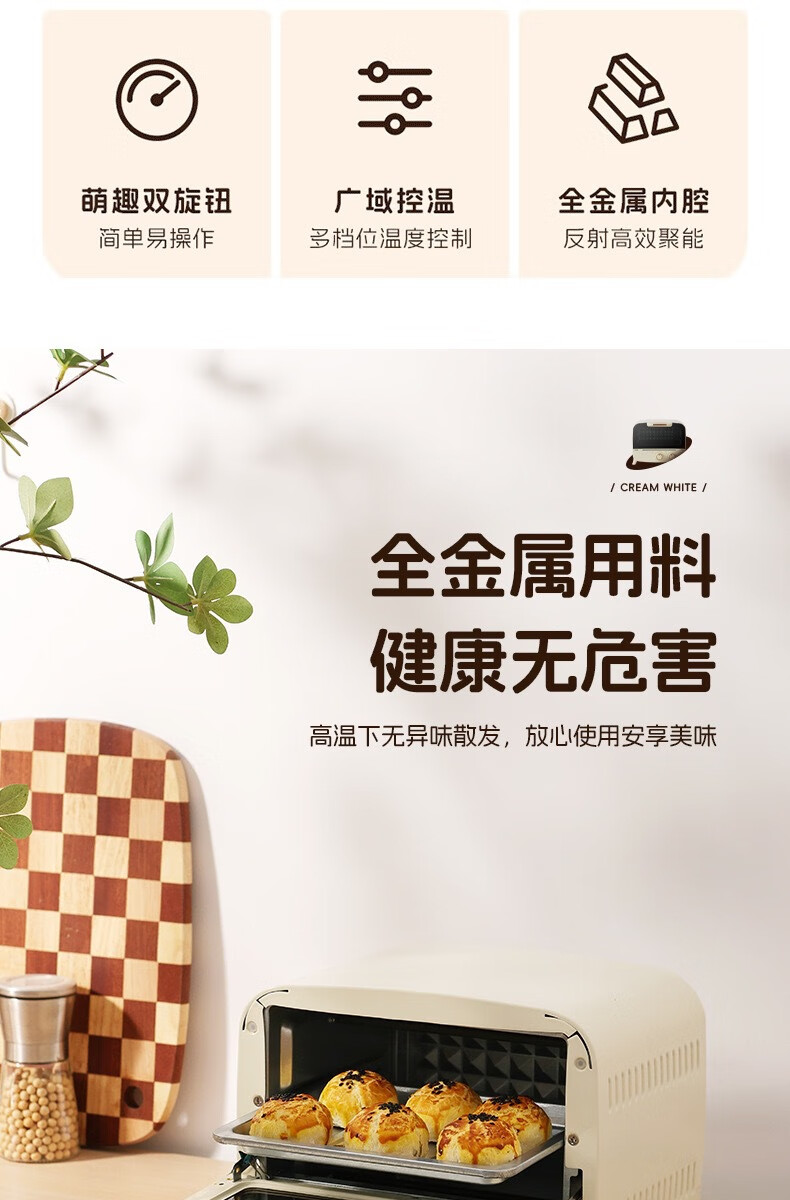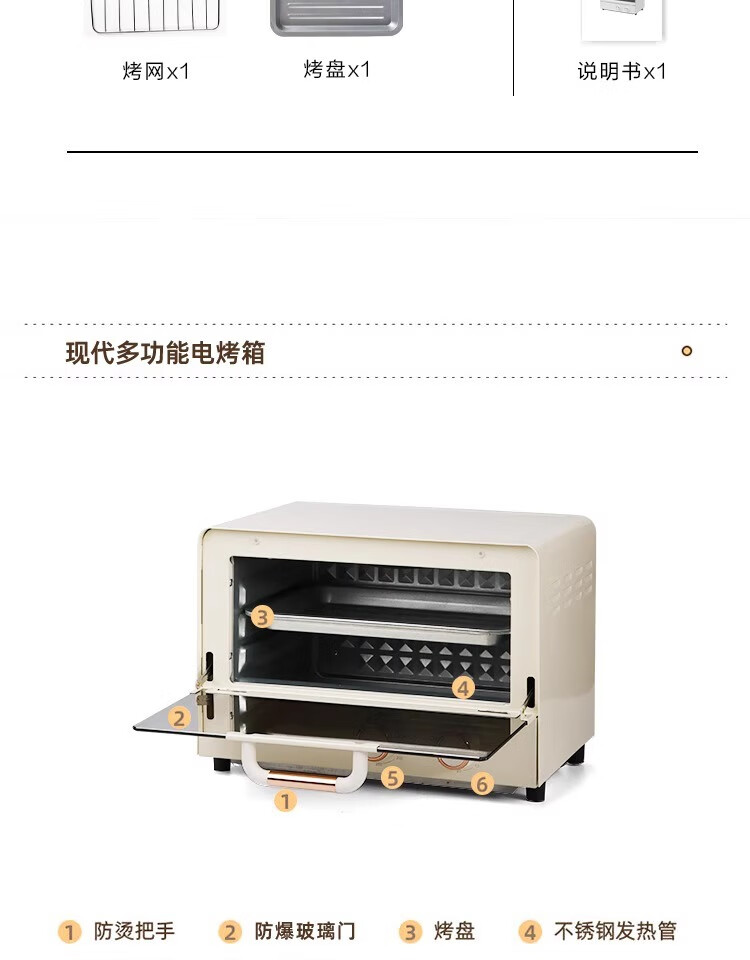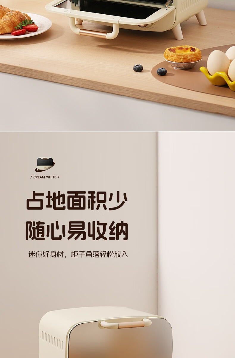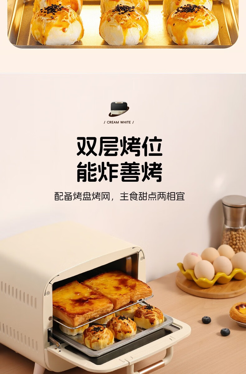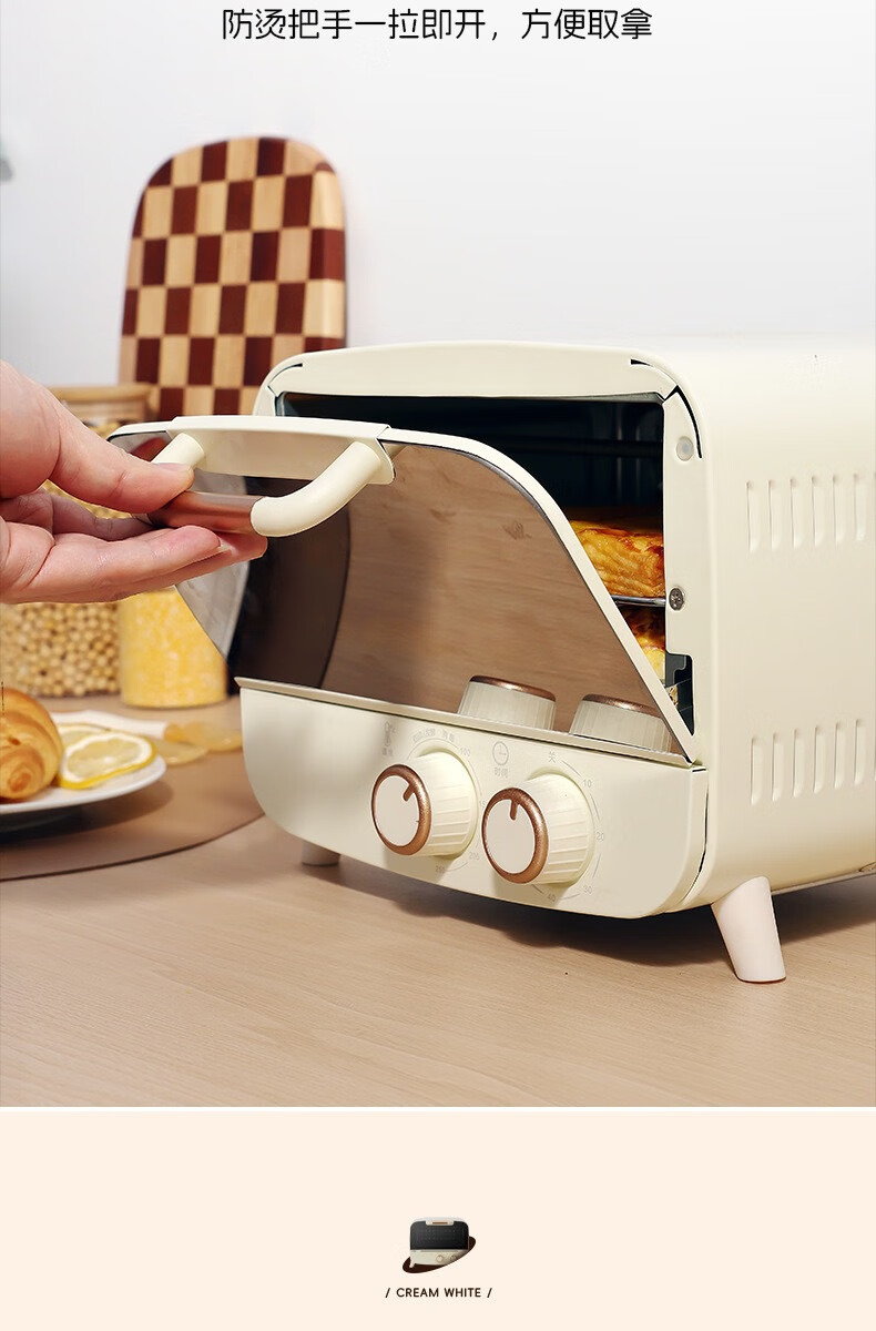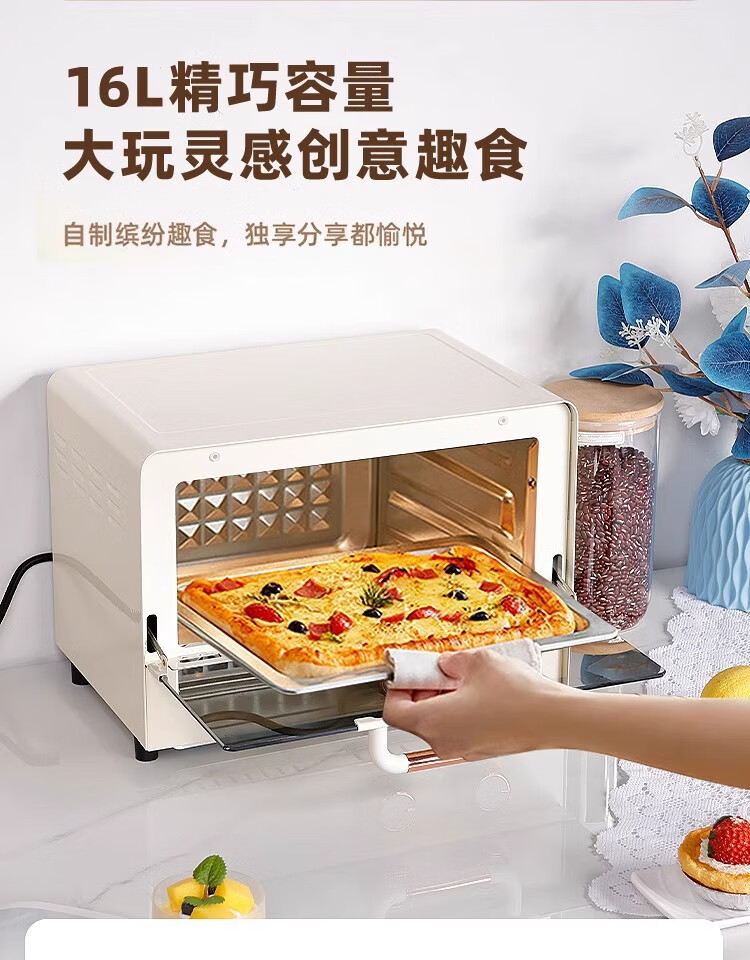 新款电烤箱16L高颜值镜面定时恒温电烤箱一体机烘培烧烤网红上下 16L象牙白 16L
