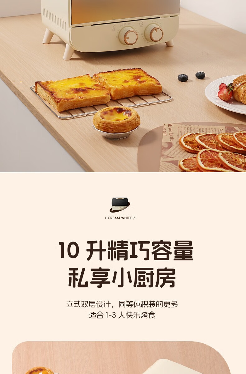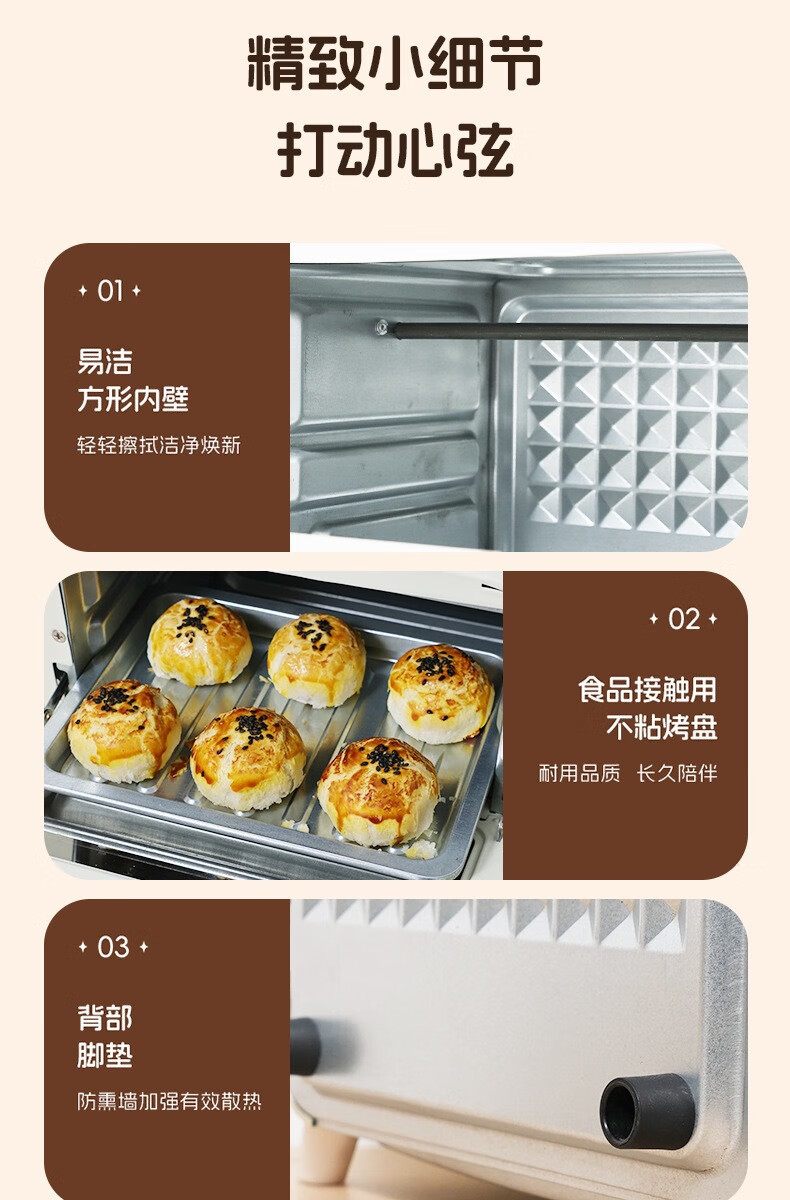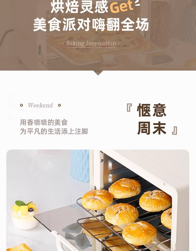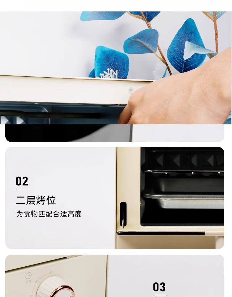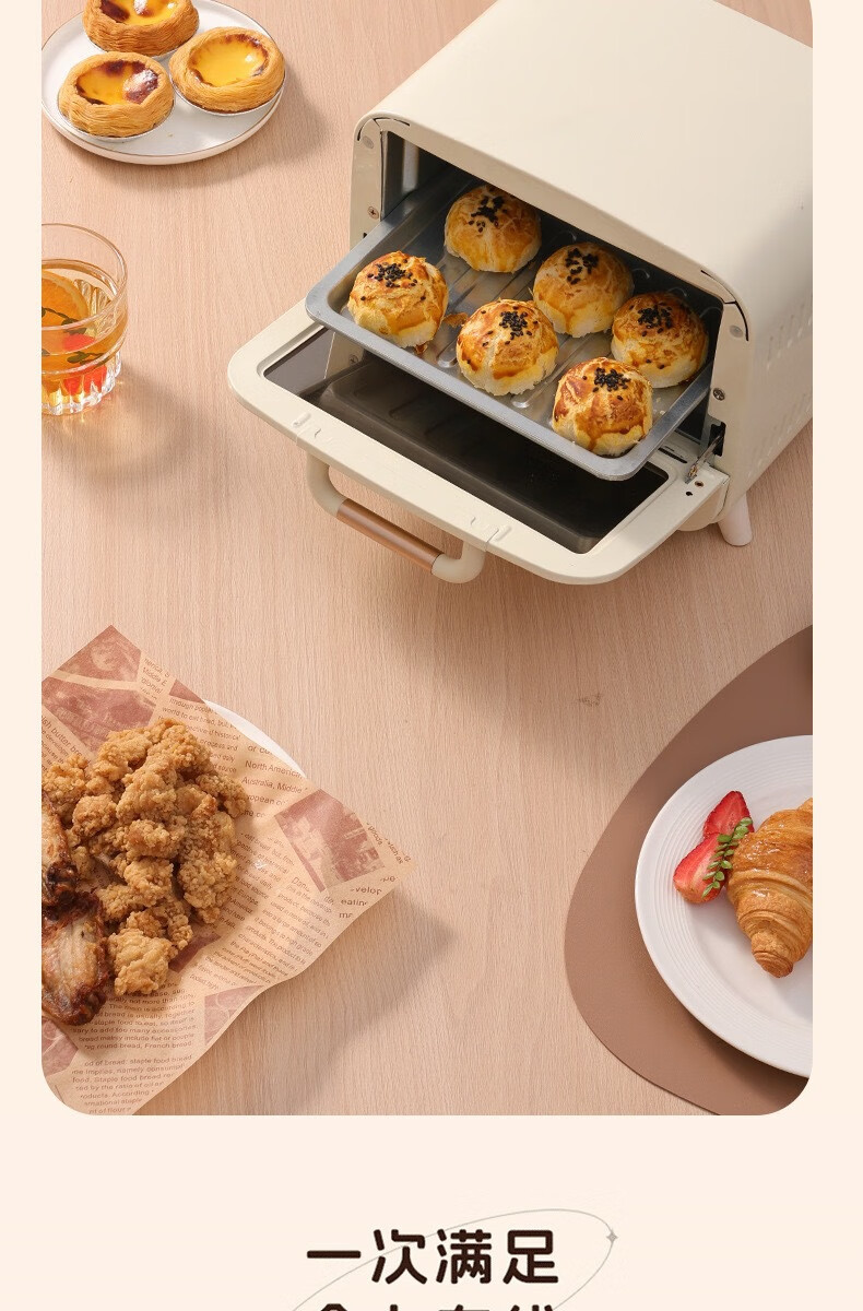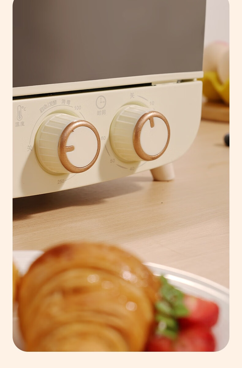 新款电烤箱16L高颜值镜面定时恒温电烤箱一体机烘培烧烤网红上下 16L象牙白 16L