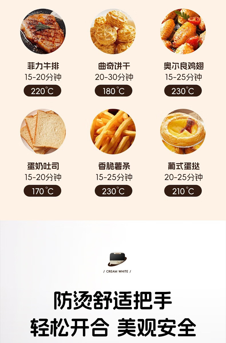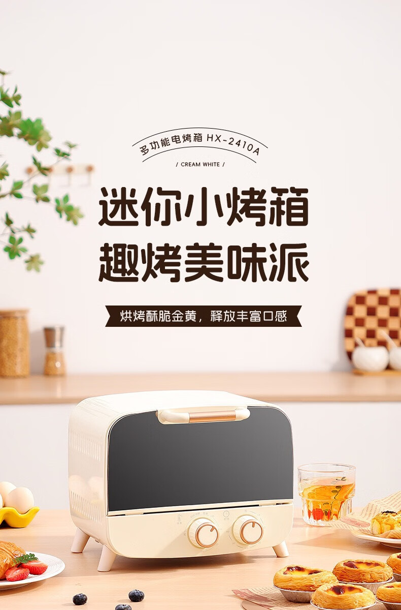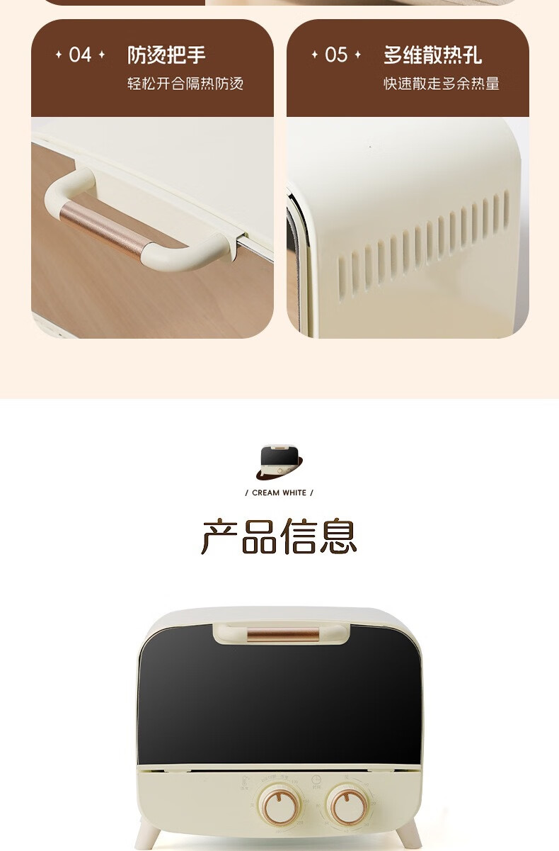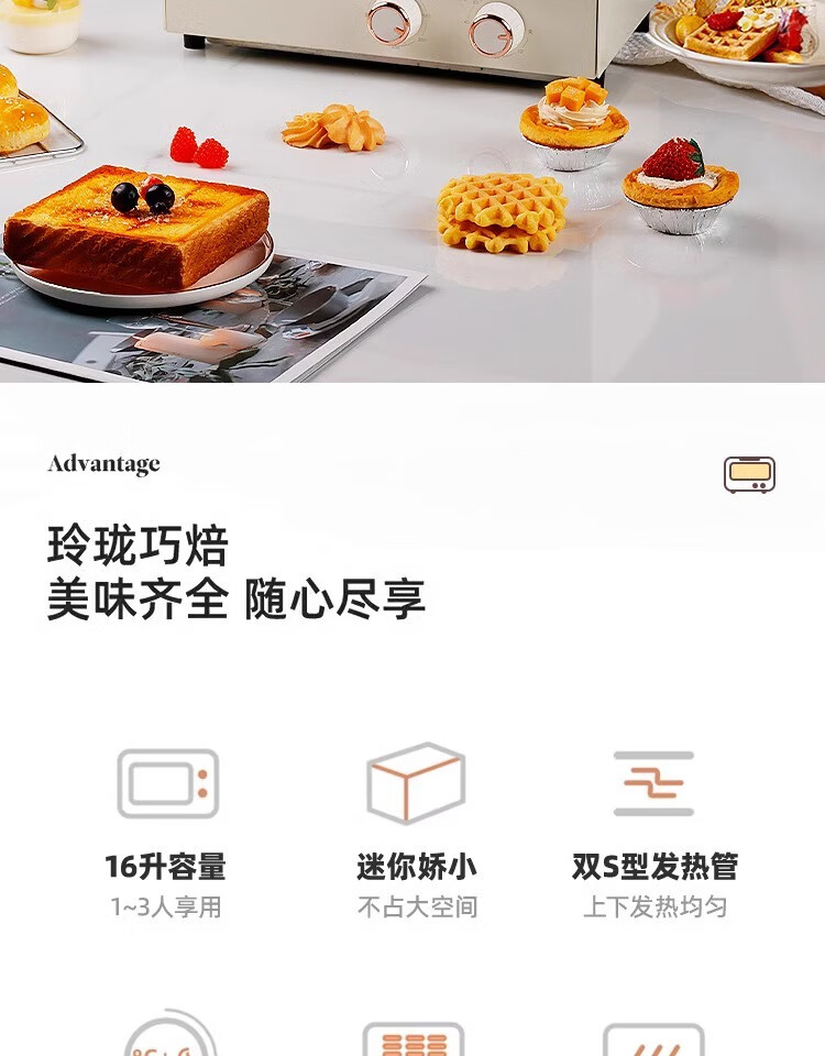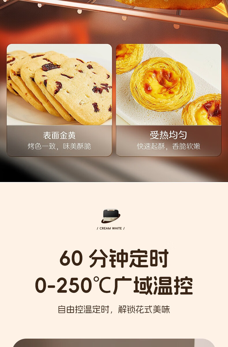 新款电烤箱16L高颜值镜面定时恒温电烤箱一体机烘培烧烤网红上下 16L象牙白 16L