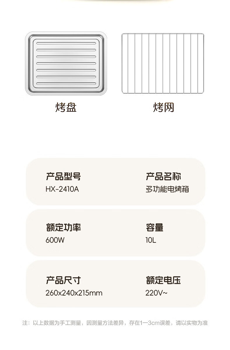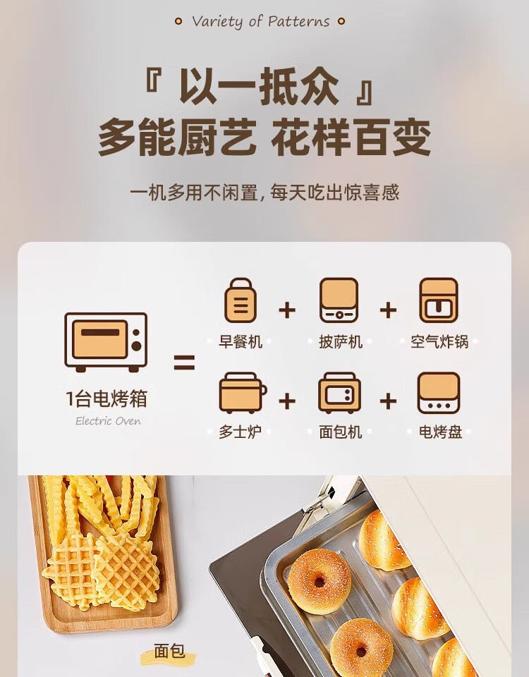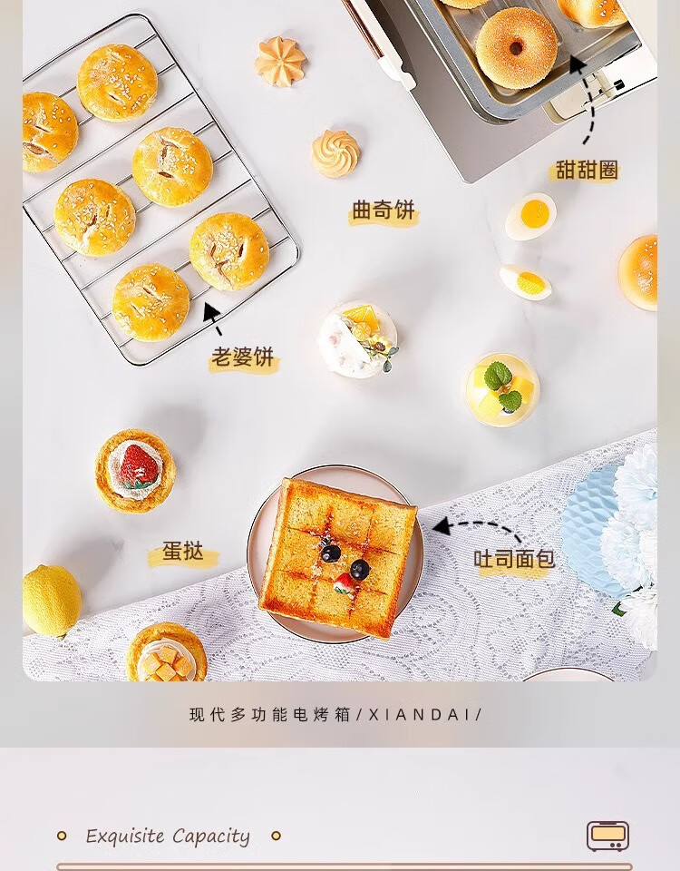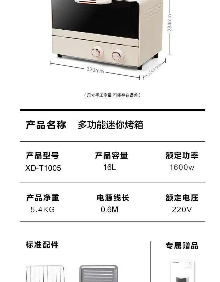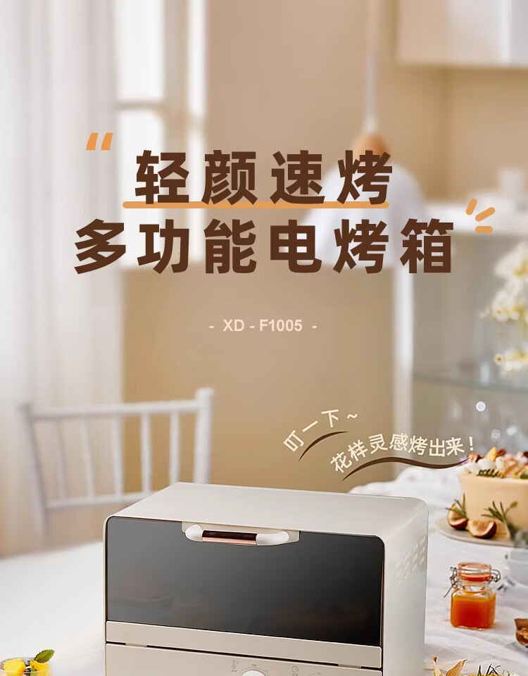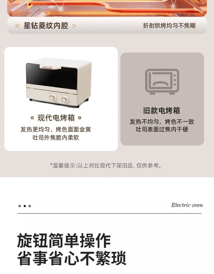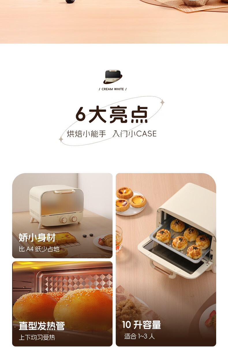 新款电烤箱16L高颜值镜面定时恒温电烤箱一体机烘培烧烤网红上下 16L象牙白 16L