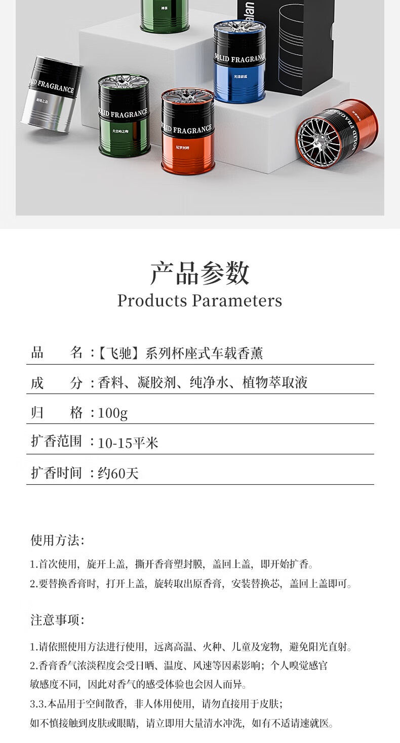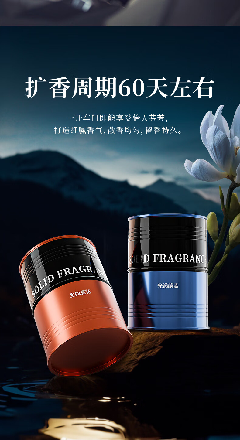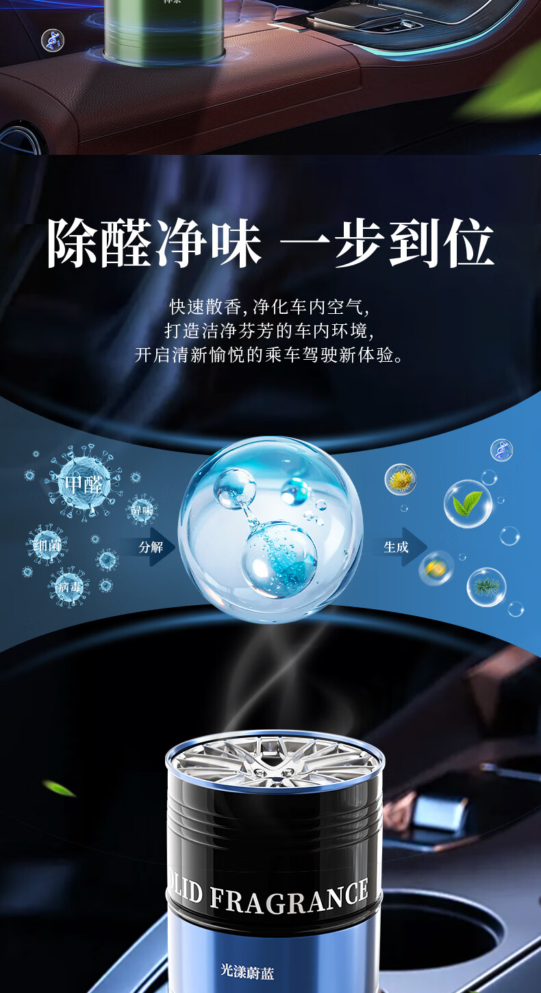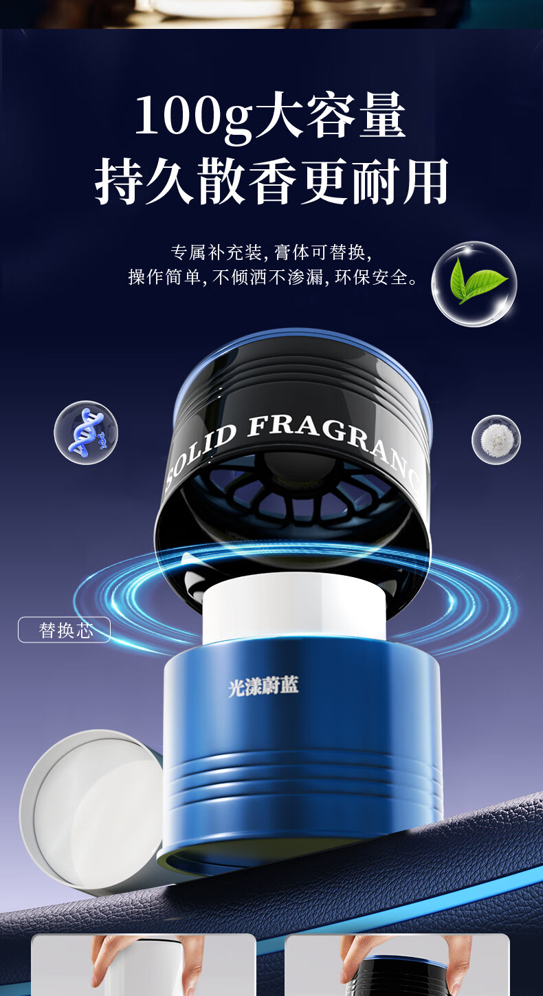 阿迪纳兰车载香薰2025年新款汽车香薰杯架固体香膏香水汽车内香氛除异味 蓝色风铃