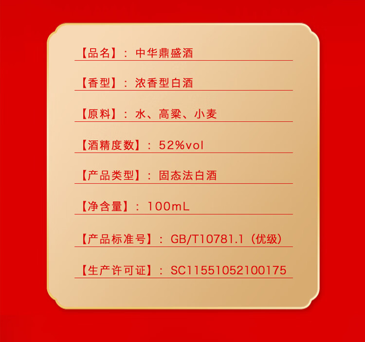 中华鼎川酒集团出品粮食酿造浓香型白酒52度100ml过年送礼 52度 100mL 1瓶