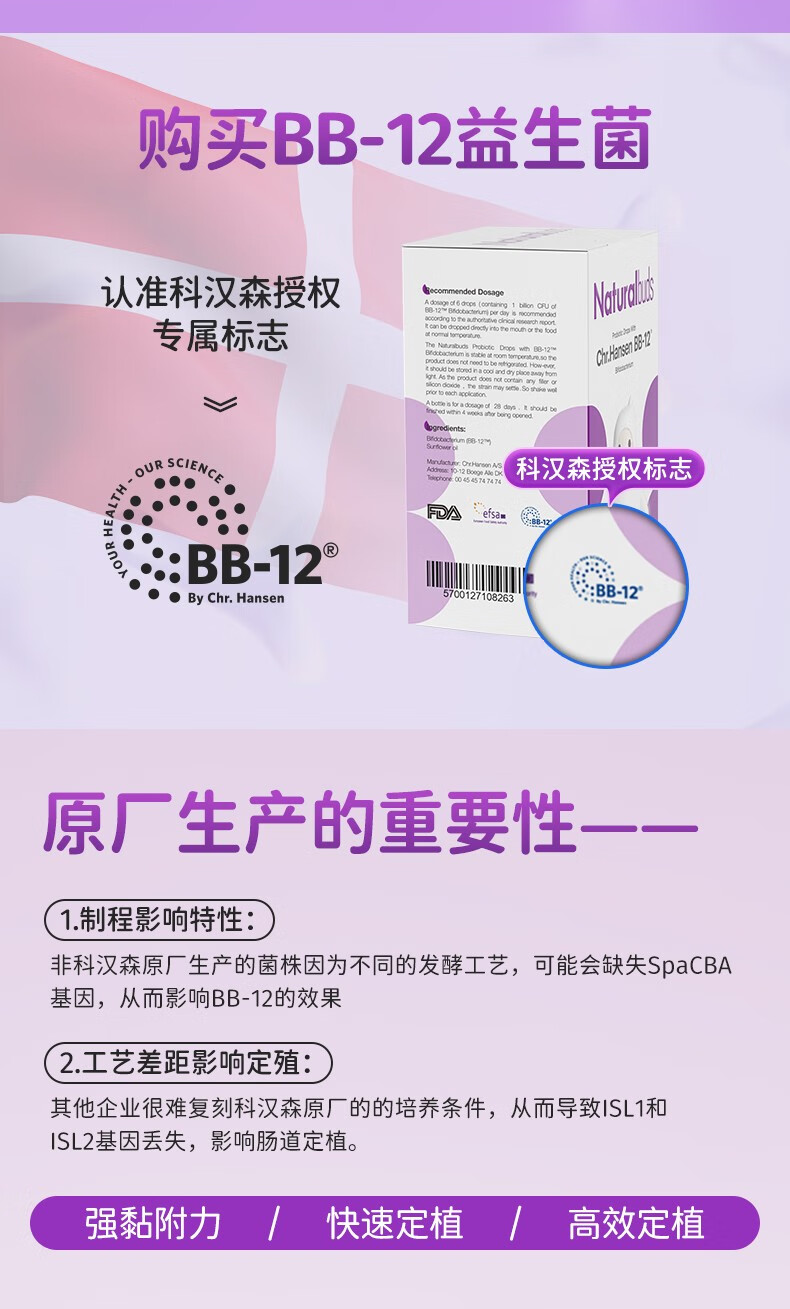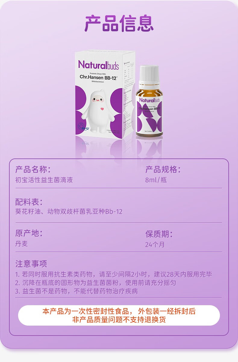 初宝益生菌bb-12婴儿益生菌儿童高活性丹麦科汉森原装进口宝宝益生菌 1瓶装(25年) 8ml*1瓶