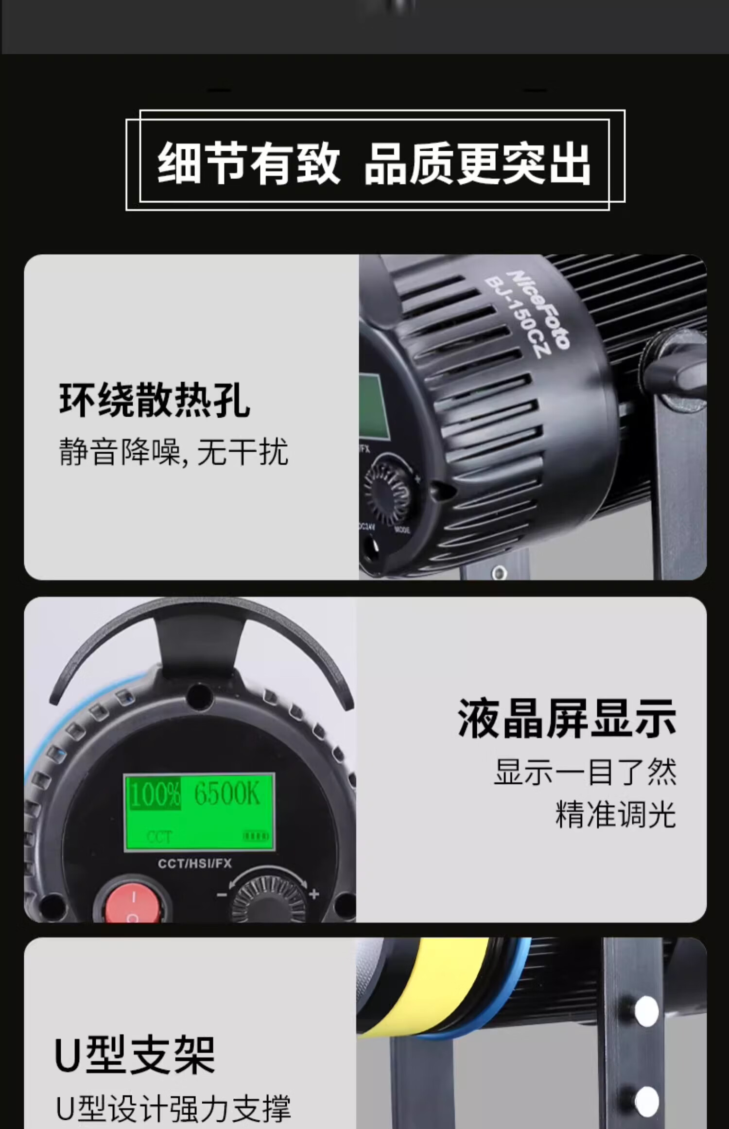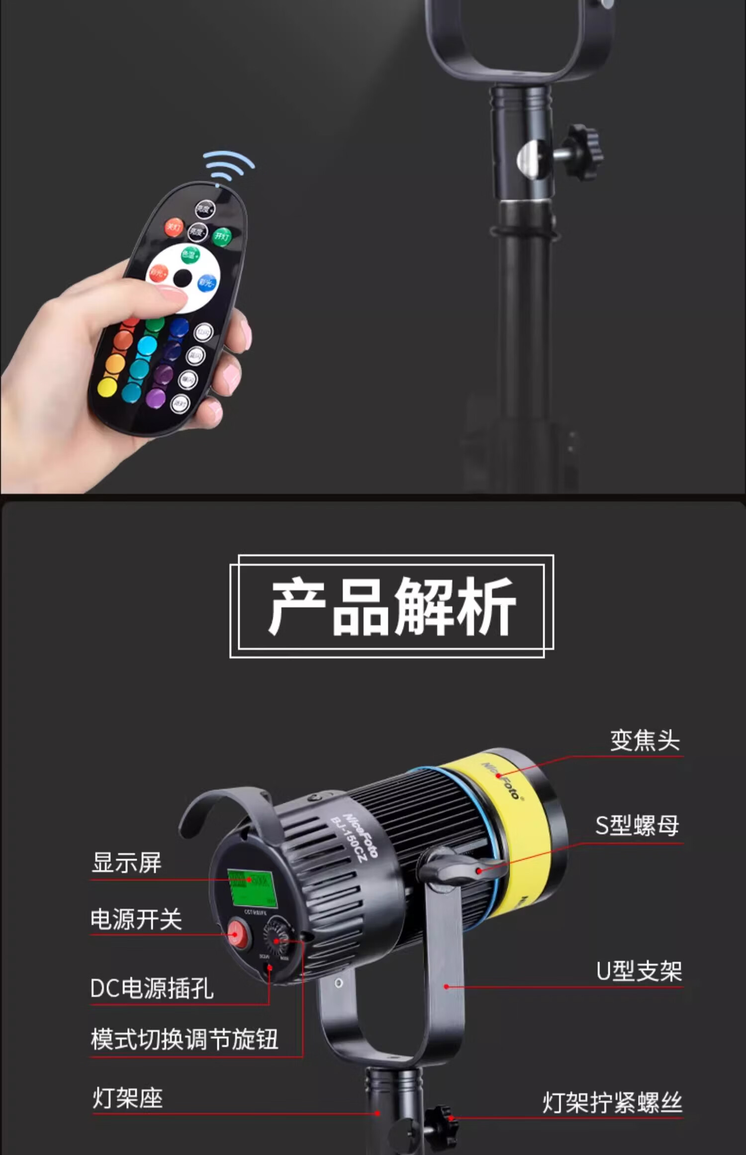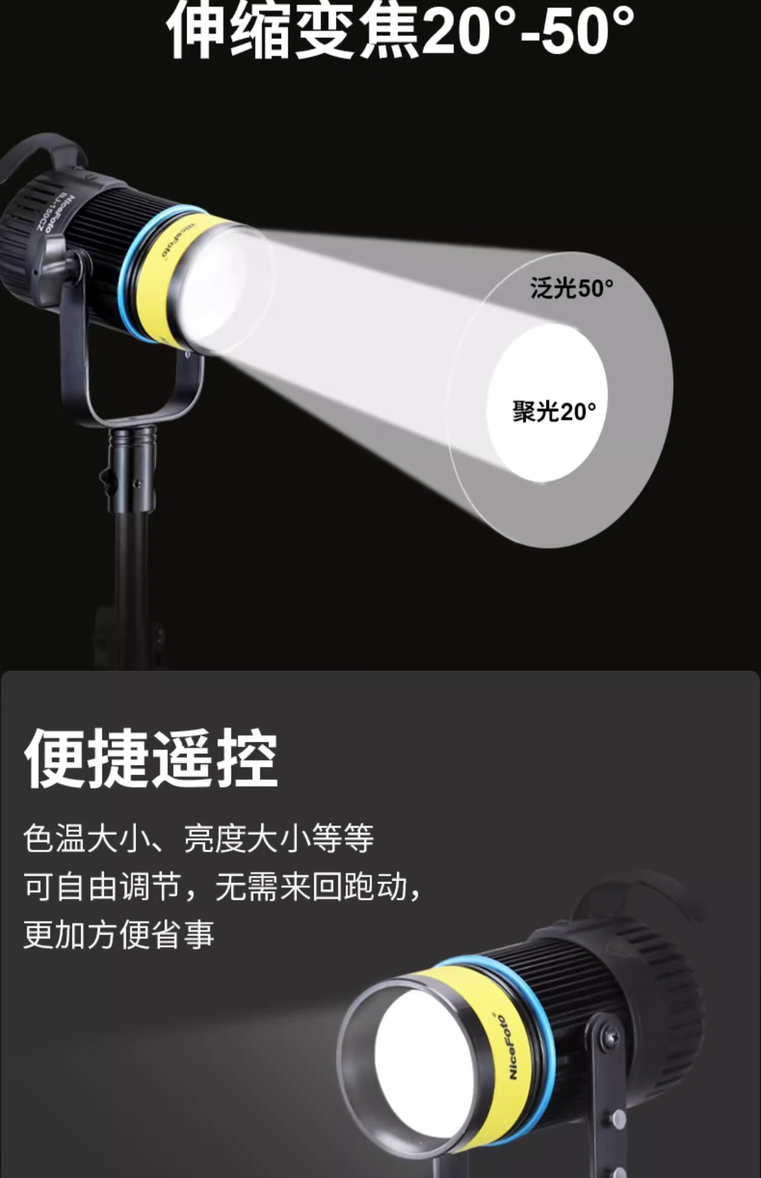 NiceFoto补光灯直播灯补光轮廓发丝灯头顶灯神明少女胸口灯背景氛围灯打光灯可调焦聚光射灯 【可调色温】BJ-600A聚光灯+灯架+蜂巢罩