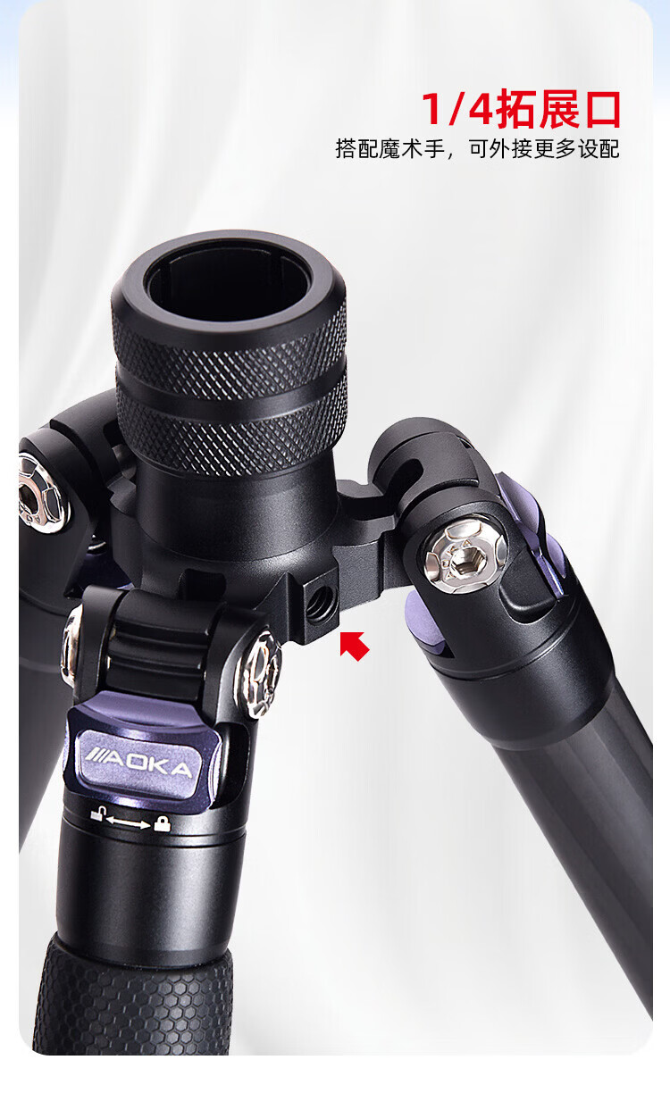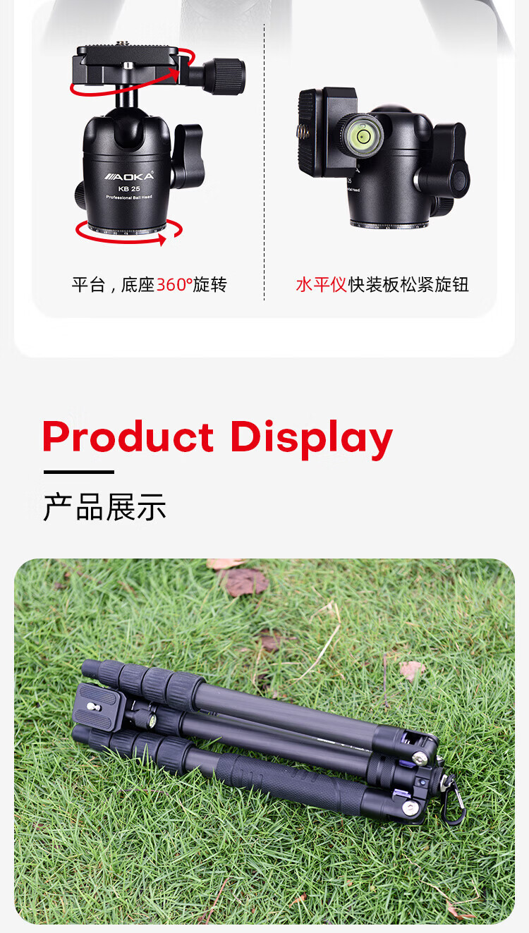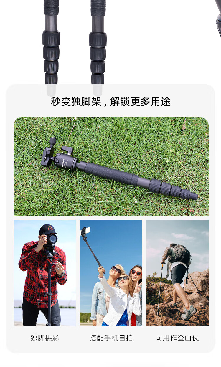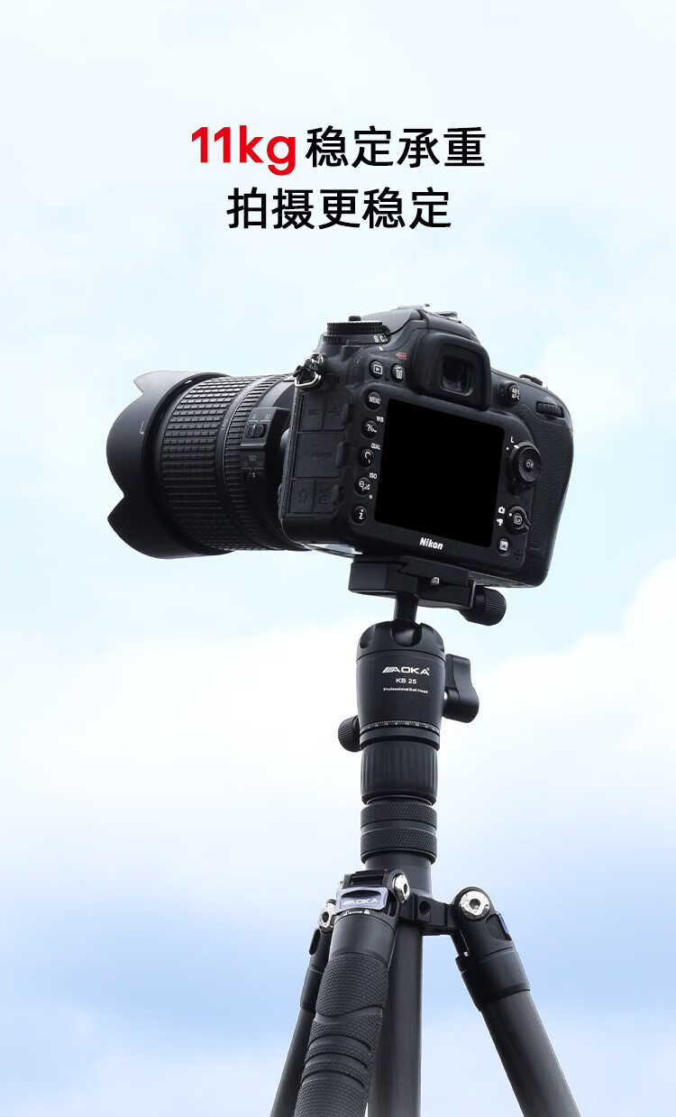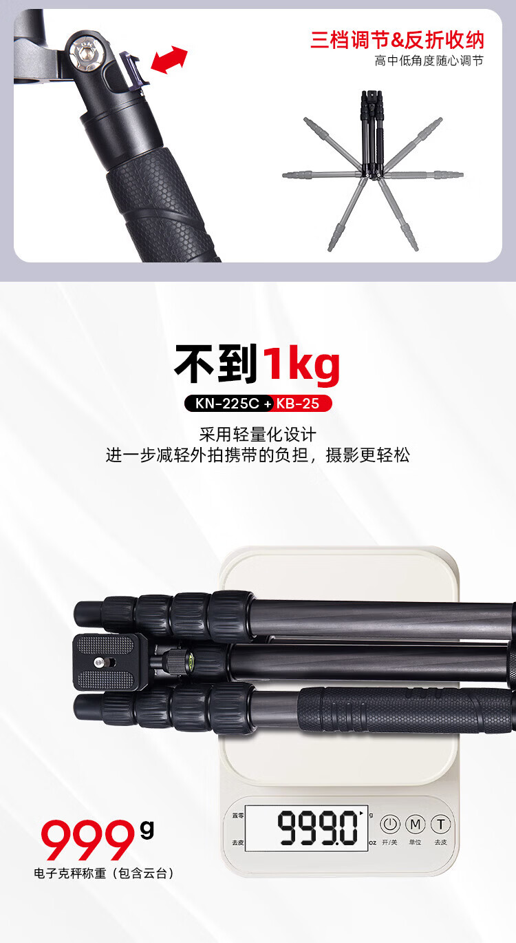 AOKA奥咔KN225C碳纤维便携轻型单反 微单三脚架三角架 手机拍照自拍户外摄影 【KN225C三脚架+云台+中轴套装可拆独脚架】 佳能 尼康 索尼 富士相机专用