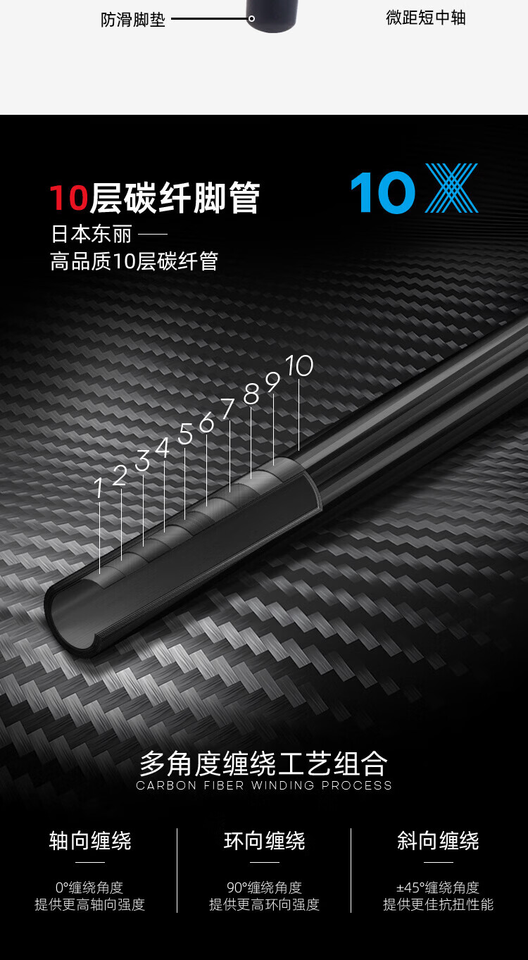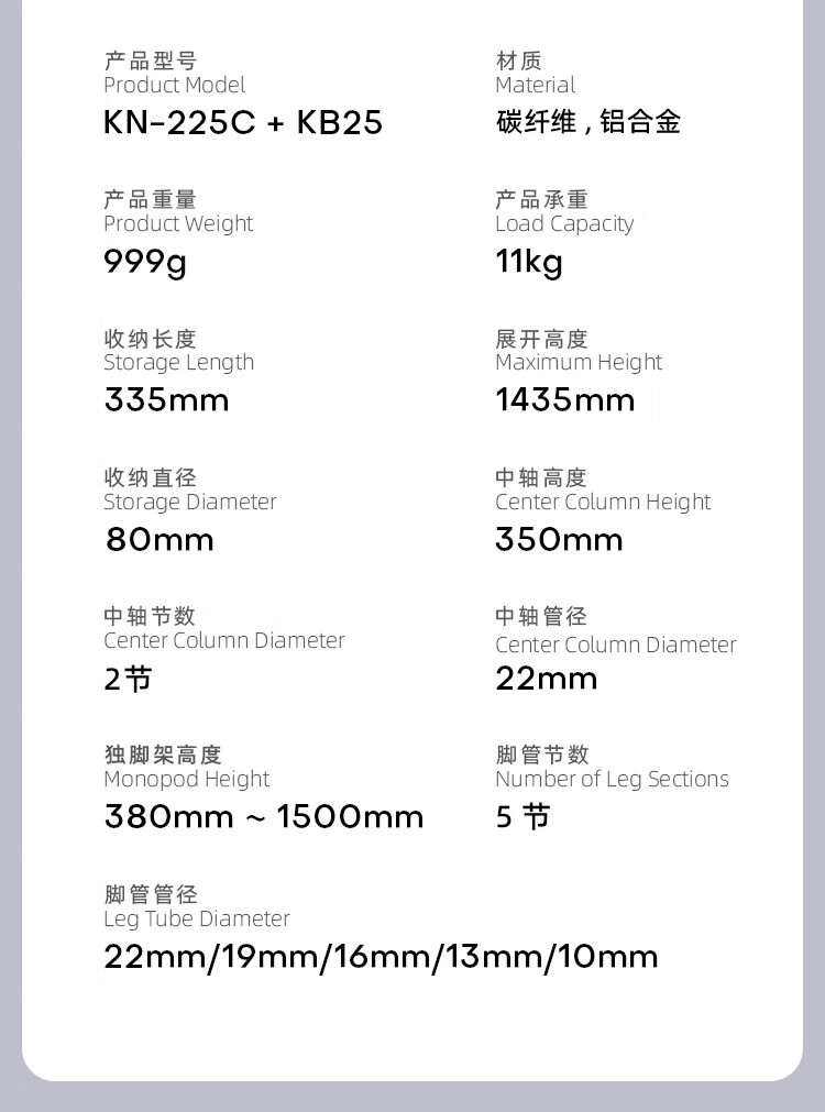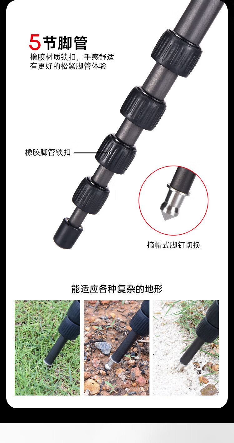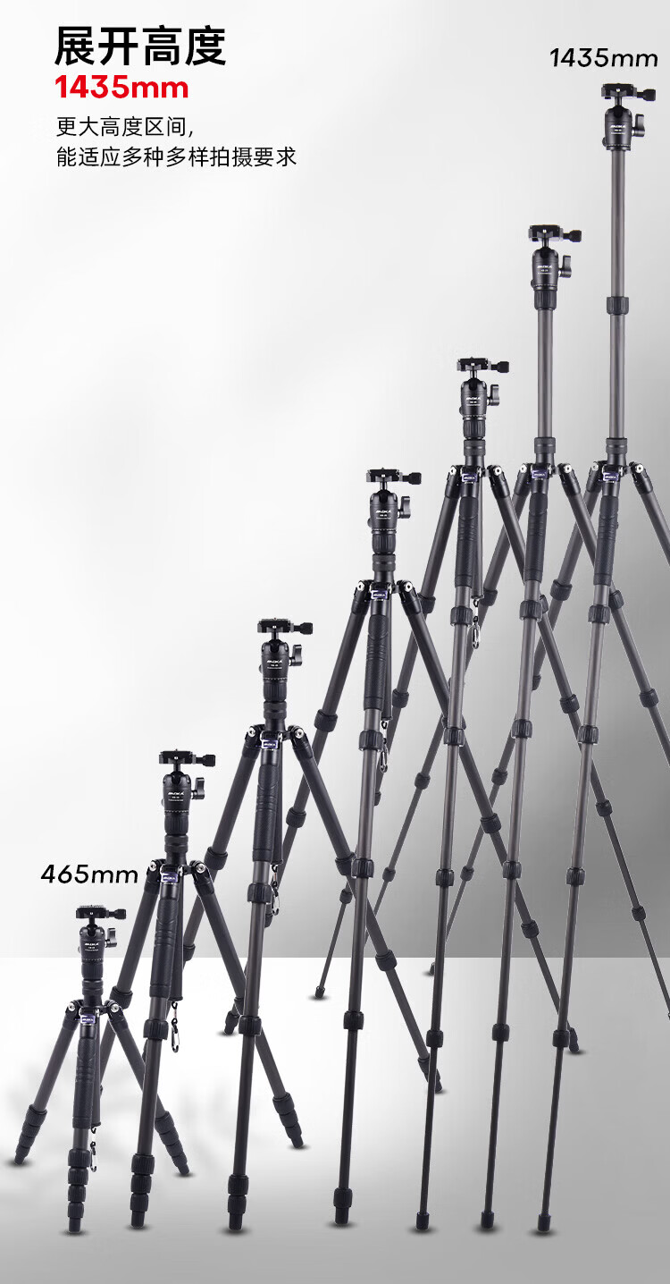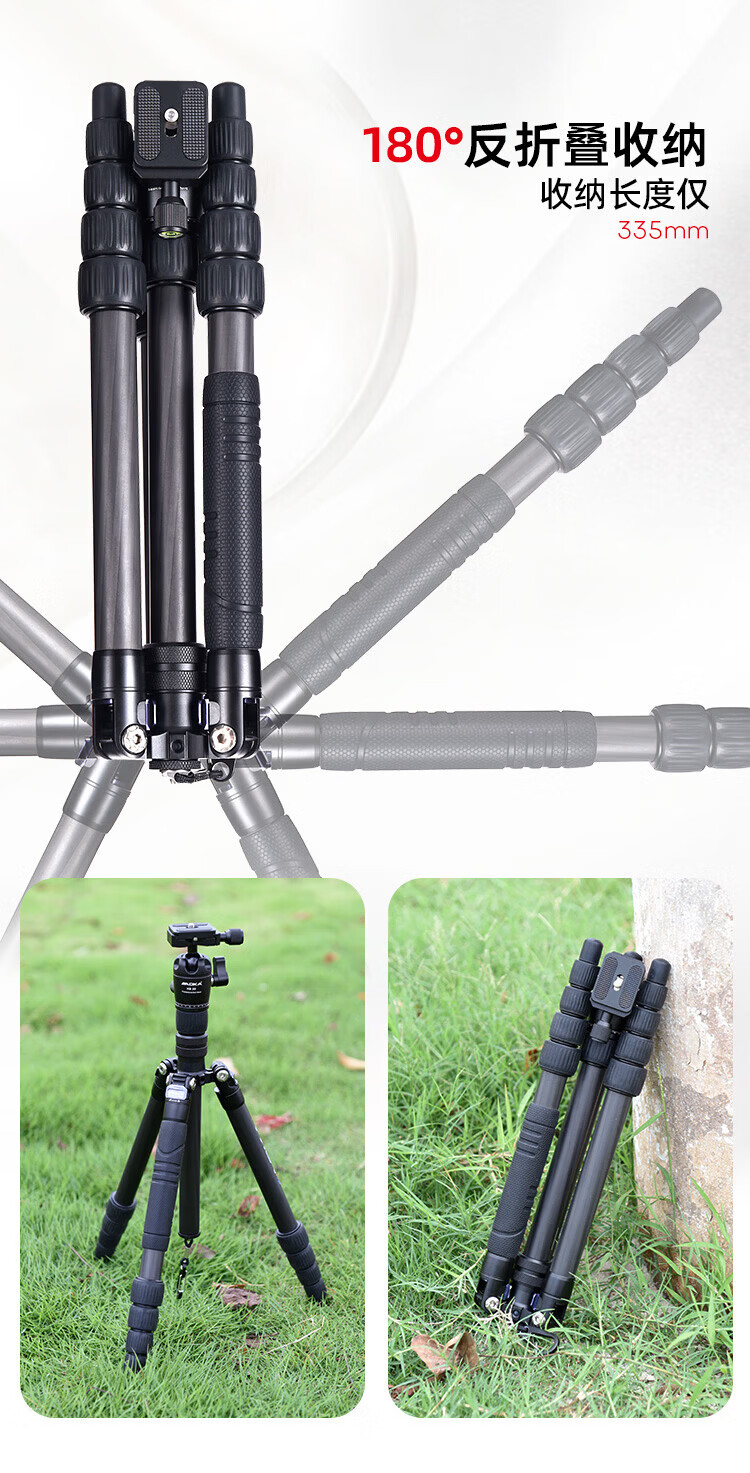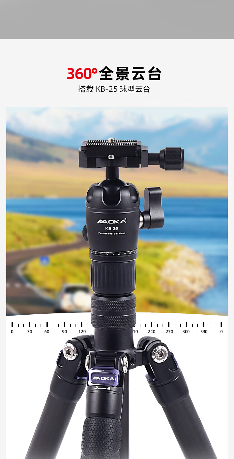 AOKA奥咔KN225C碳纤维便携轻型单反 微单三脚架三角架 手机拍照自拍户外摄影 【KN225C三脚架+云台+中轴套装可拆独脚架】 佳能 尼康 索尼 富士相机专用