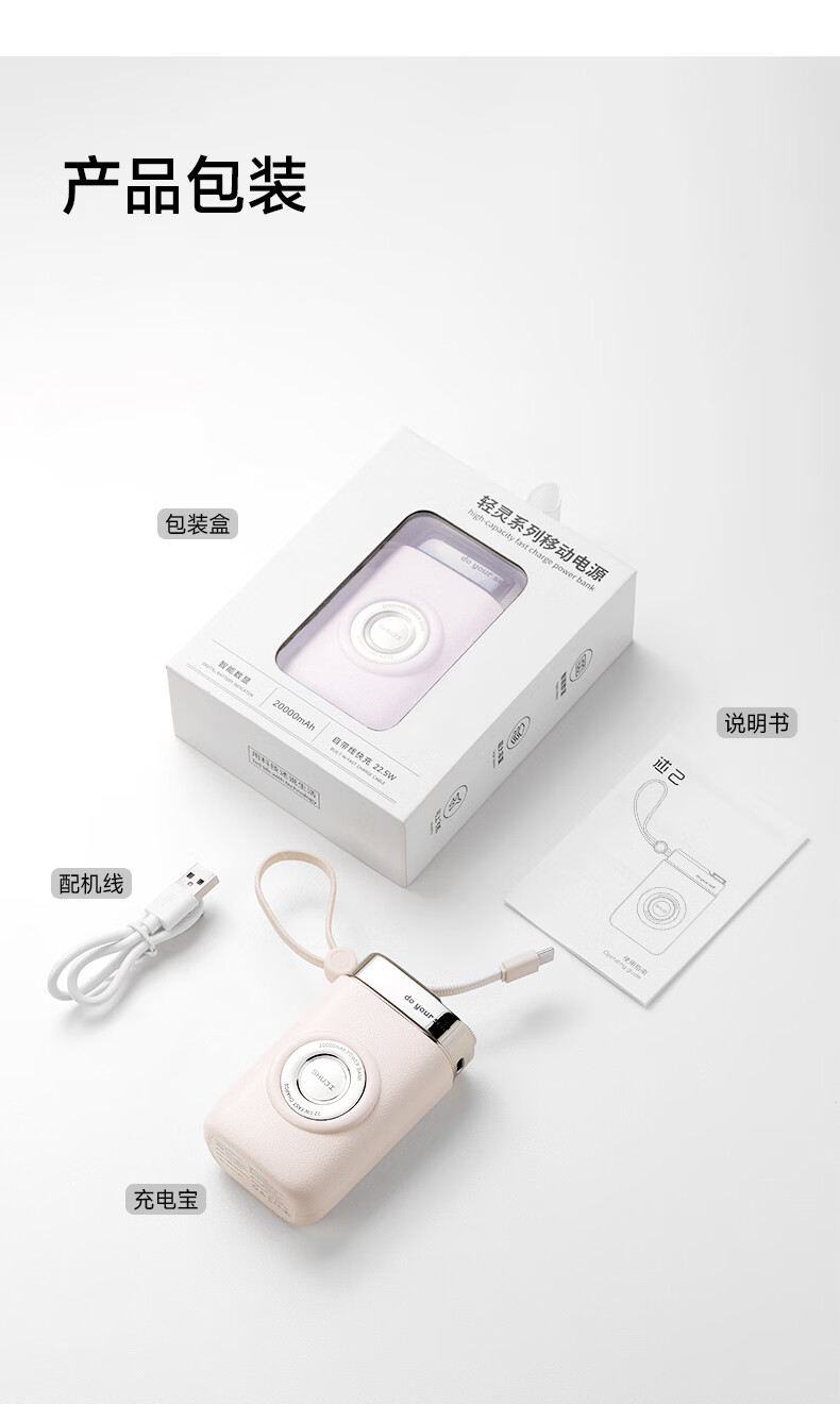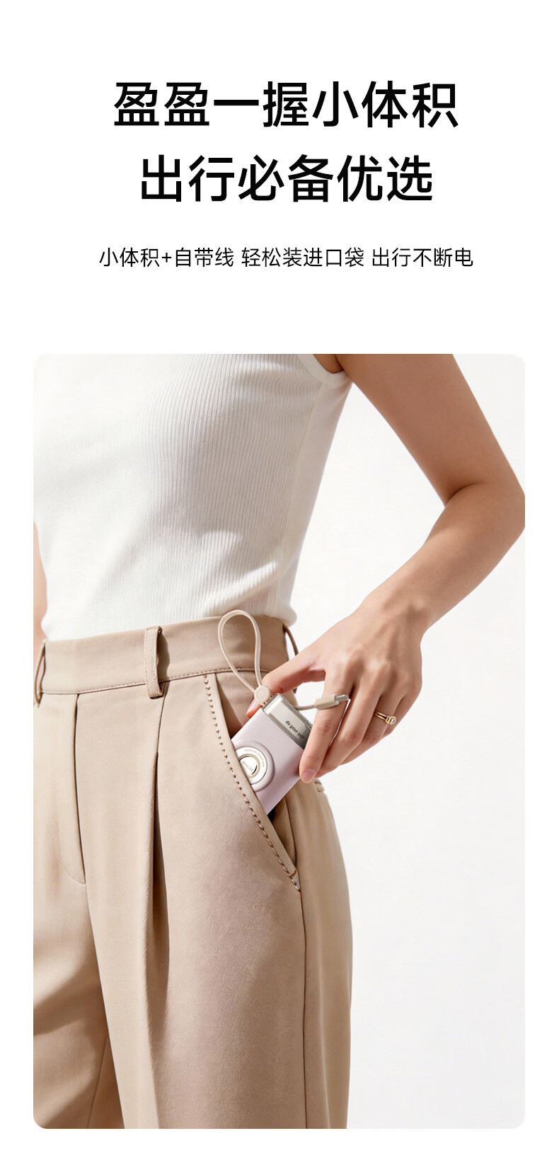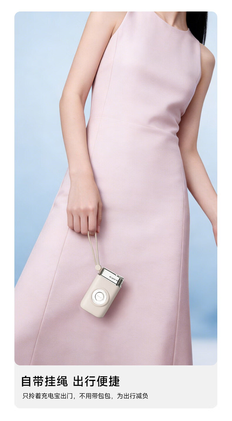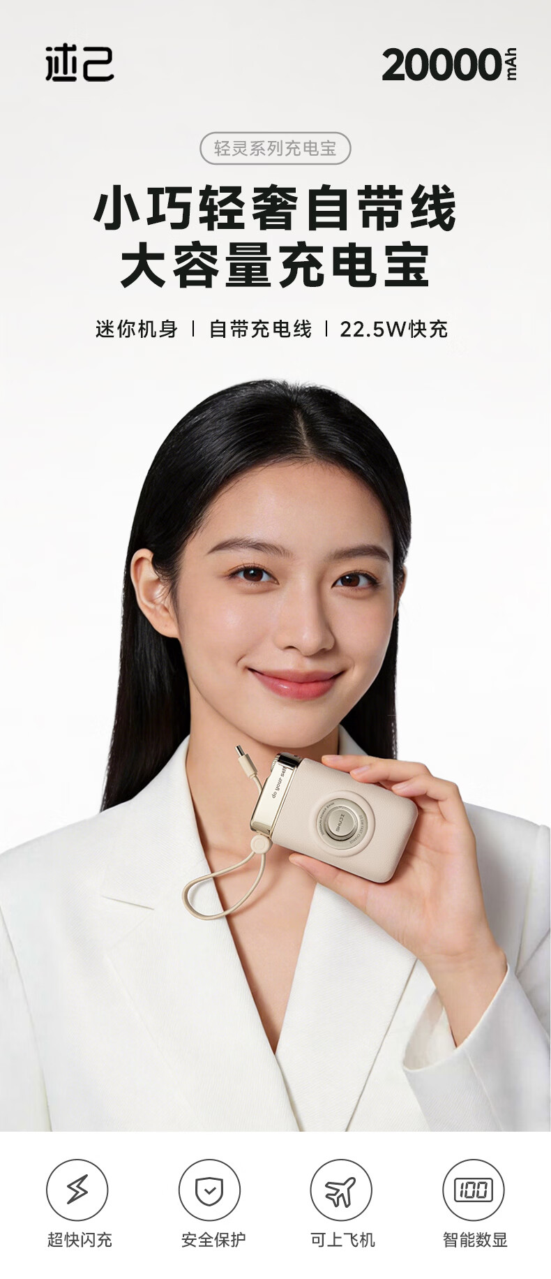述己充电宝20000毫安【新国标3C认证】大容量自带线挂绳快充迷你便携移动电源适用苹果安卓可上飞机 典雅米 【2万毫安】自带双线+22.5w超级快充