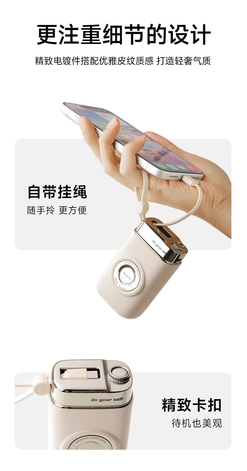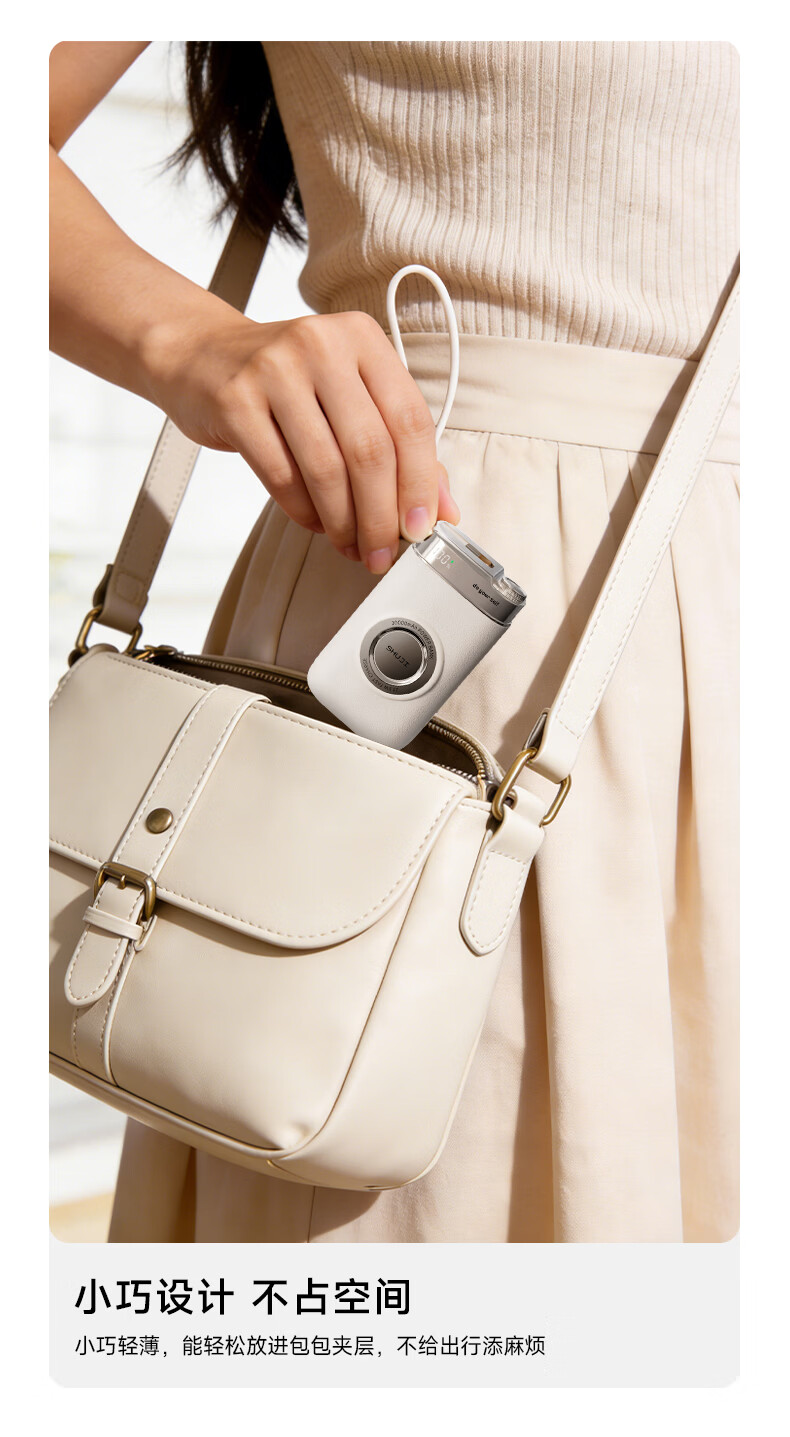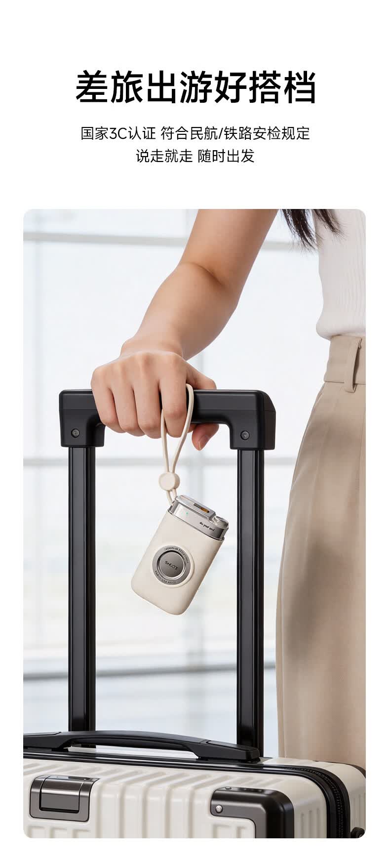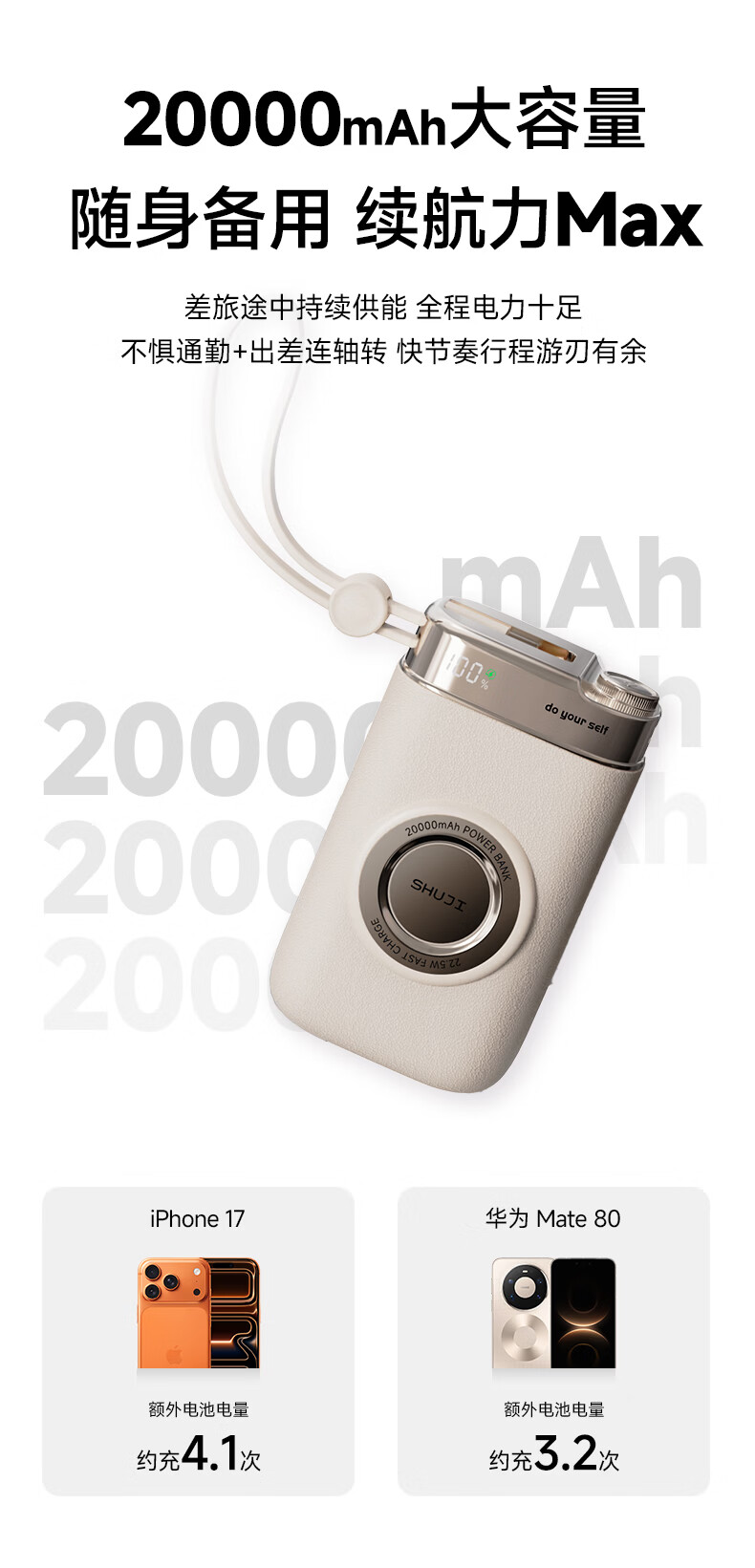 述己充电宝20000毫安【新国标3C认证】大容量自带线挂绳快充迷你便携移动电源适用苹果安卓可上飞机 典雅米 【2万毫安】自带双线+22.5w超级快充