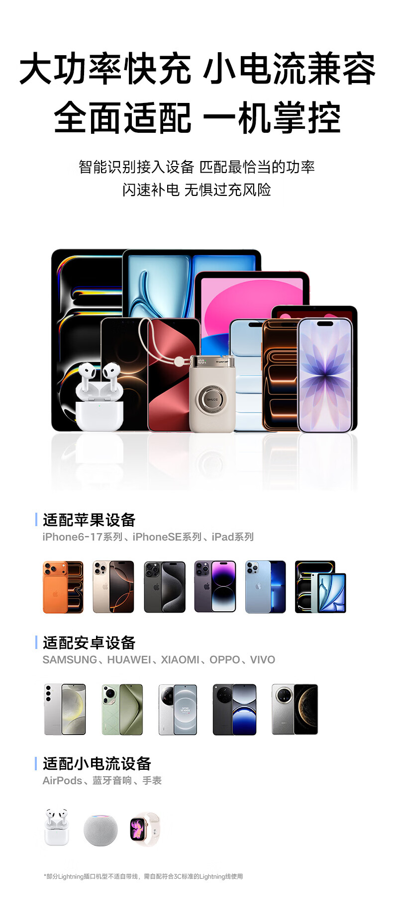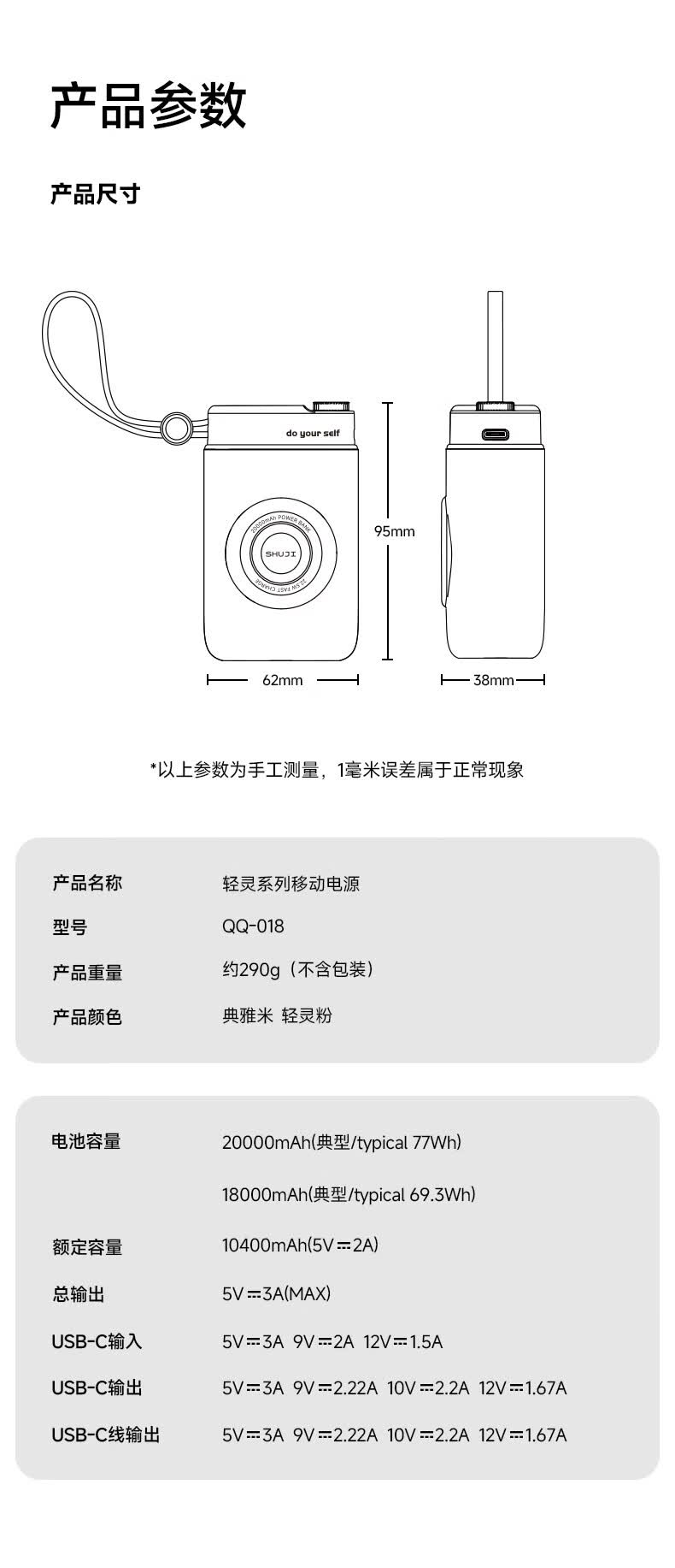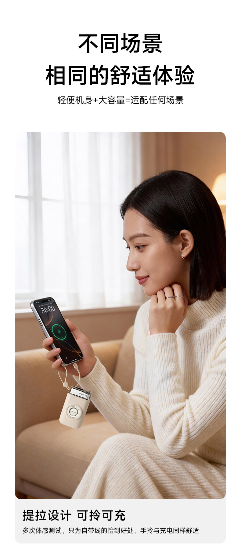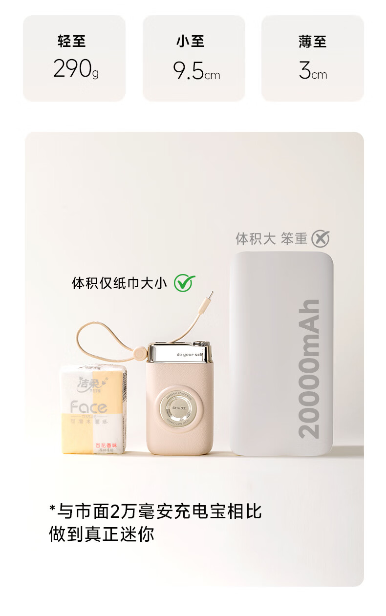 述己充电宝20000毫安【新国标3C认证】大容量自带线挂绳快充迷你便携移动电源适用苹果安卓可上飞机 典雅米 【2万毫安】自带双线+22.5w超级快充