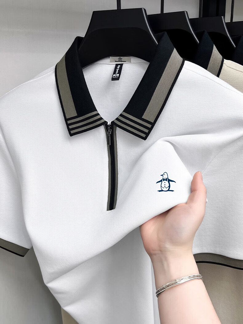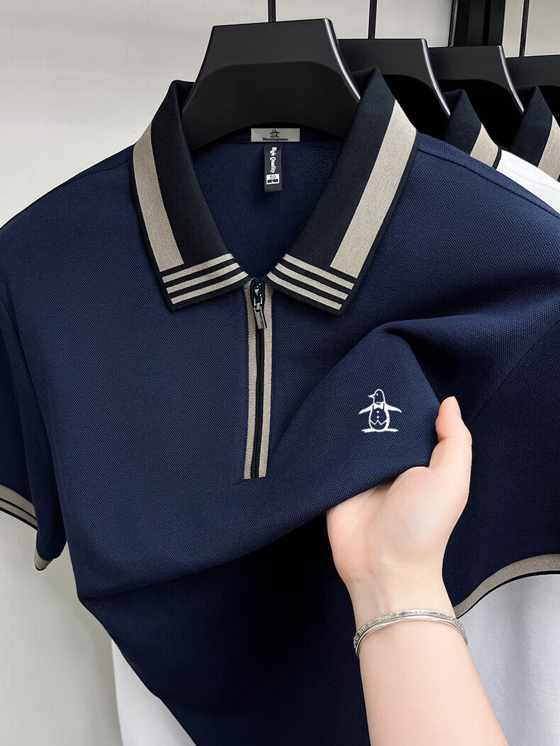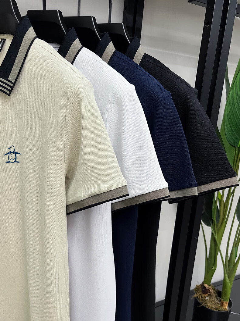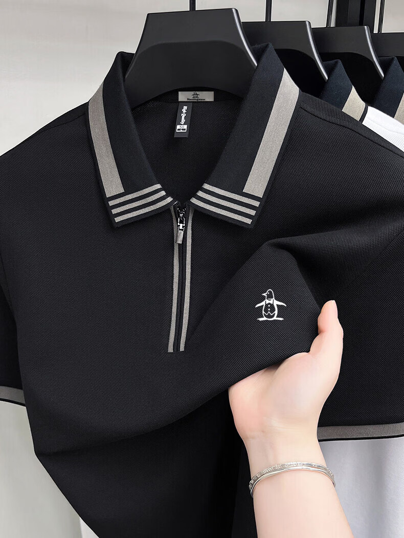 万星威(Munsingwear)【透气】新款万星威高端男士短袖T恤中青年休闲丝光棉POLO衫 黑色 L 【建议120-140斤】