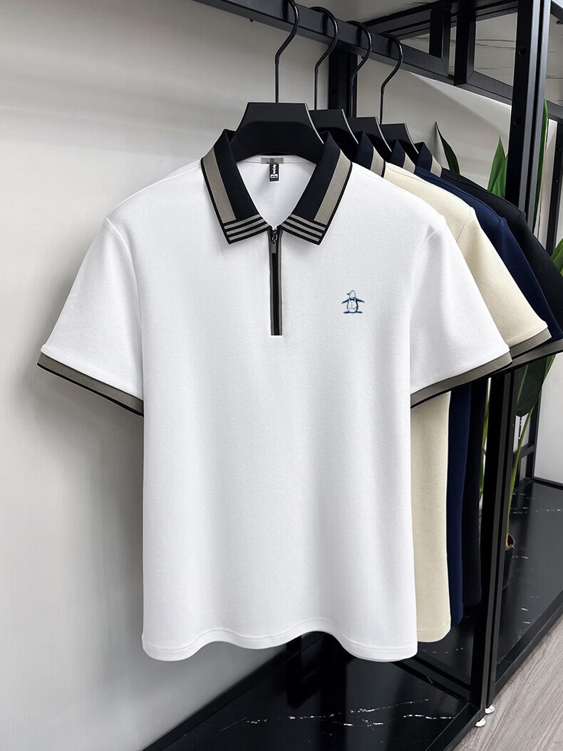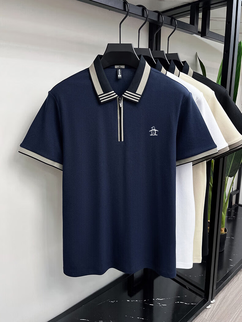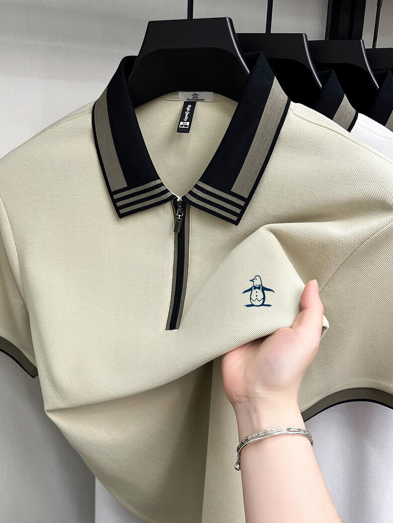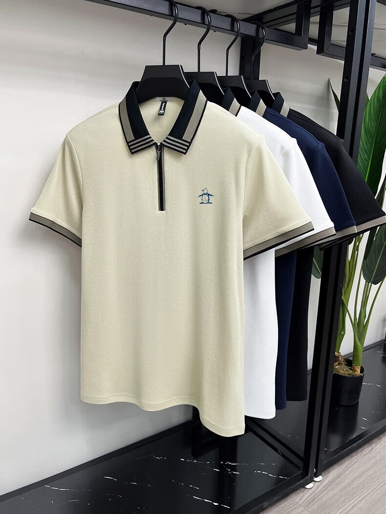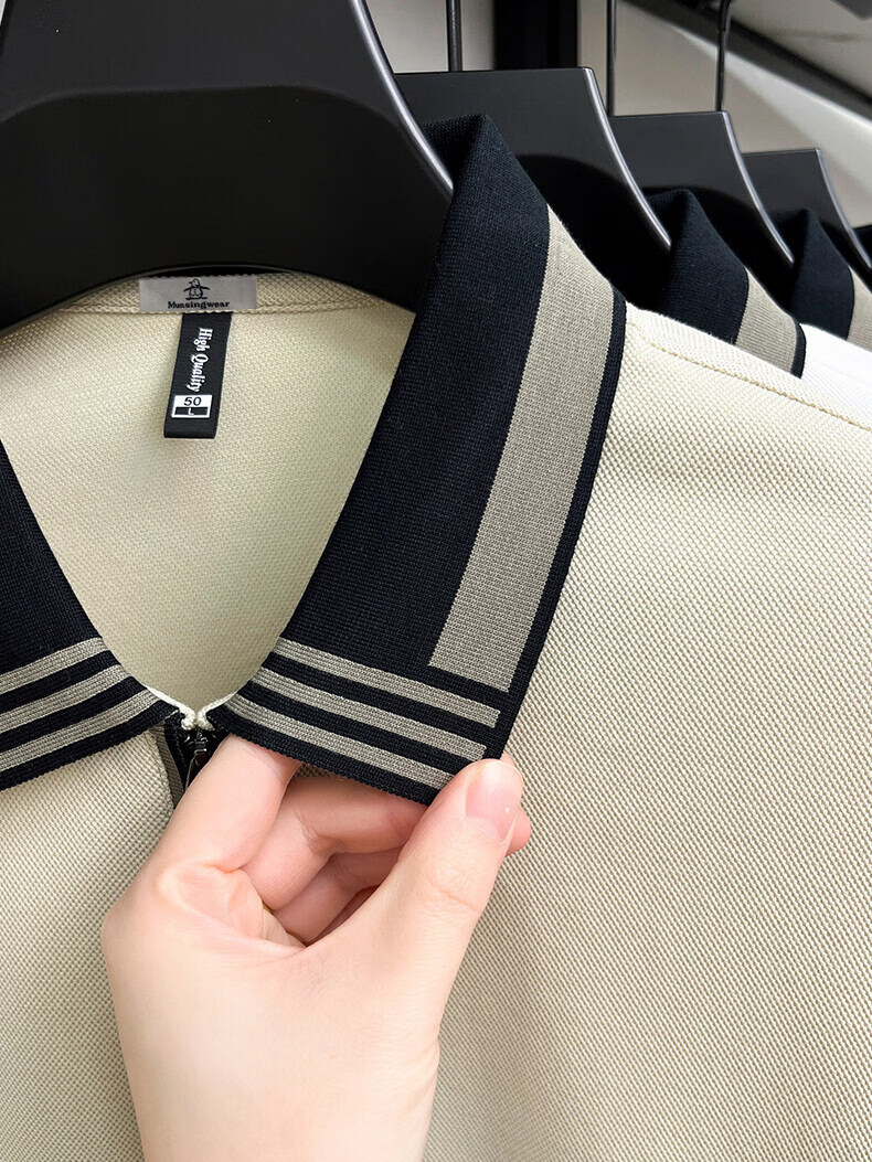 万星威(Munsingwear)【透气】新款万星威高端男士短袖T恤中青年休闲丝光棉POLO衫 黑色 L 【建议120-140斤】