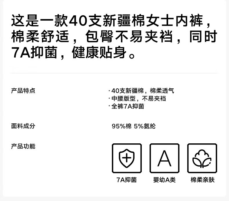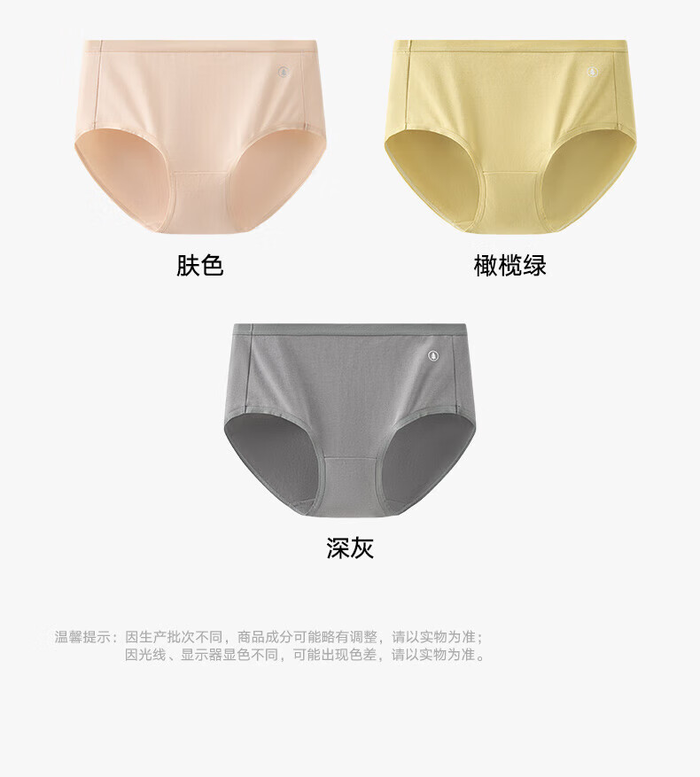 松山棉店女士内裤新疆棉7A抑菌裆A类透气三角裤米白+肤色+银灰L