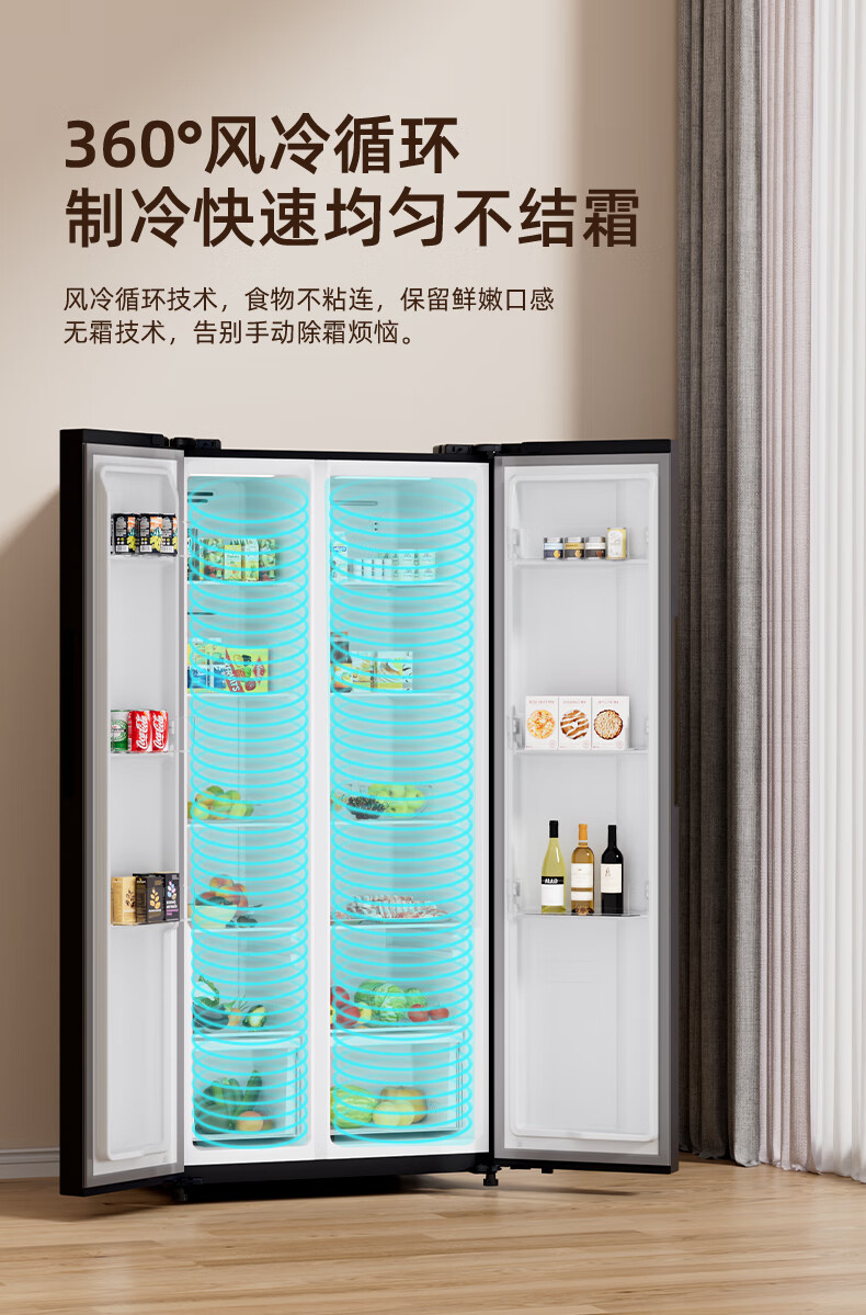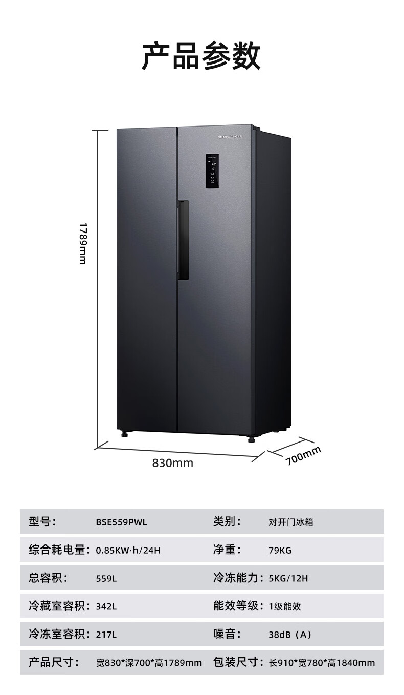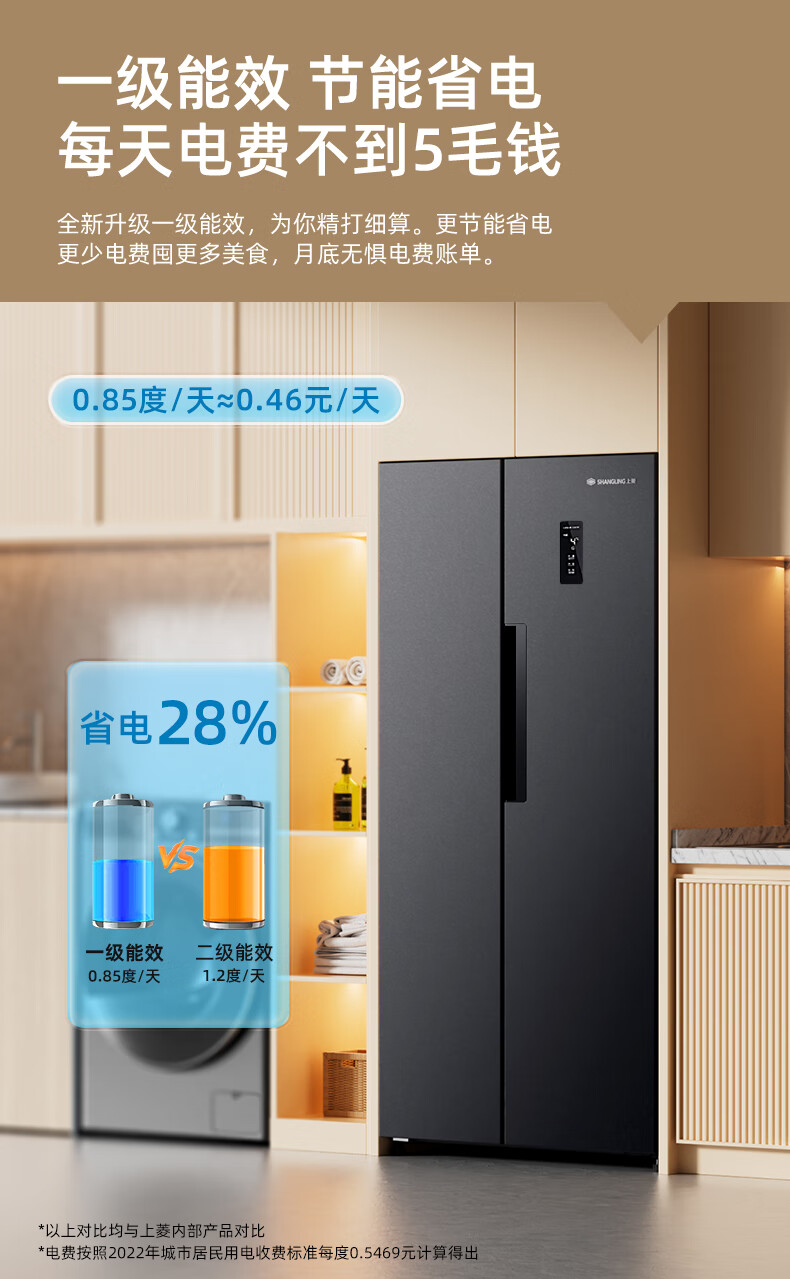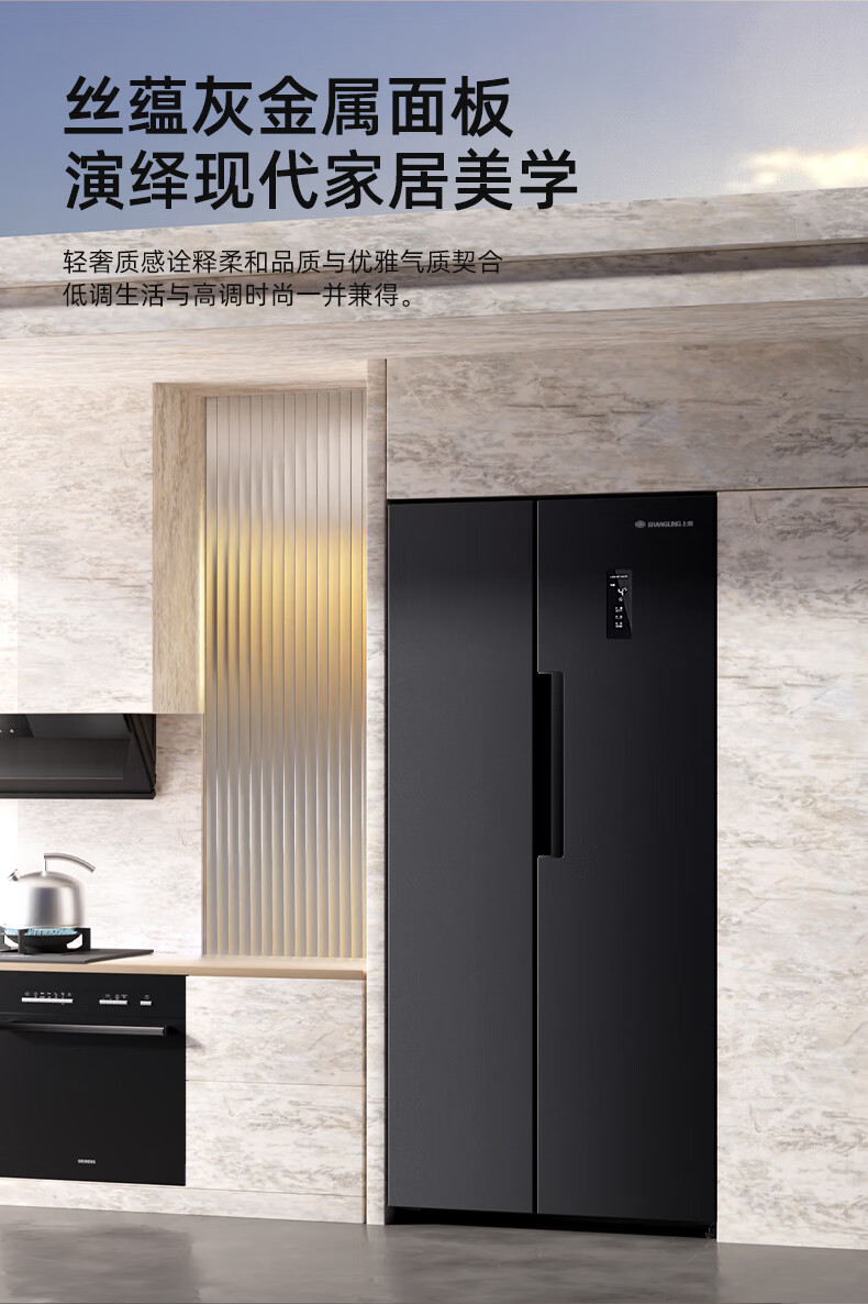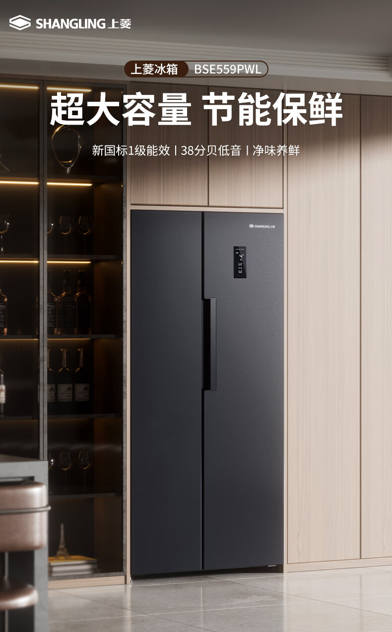 上菱559升双开门冰箱对开门风冷无霜一级能效节能变频家用大容量电冰箱BSE559PWL国家补贴