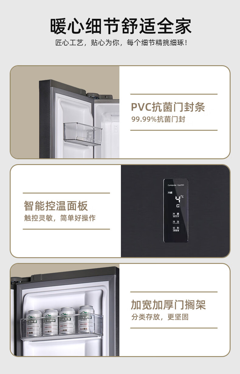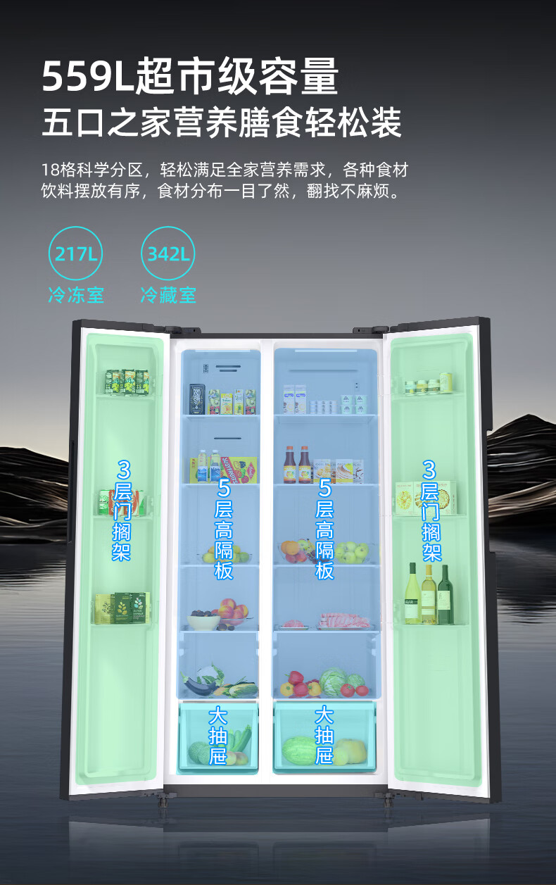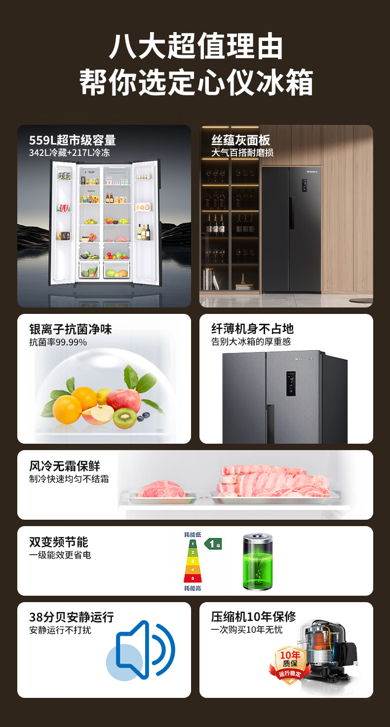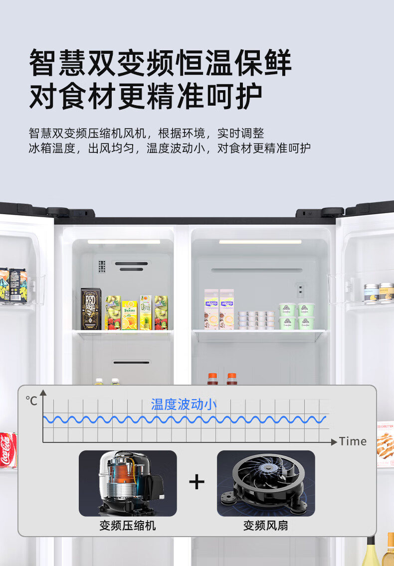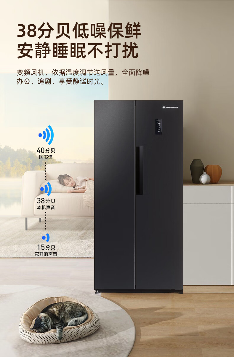上菱559升双开门冰箱对开门风冷无霜一级能效节能变频家用大容量电冰箱BSE559PWL国家补贴