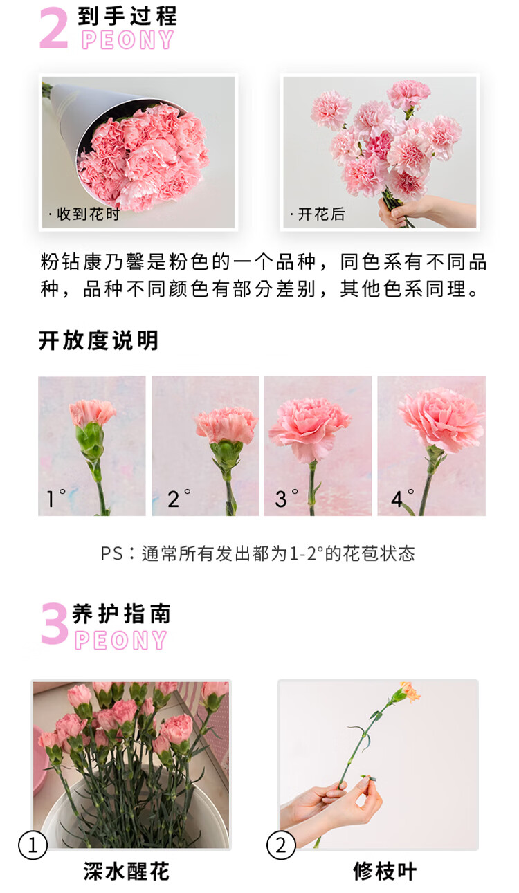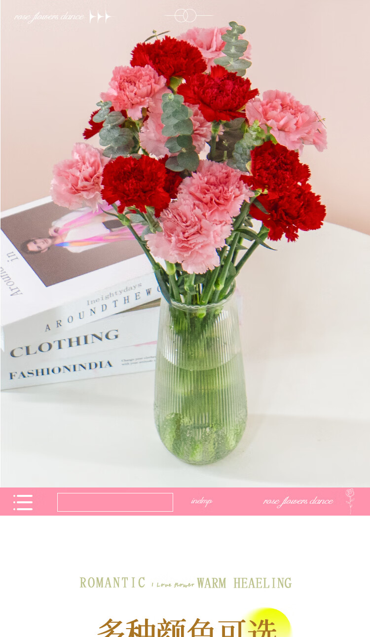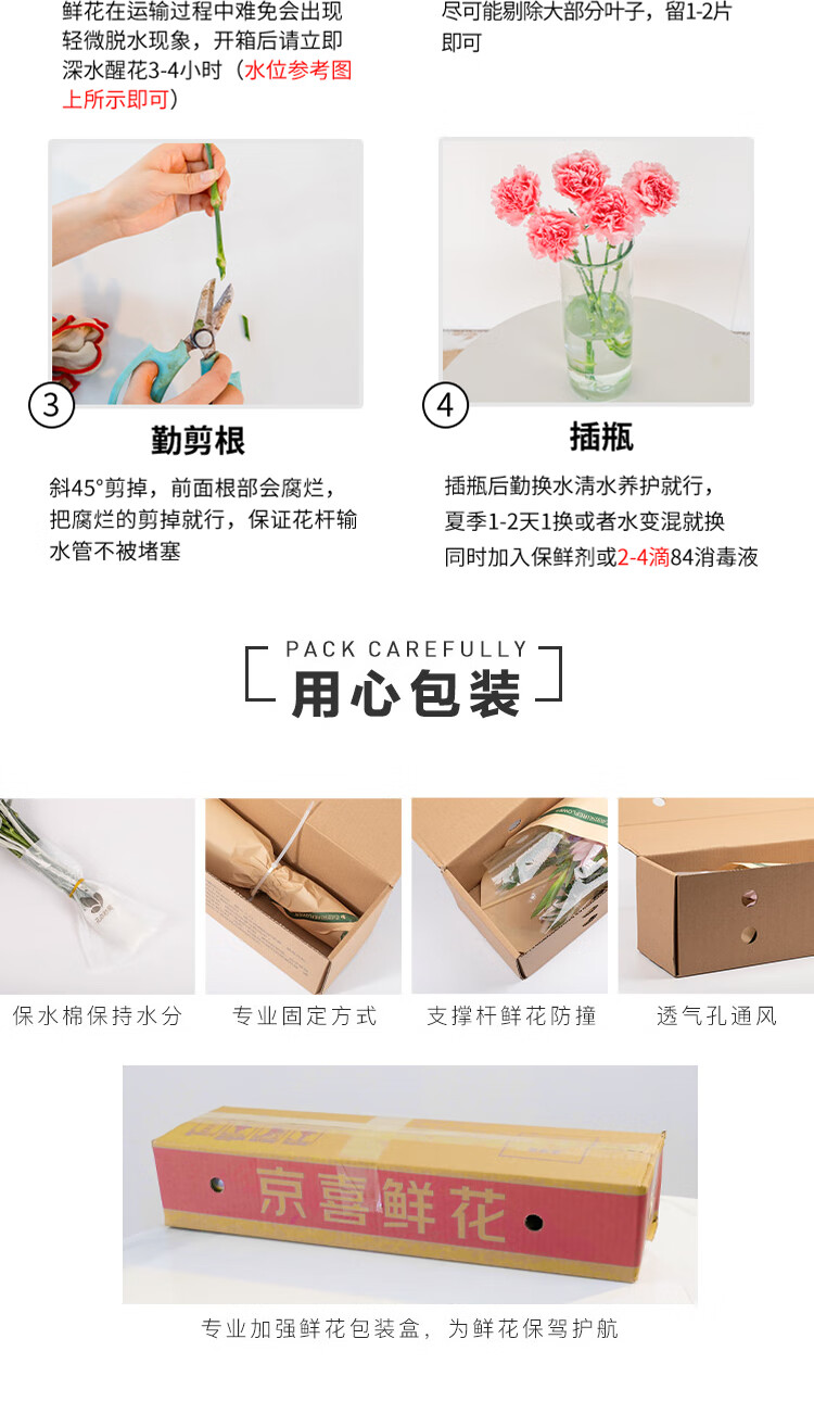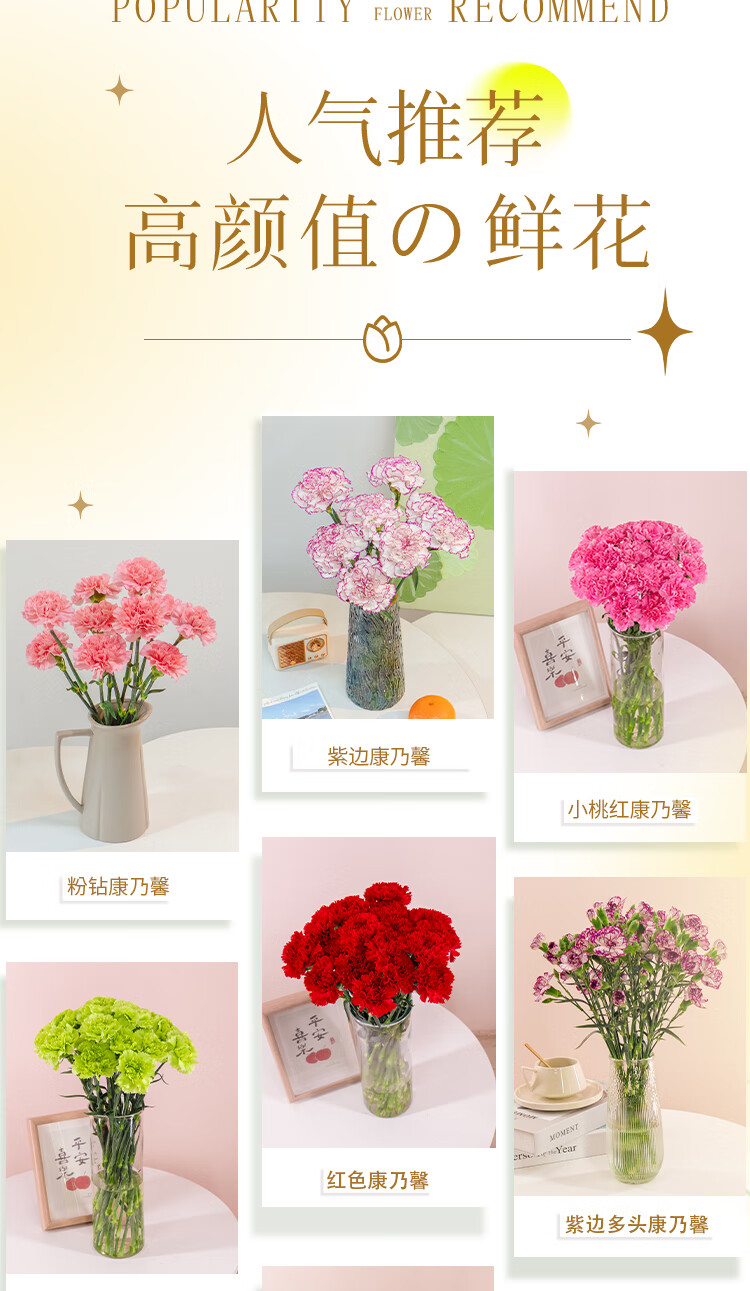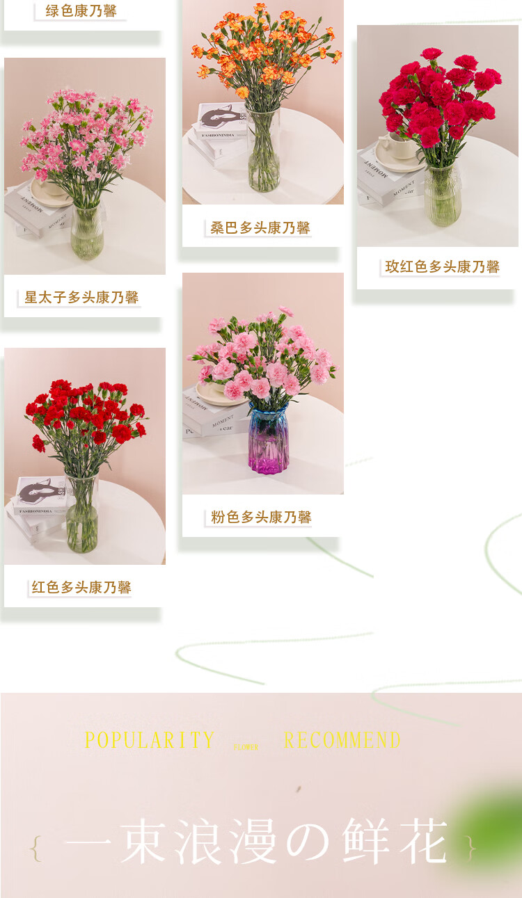 【单头康乃馨】鲜切花多色云南基地直发送妈妈送老婆花七夕节礼物 单头康乃馨红色20枝