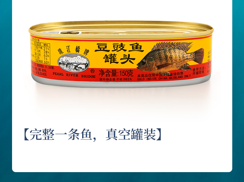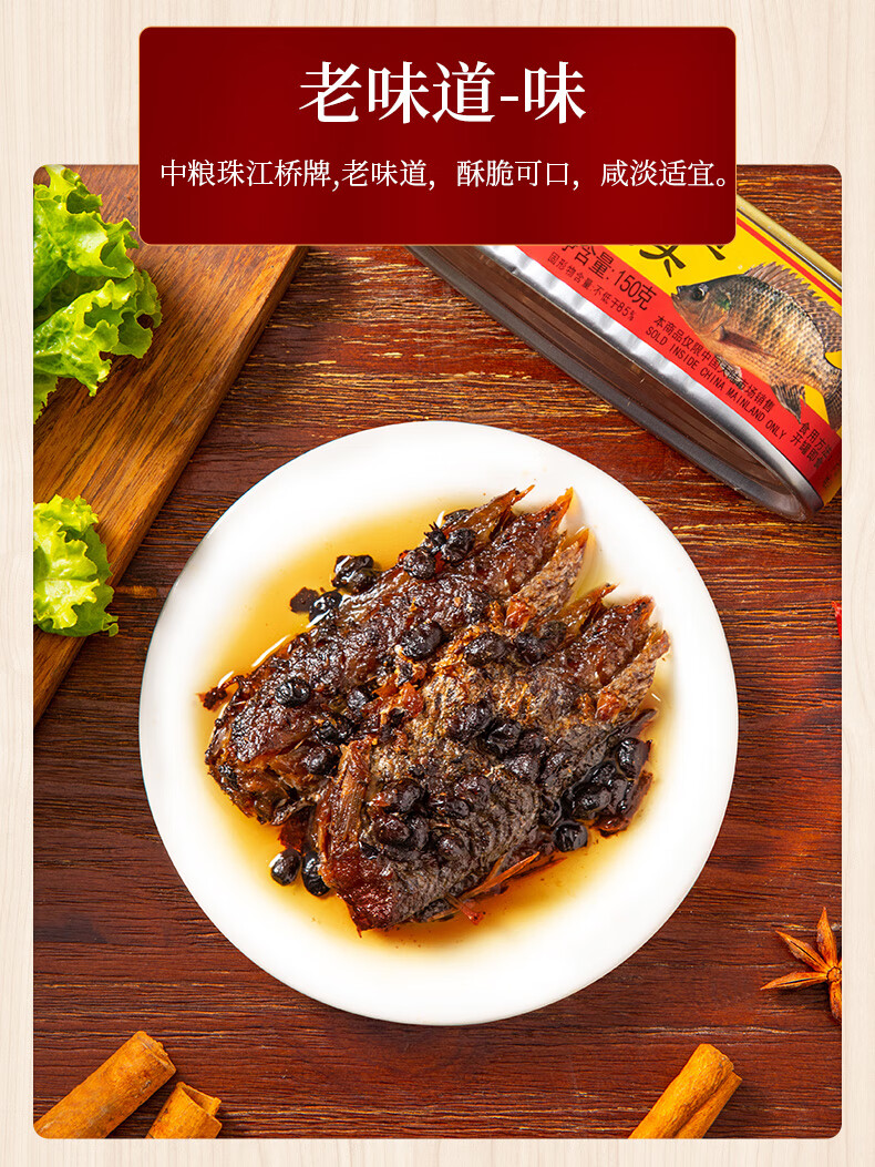 珠江桥牌原味豆豉鱼罐头150g中粮出品 即食下饭酒菜预制菜 中华老字号