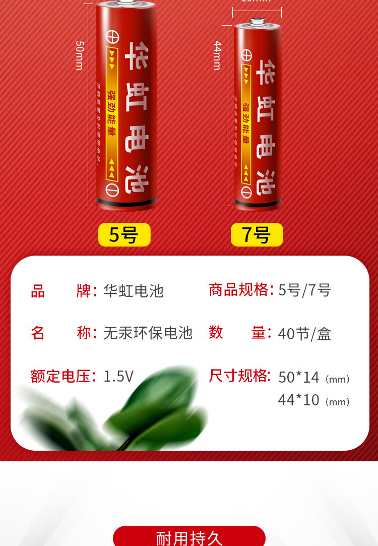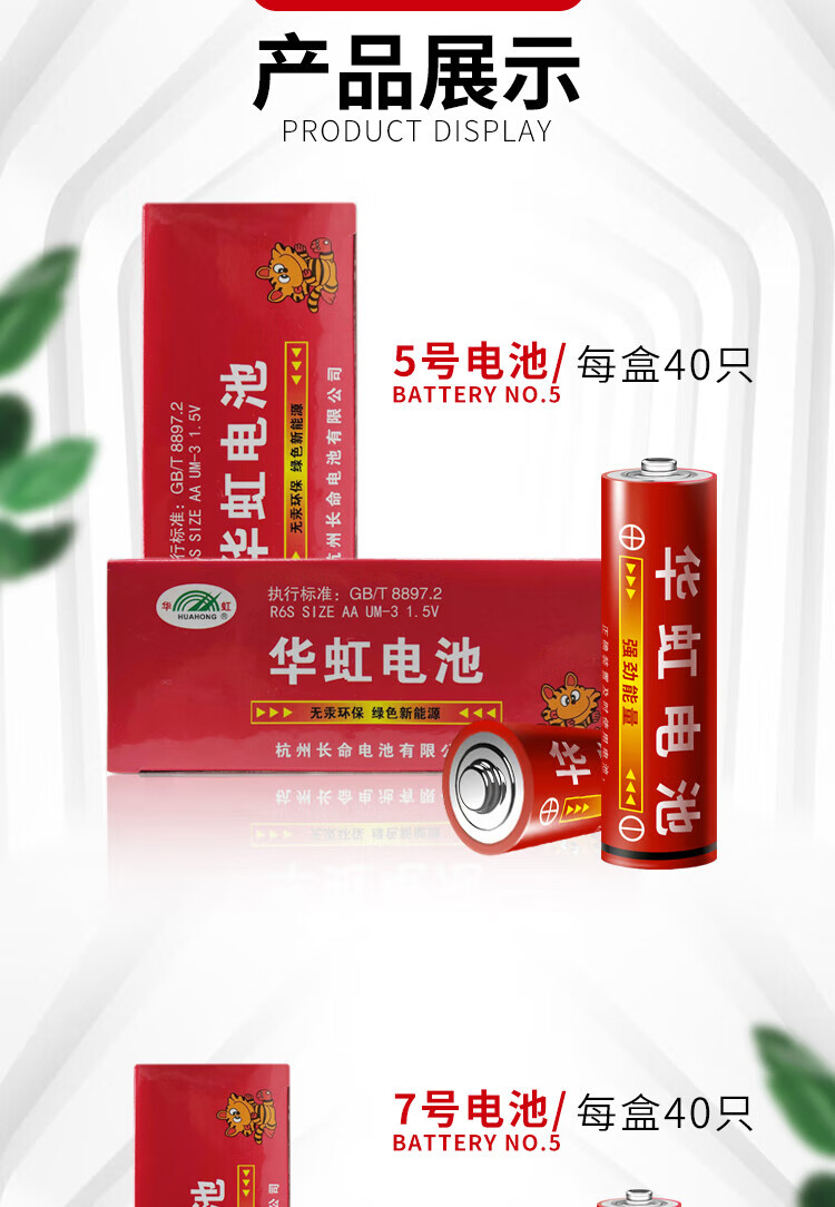华虹(HUAHONG)碳性7号电池40粒玩具电池空调电视遥控器钟表键盘鼠标话筒体重秤计算器【单件包邮】