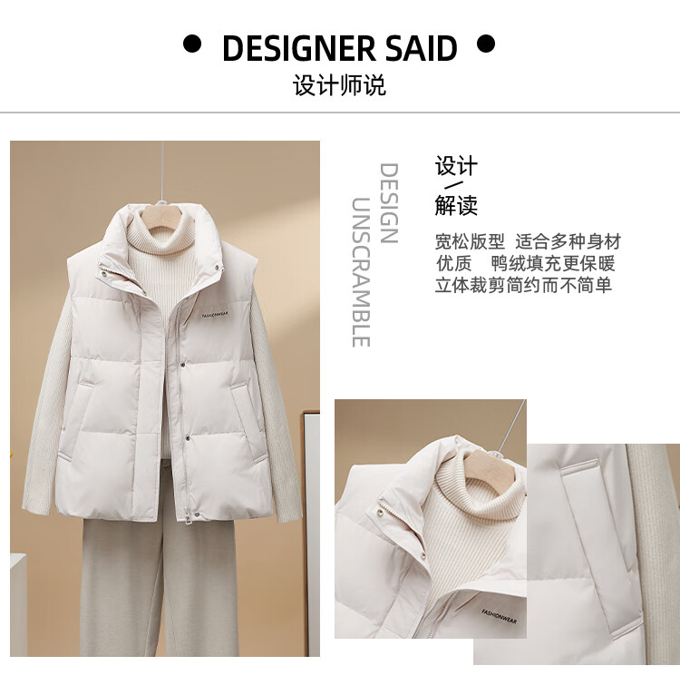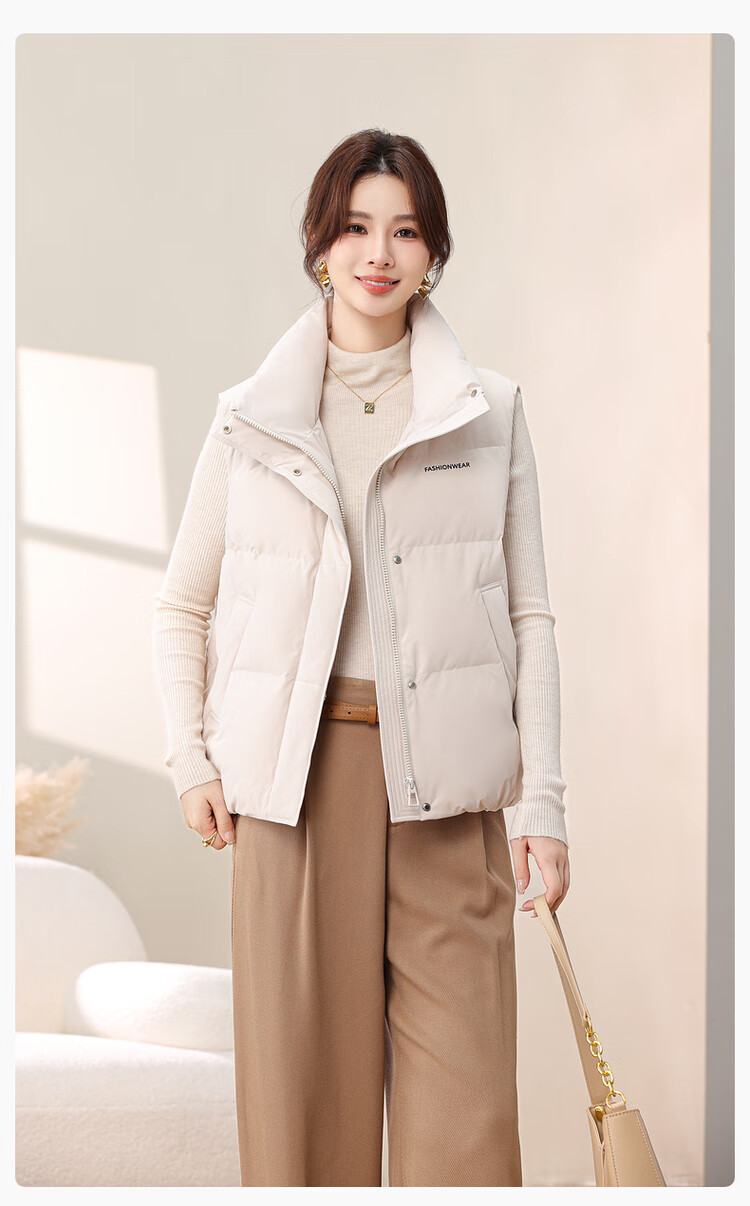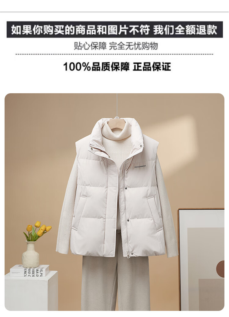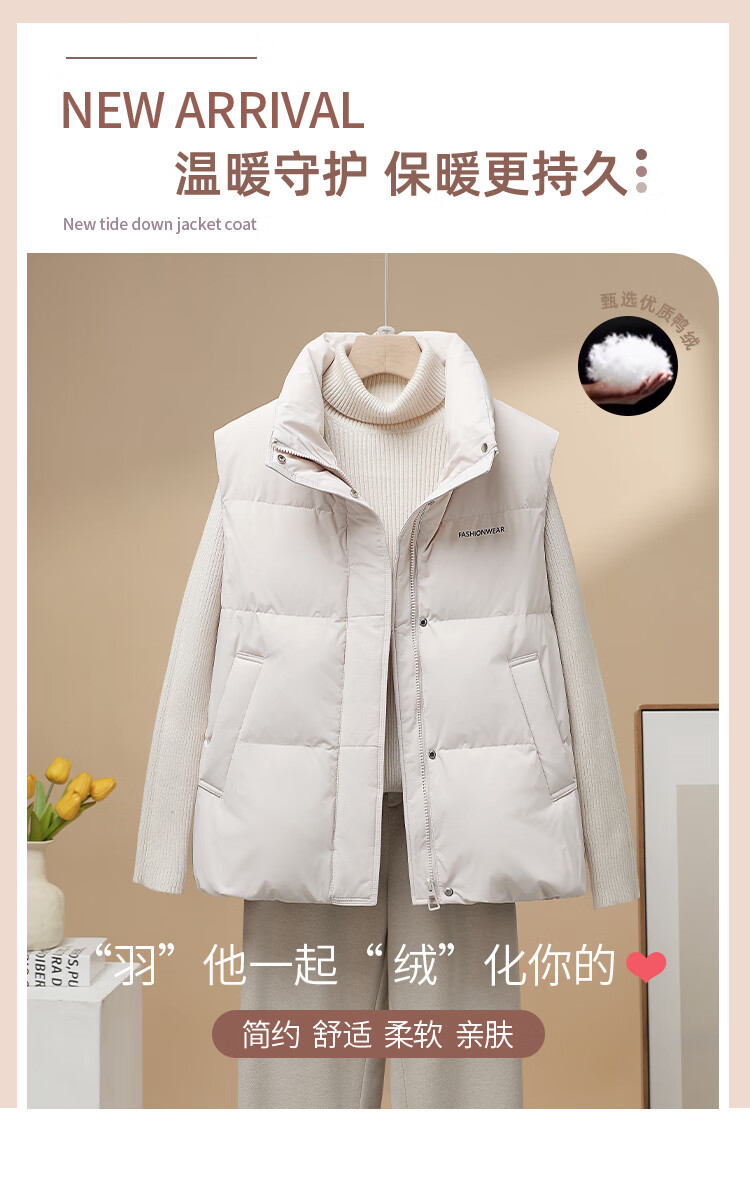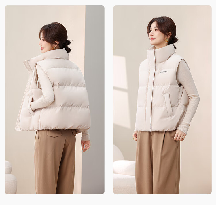 雪中飞25新款羽绒马甲秋冬上衣时尚内搭马夹冬季保暖厚背心外套L099030 米色 S (160/84A) 95-110斤