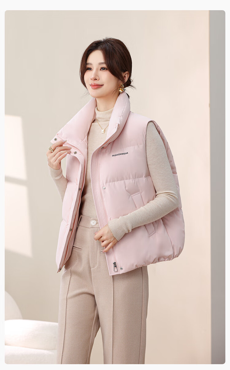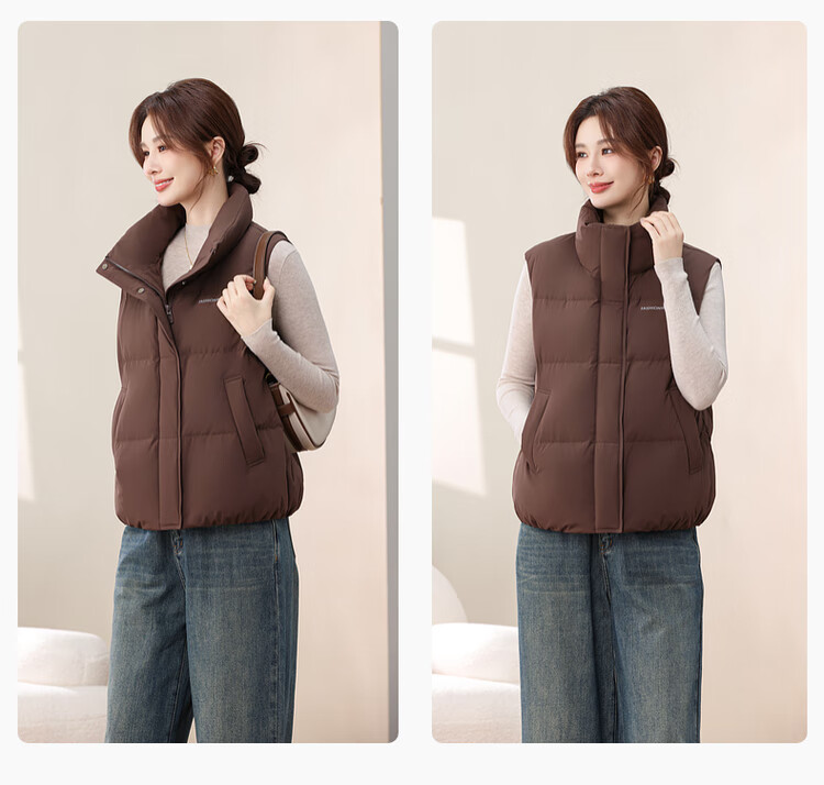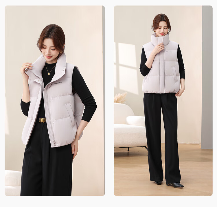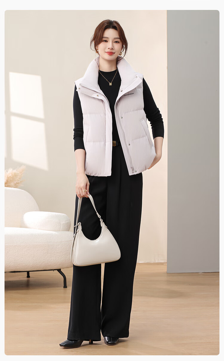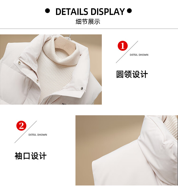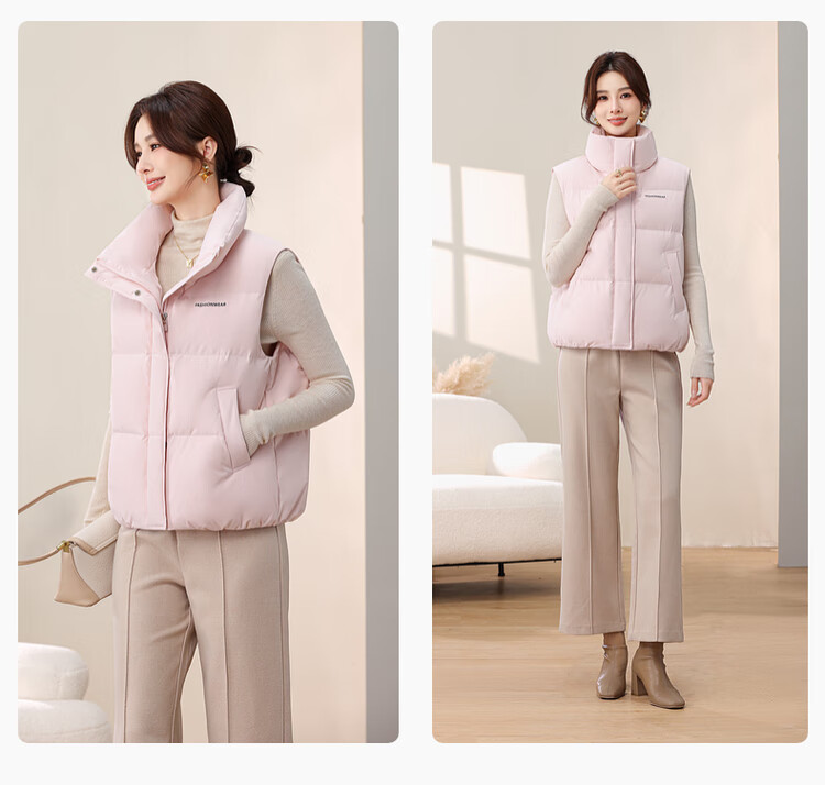 雪中飞25新款羽绒马甲秋冬上衣时尚内搭马夹冬季保暖厚背心外套L099030 米色 S (160/84A) 95-110斤