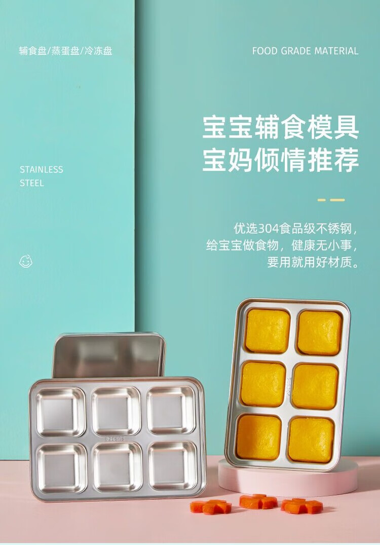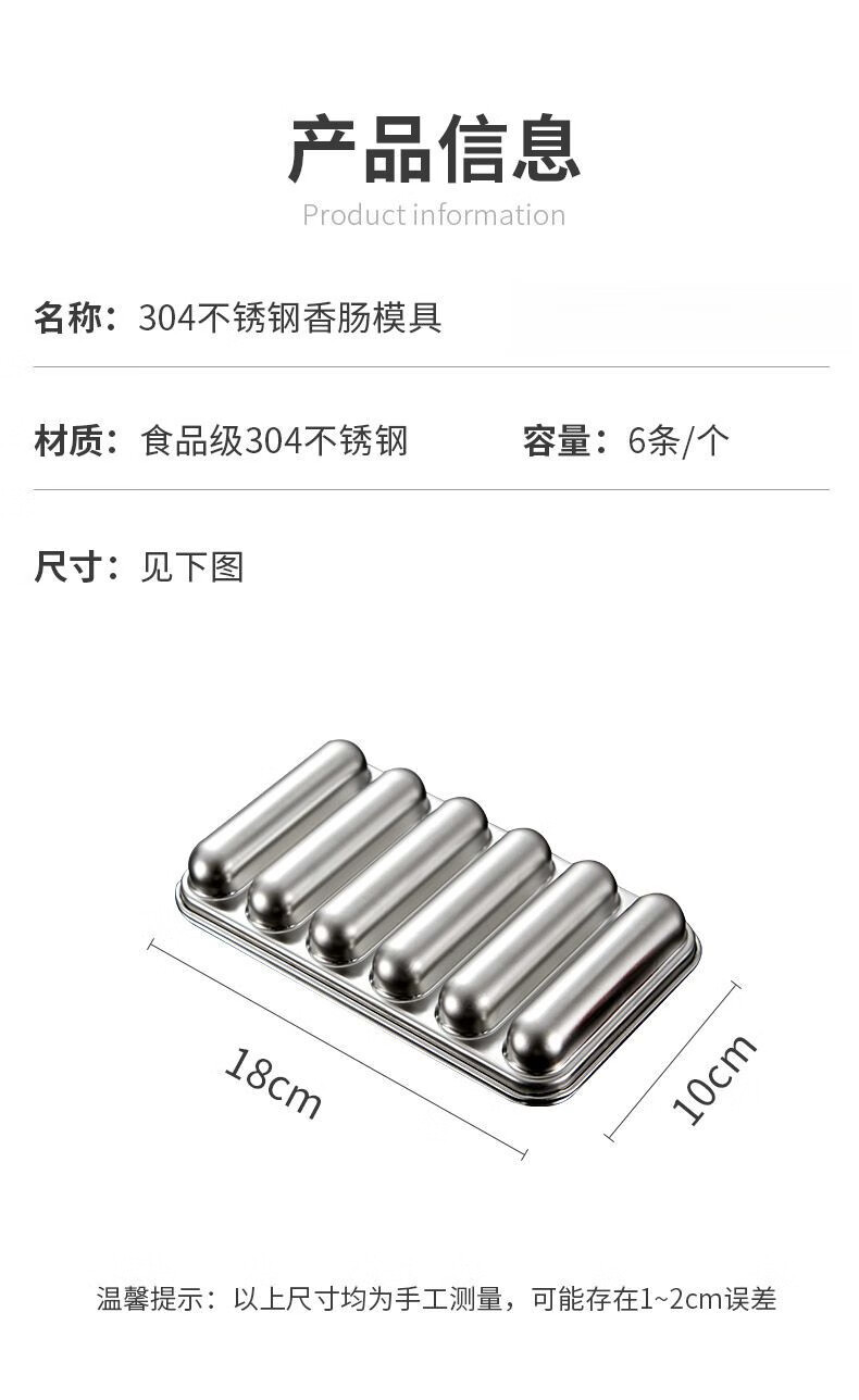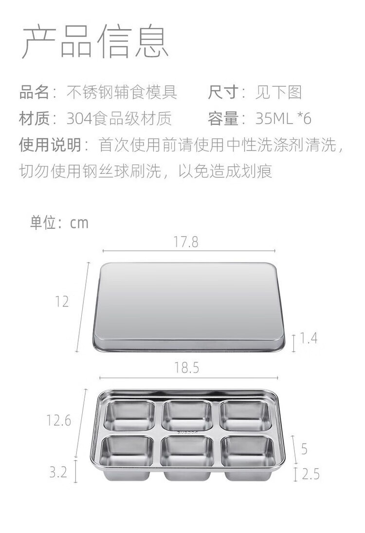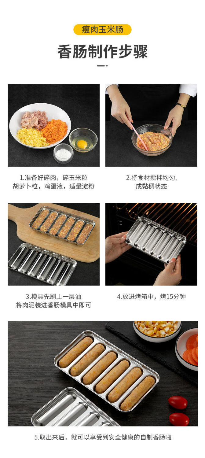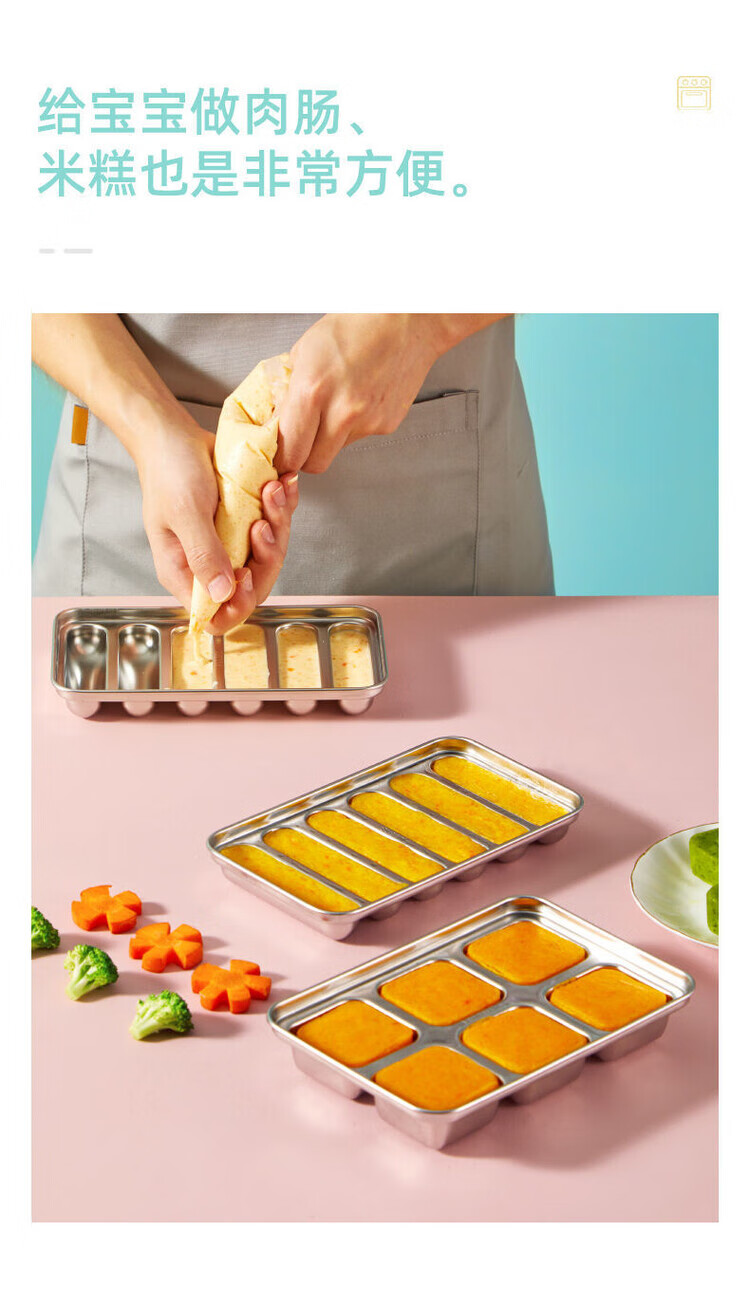 简漾宝宝辅食盒蒸糕模具婴儿家用冰格带盖可冷冻蒸煮304不锈钢辅食盒 香肠模+油刷+夹+裱花袋