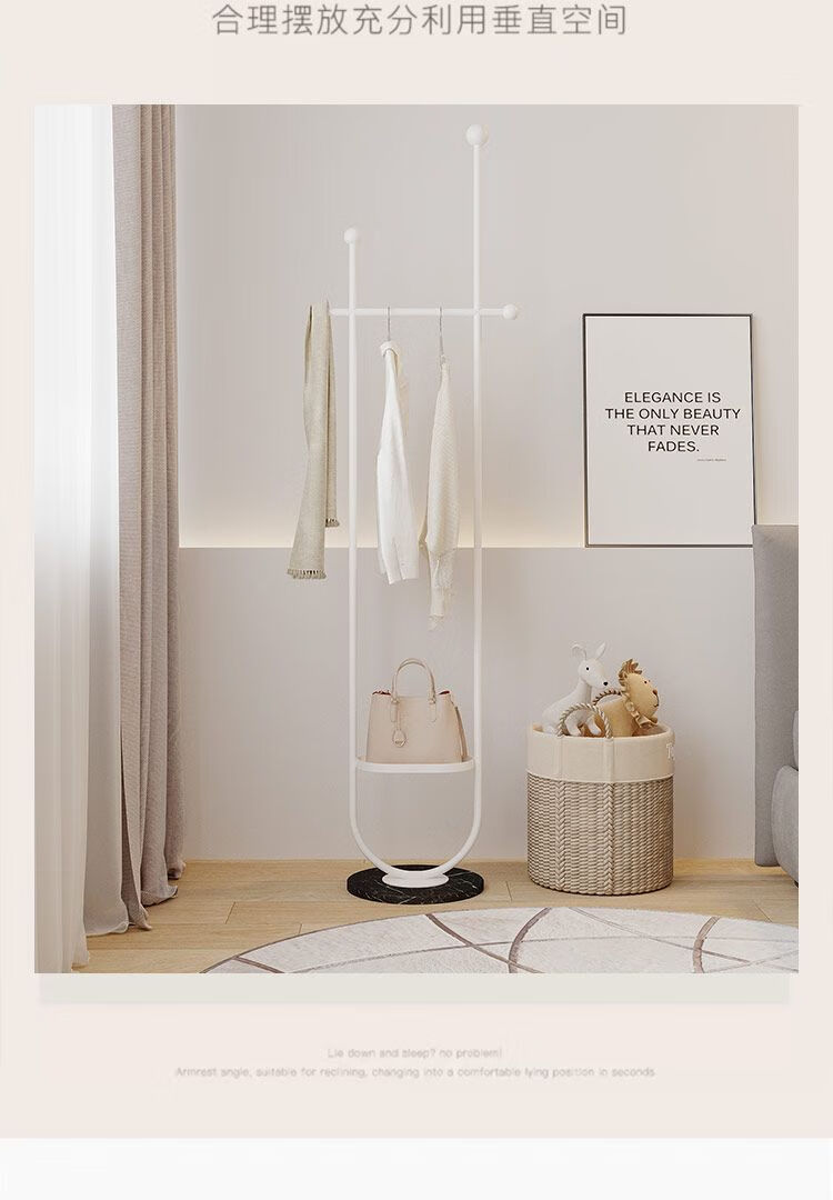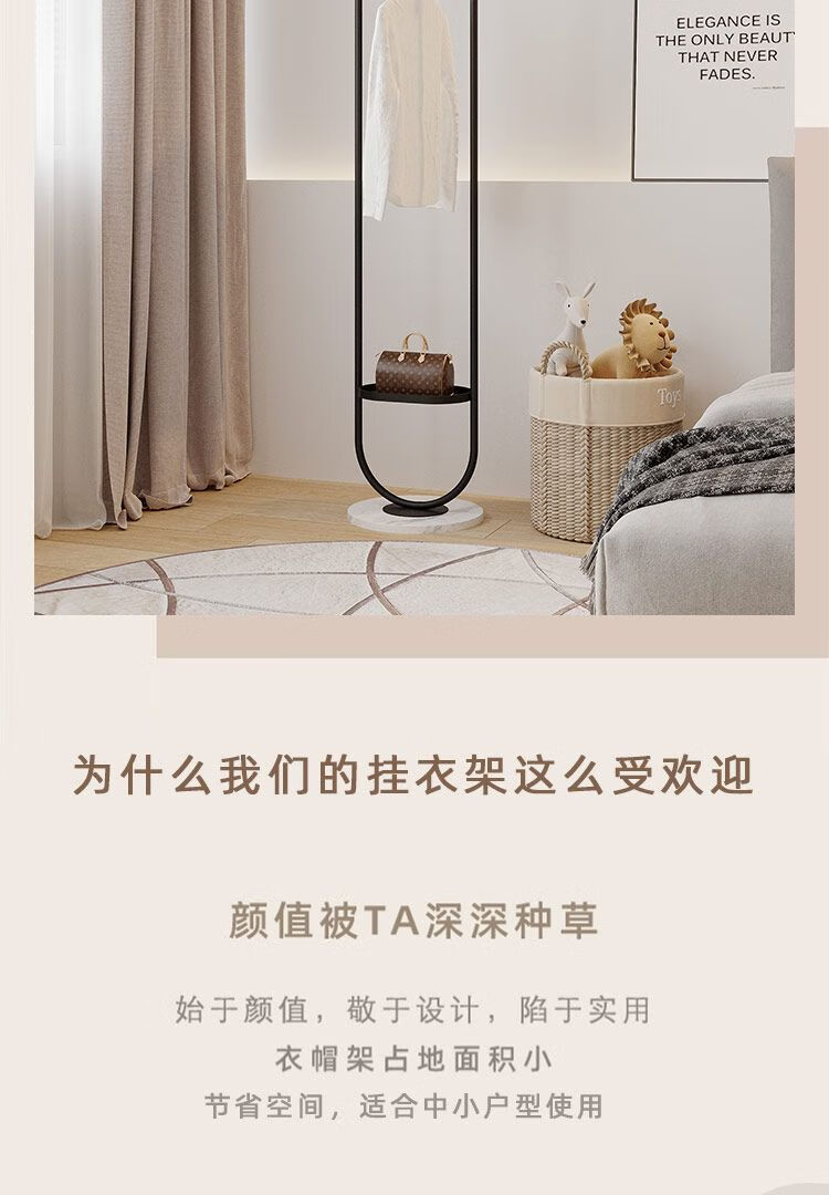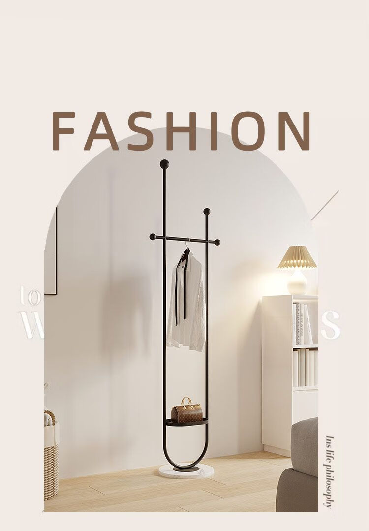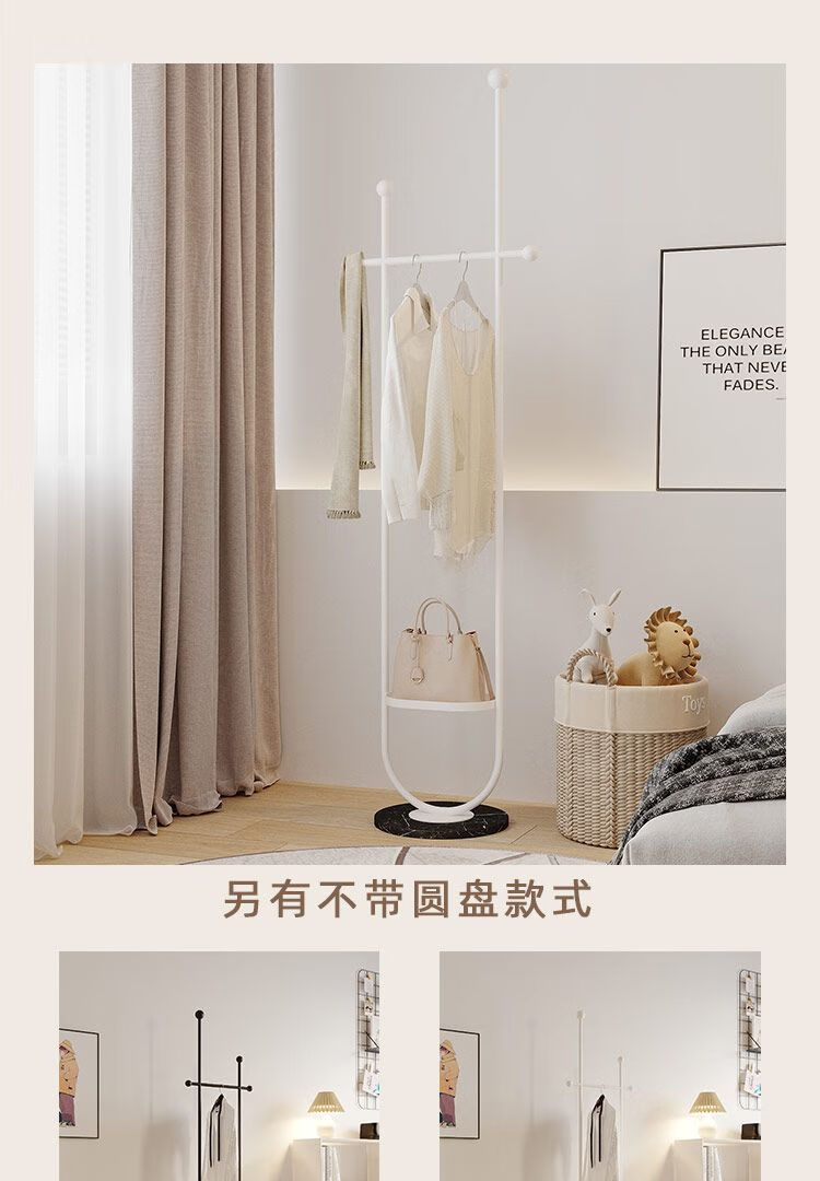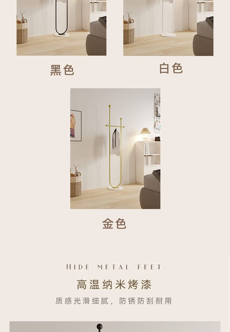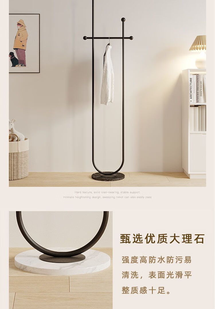 迈途森轻奢衣帽架房间立式衣架落地卧室家用室内挂衣架金属不占空间收纳 黑支架+白底座 U形