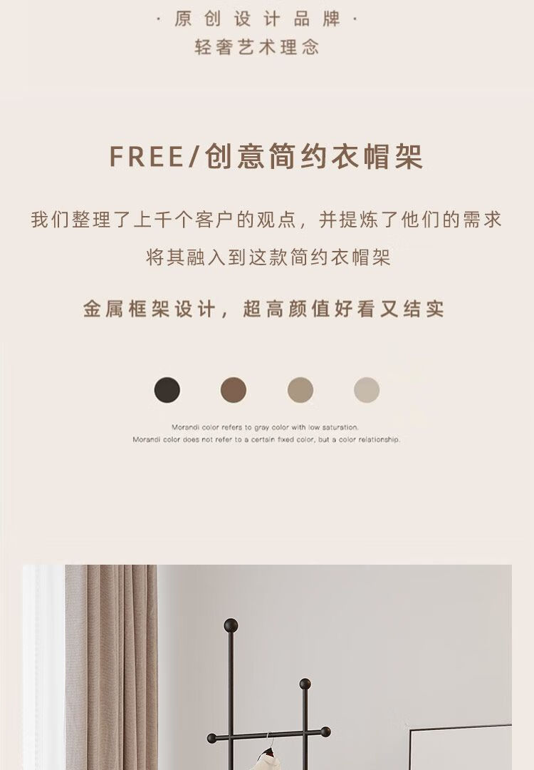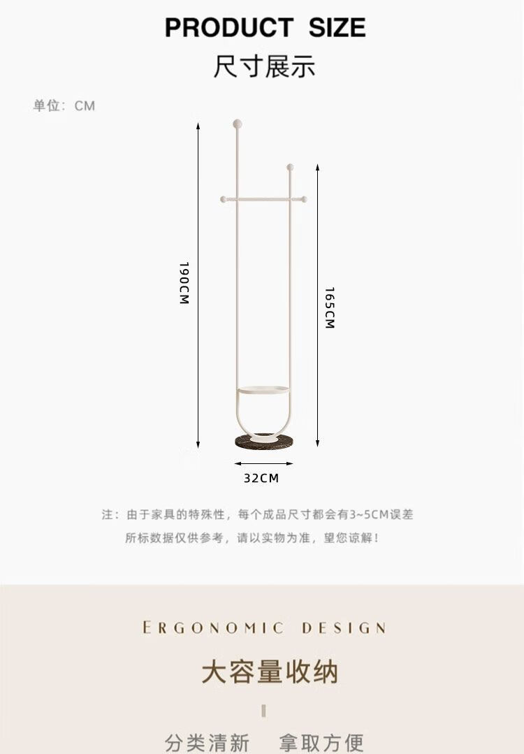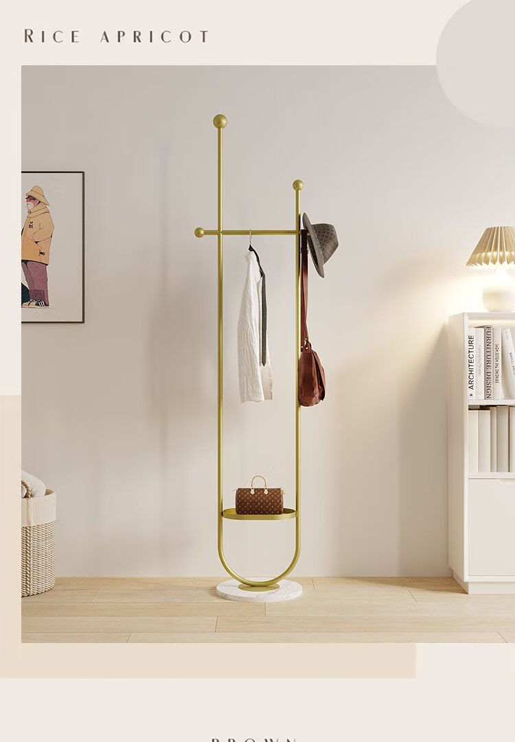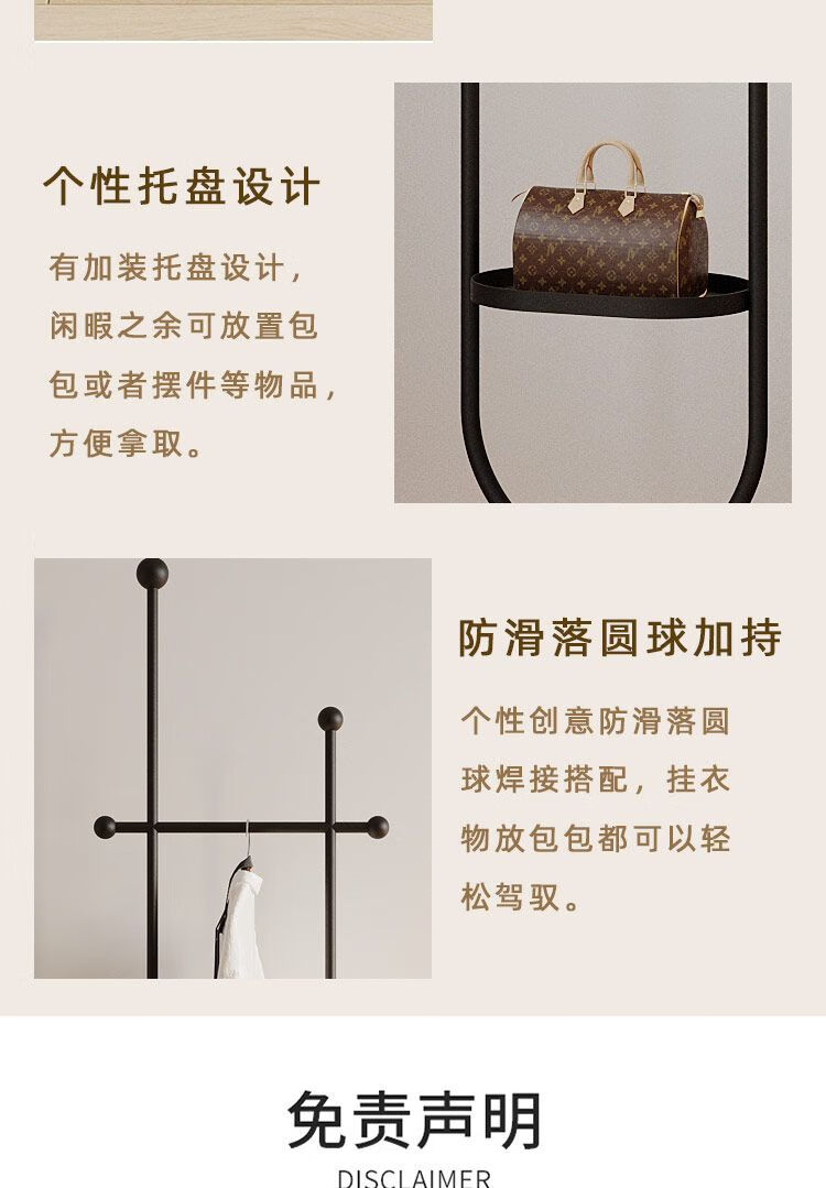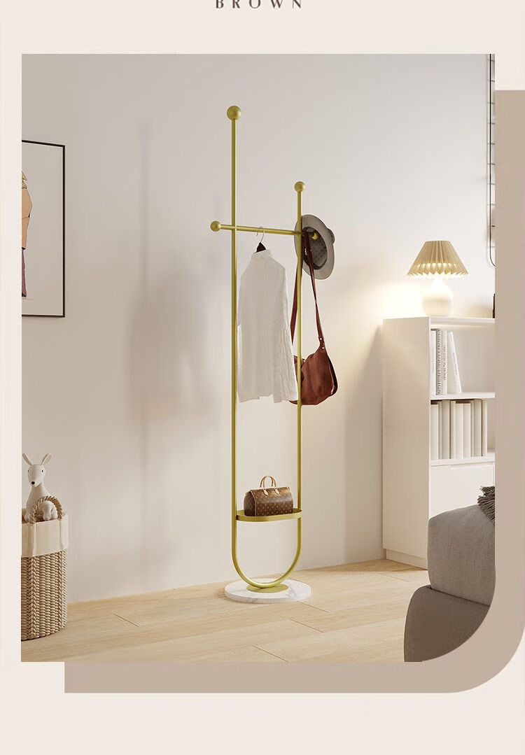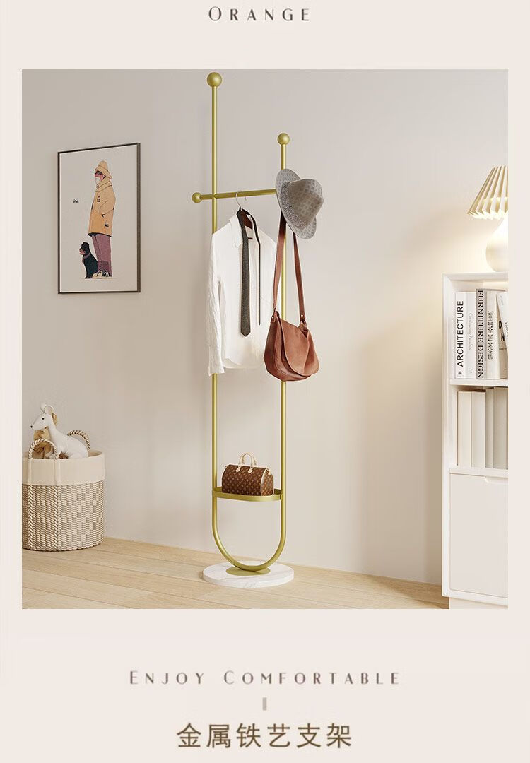 迈途森轻奢衣帽架房间立式衣架落地卧室家用室内挂衣架金属不占空间收纳 黑支架+白底座 U形