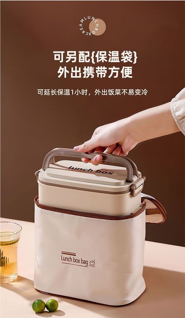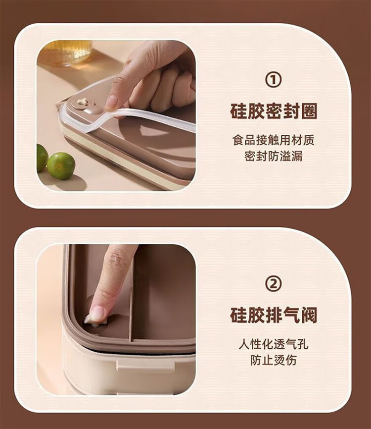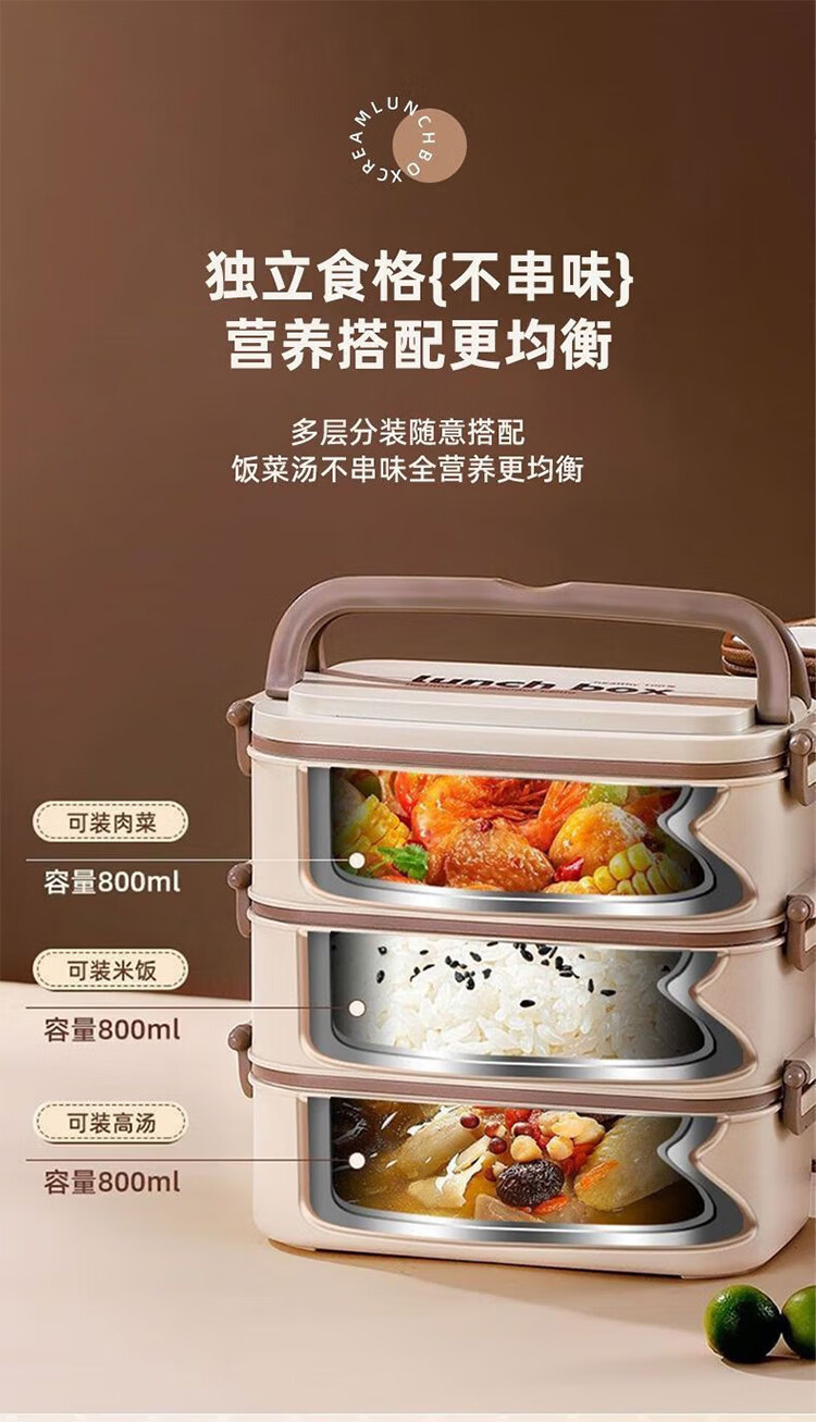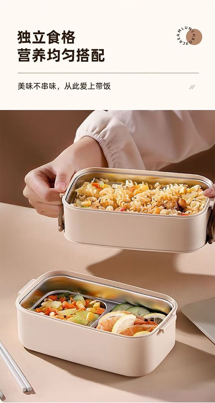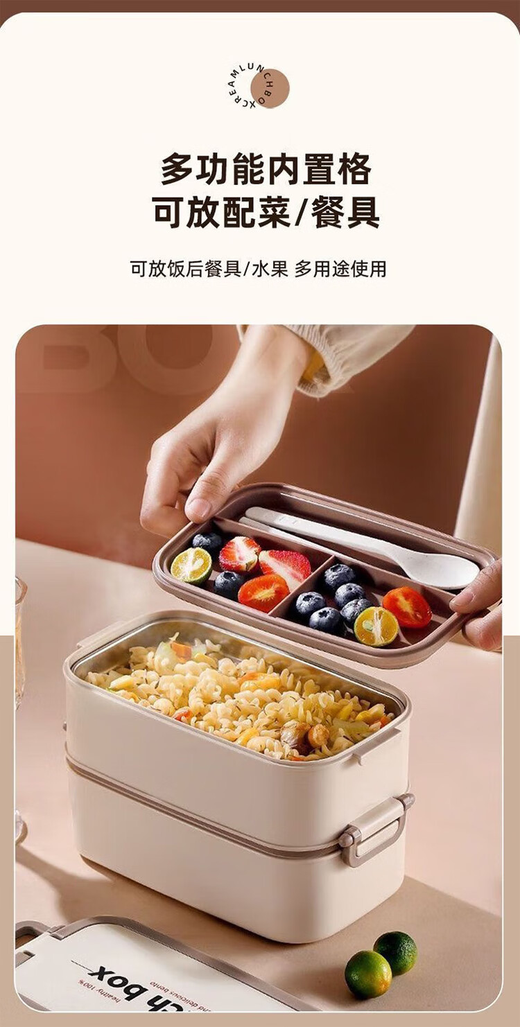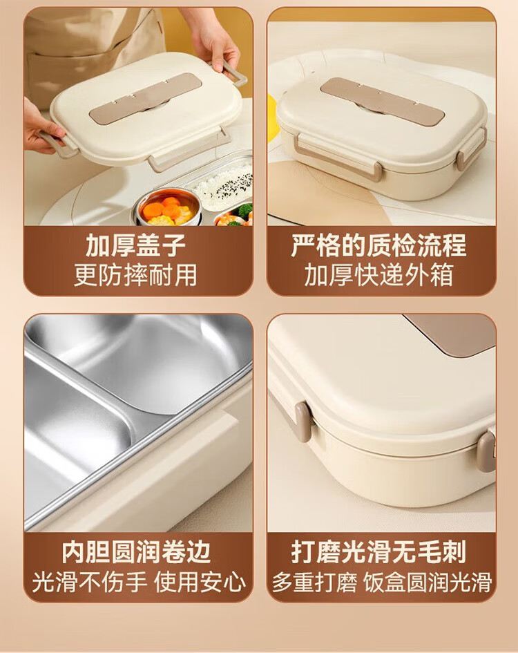 筏芯德国保温饭盒24小时超长保温桶大容量学生不锈钢上班族初中生专用 分格款【二层卡其色 1600ML】可微波炉