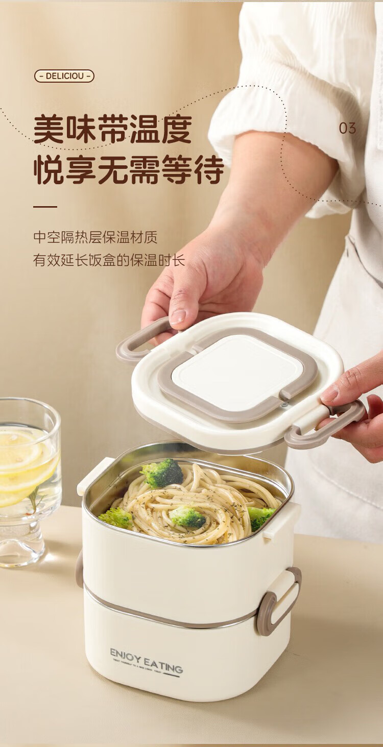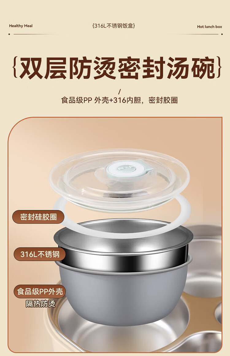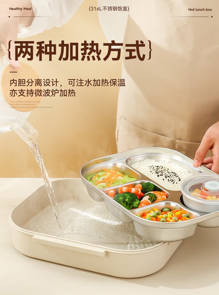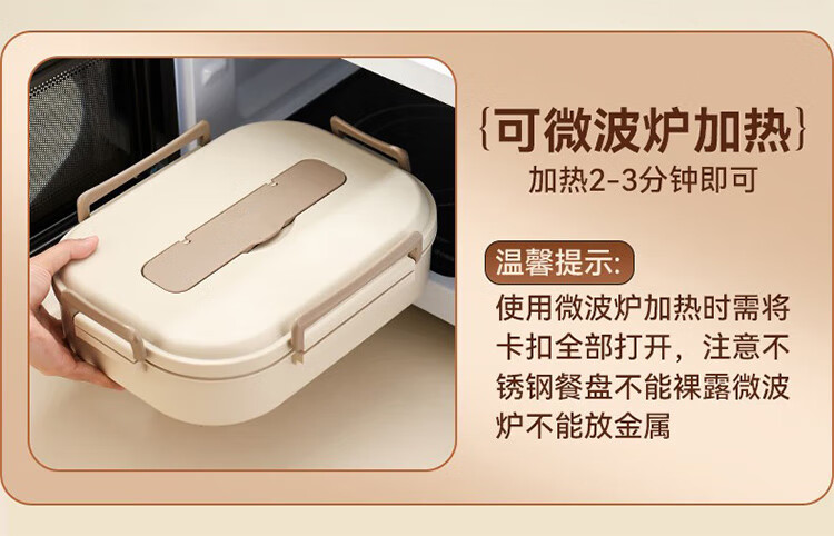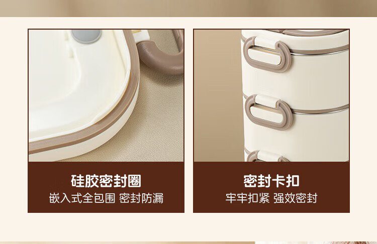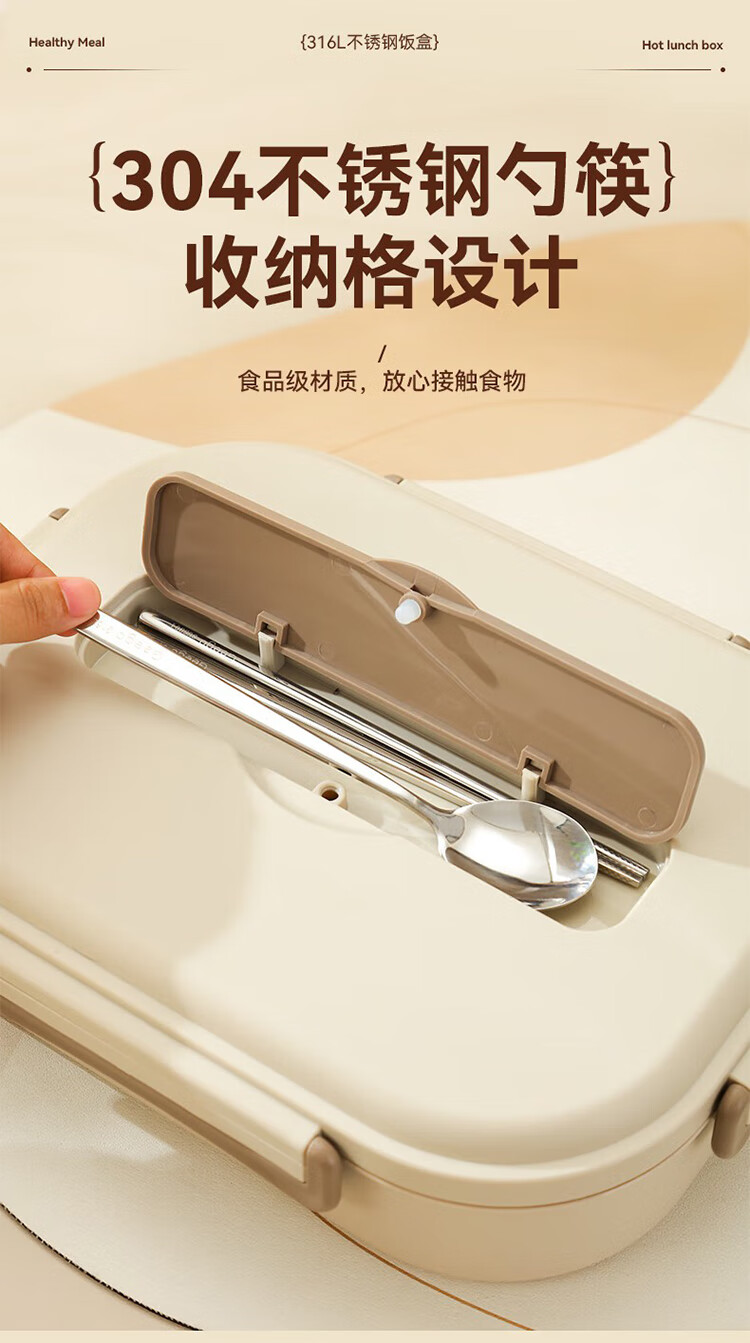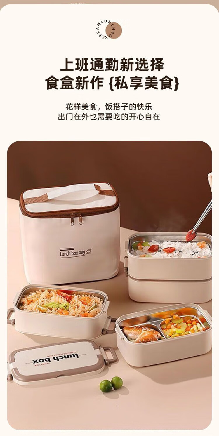 筏芯德国保温饭盒24小时超长保温桶大容量学生不锈钢上班族初中生专用 分格款【二层卡其色 1600ML】可微波炉