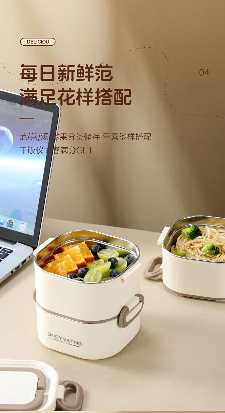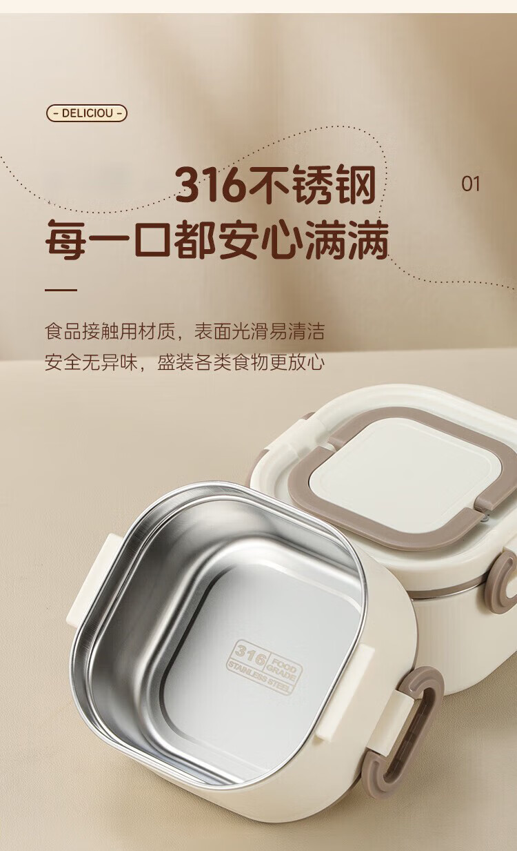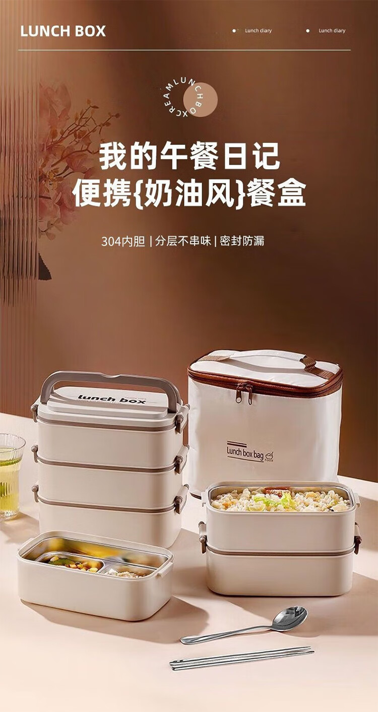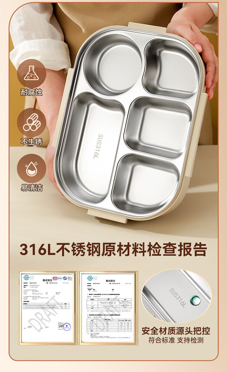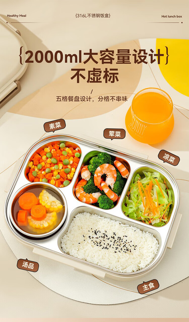 筏芯德国保温饭盒24小时超长保温桶大容量学生不锈钢上班族初中生专用 分格款【二层卡其色 1600ML】可微波炉