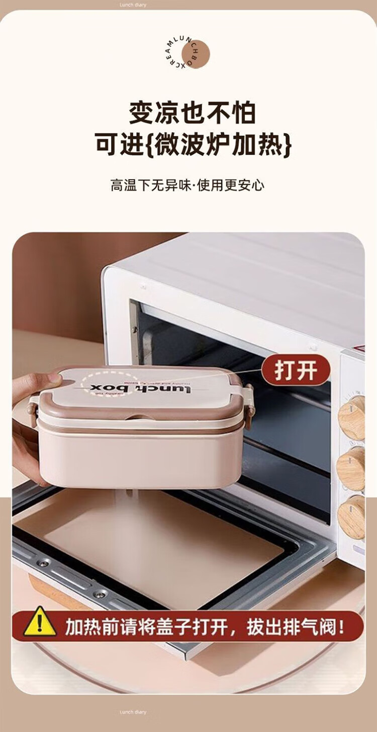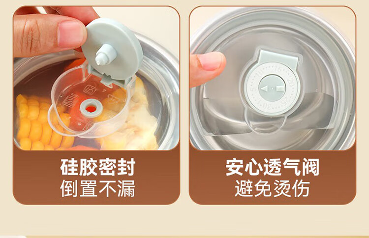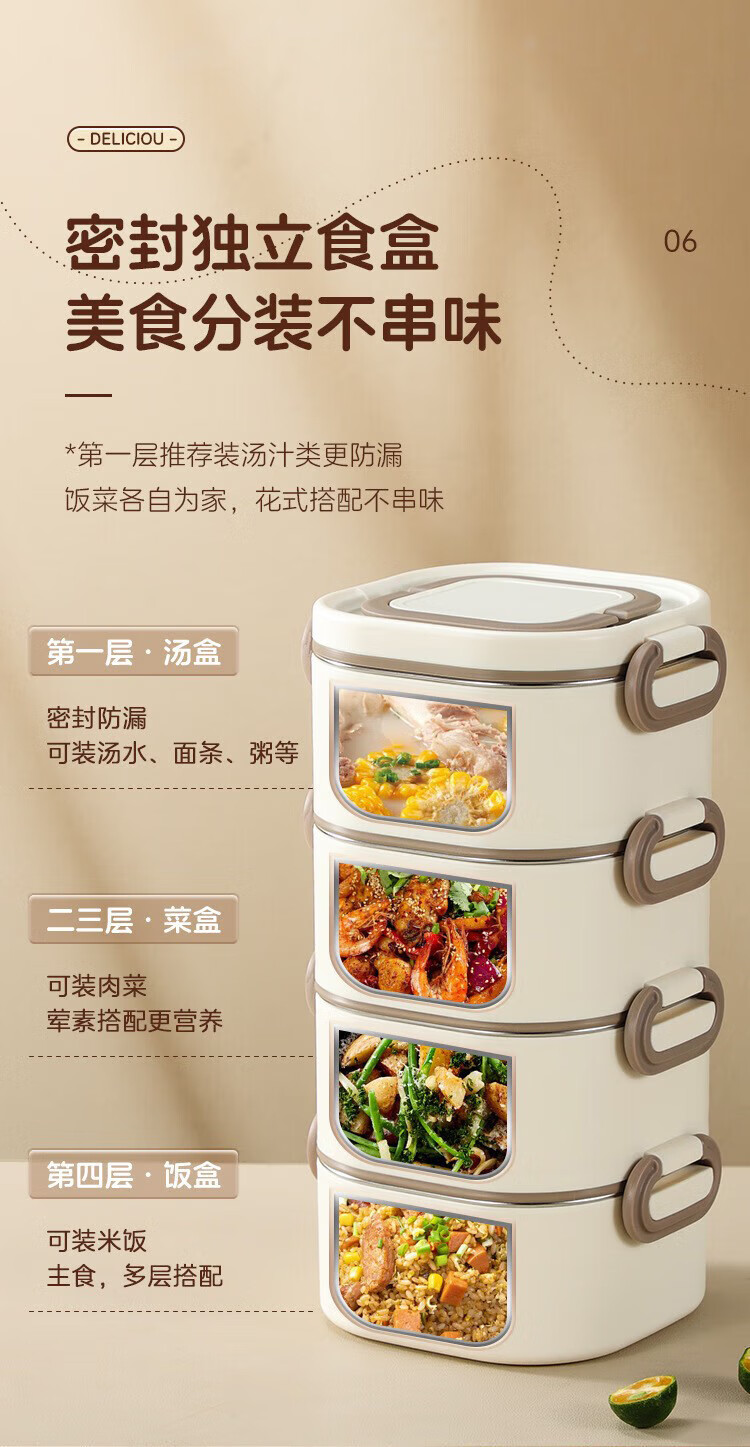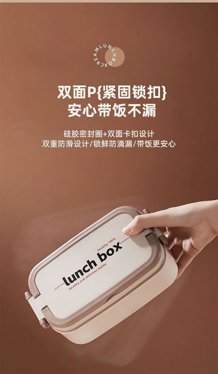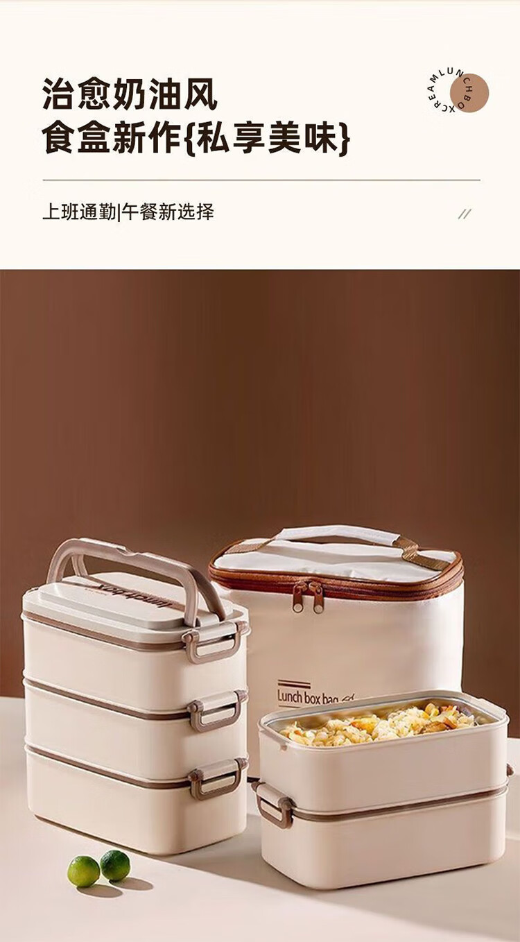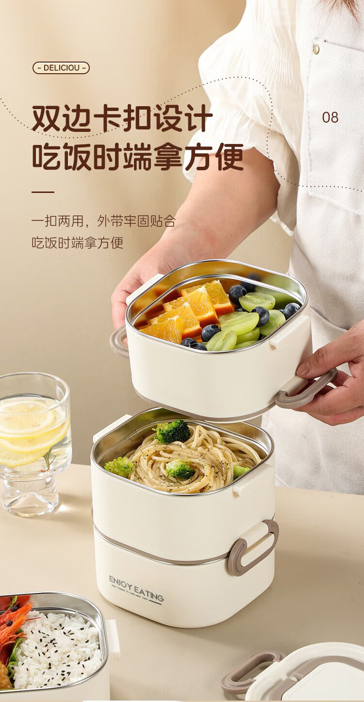 筏芯德国保温饭盒24小时超长保温桶大容量学生不锈钢上班族初中生专用 分格款【二层卡其色 1600ML】可微波炉