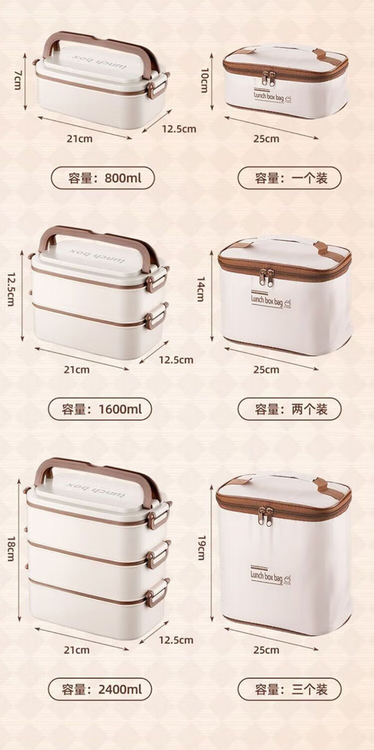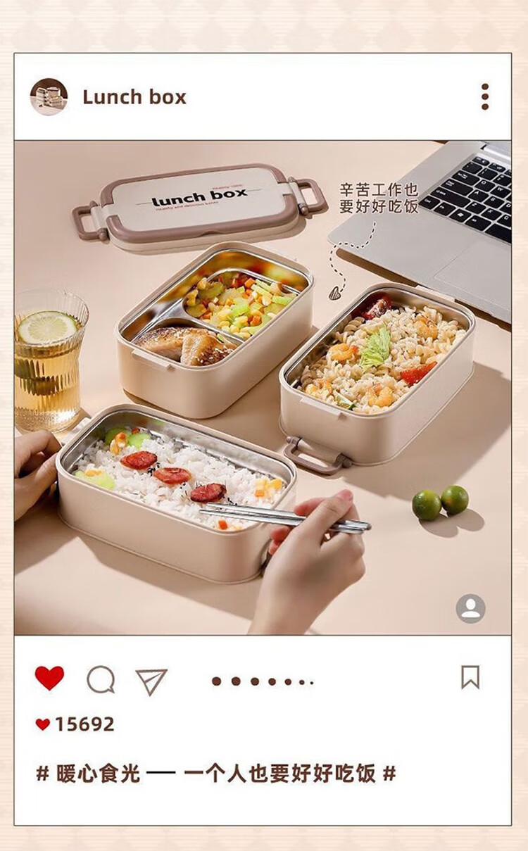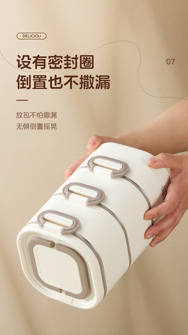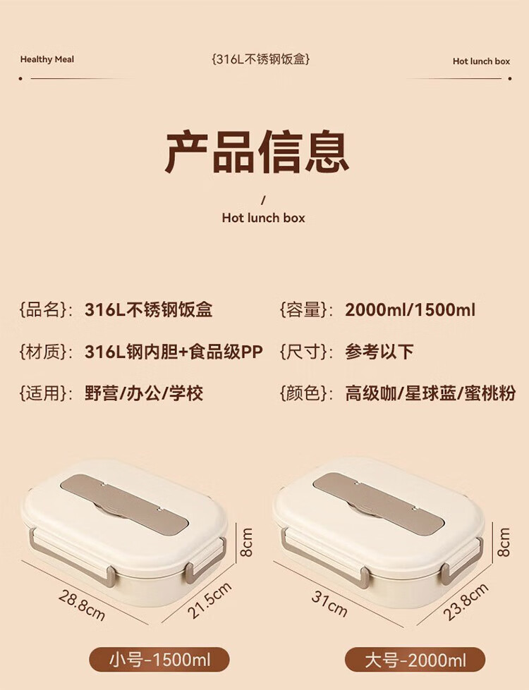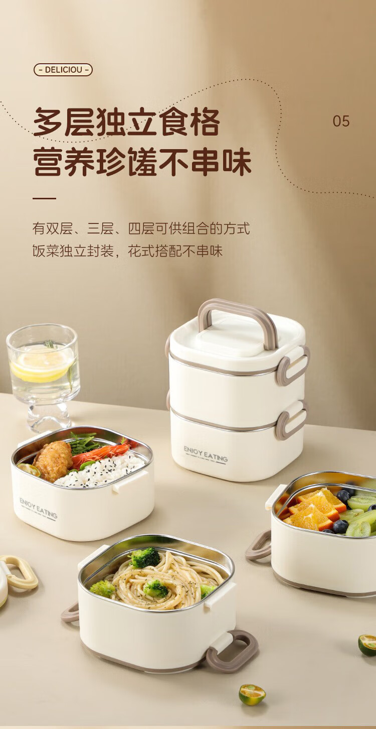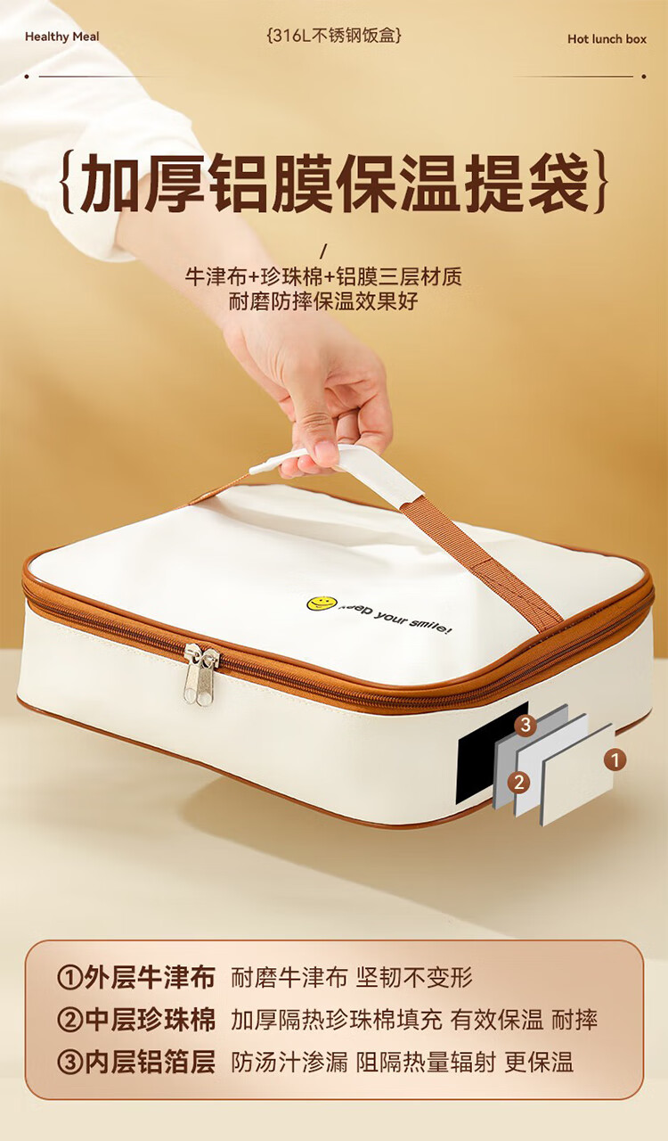筏芯德国保温饭盒24小时超长保温桶大容量学生不锈钢上班族初中生专用 分格款【二层卡其色 1600ML】可微波炉