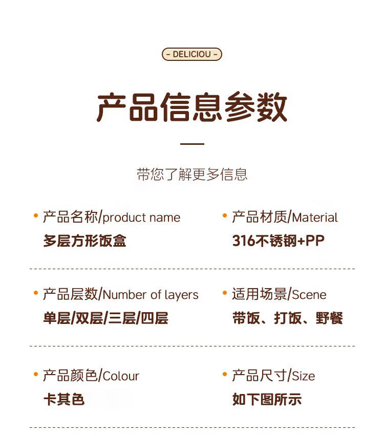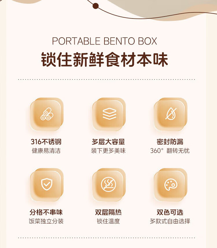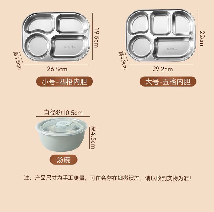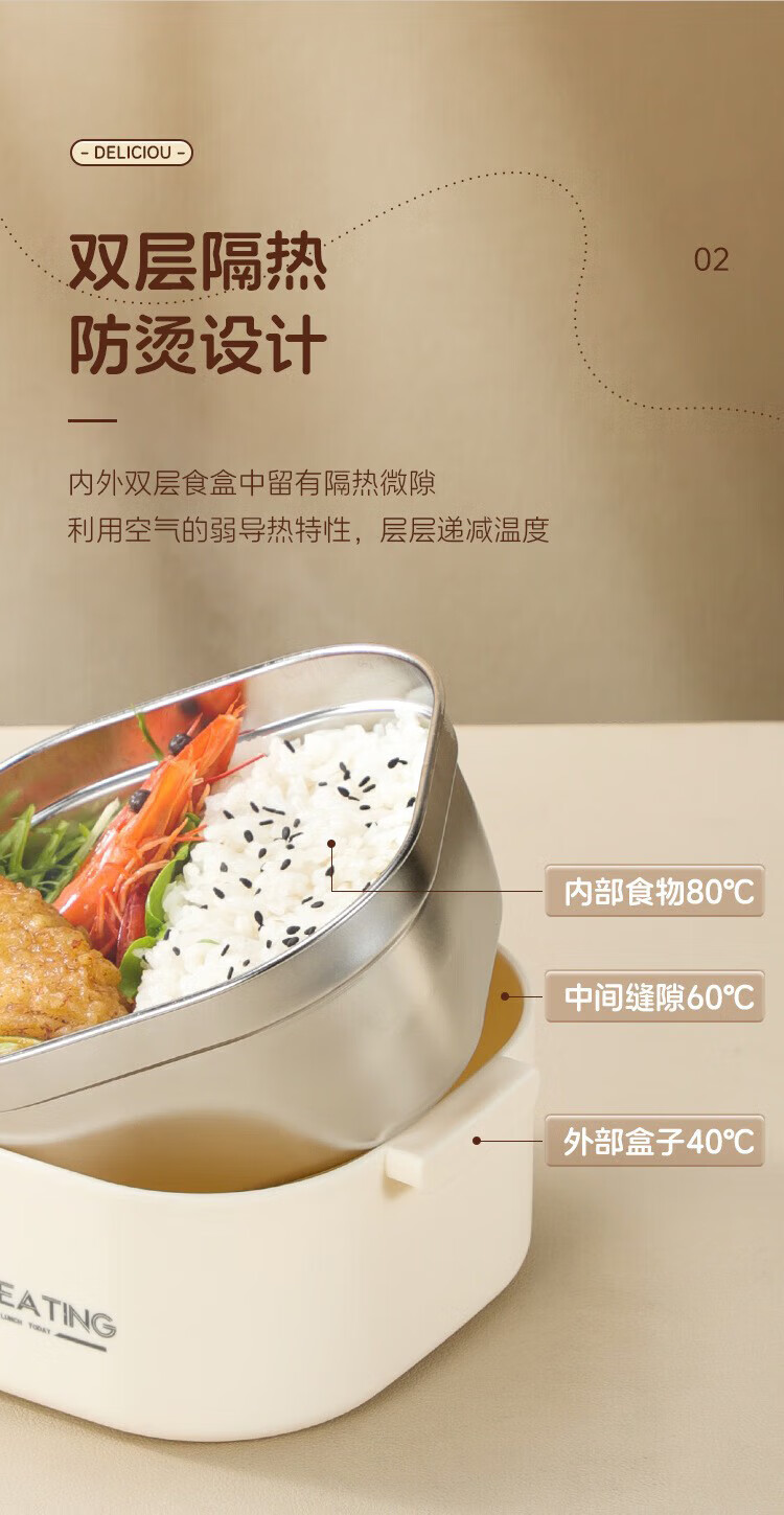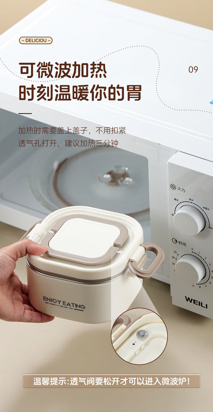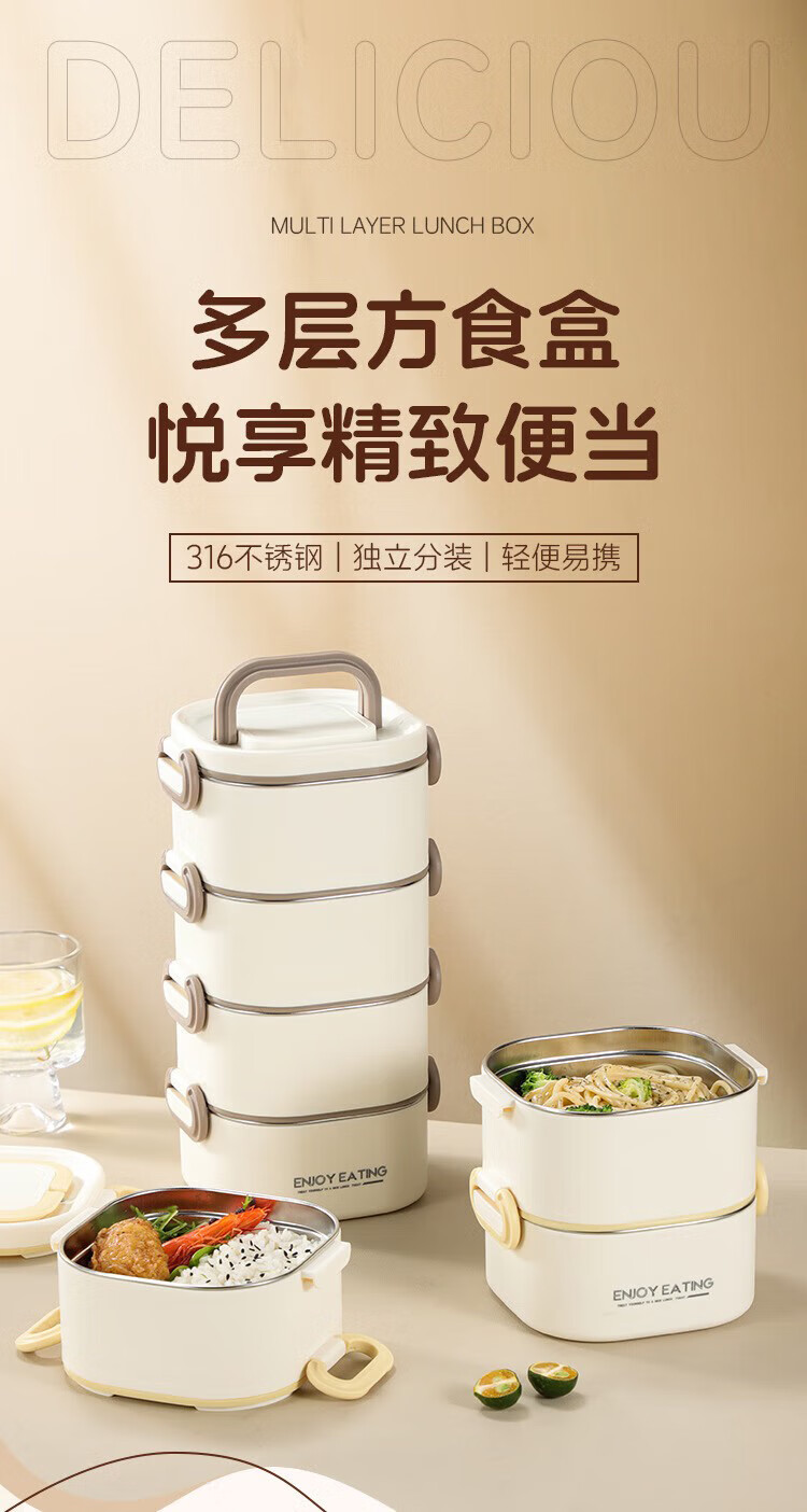 筏芯德国保温饭盒24小时超长保温桶大容量学生不锈钢上班族初中生专用 分格款【二层卡其色 1600ML】可微波炉