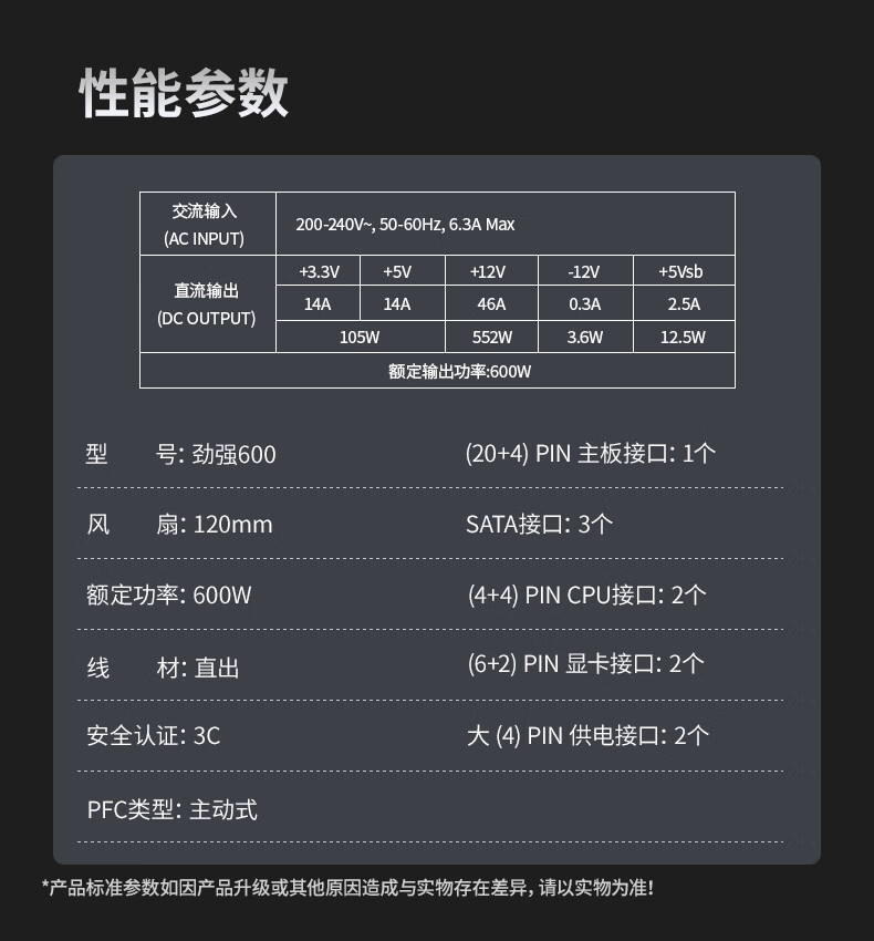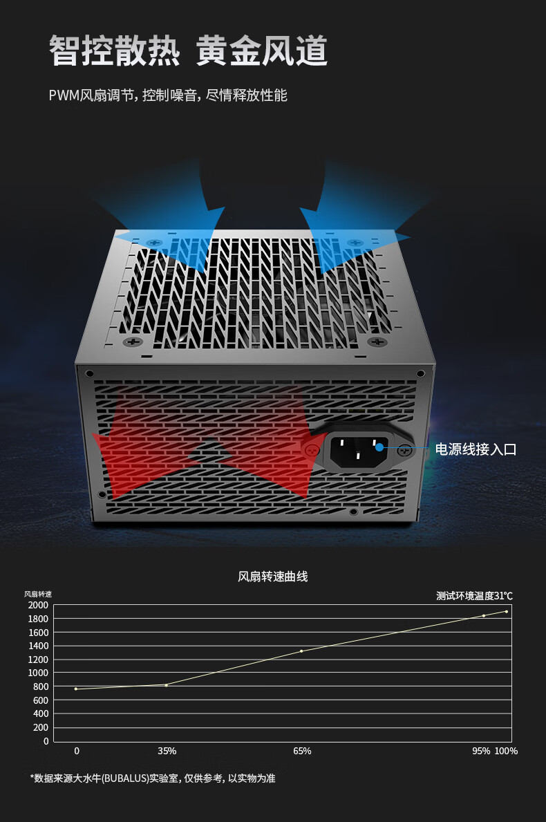 大水牛(BUBALUS)额定600W 劲强600台式电脑电源(主动式PFC/12CM风扇/智能温控/支持背线/宽幅电压)
