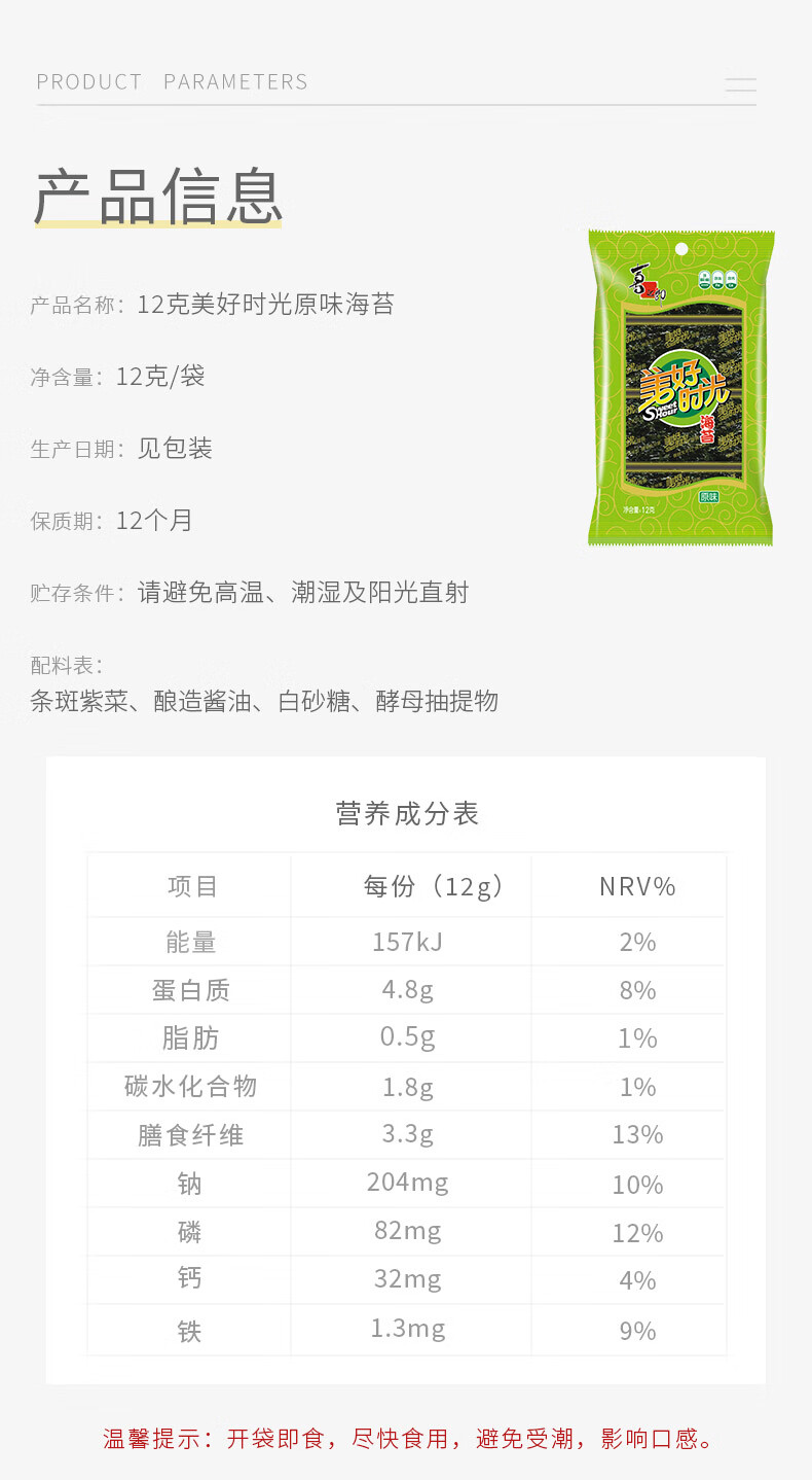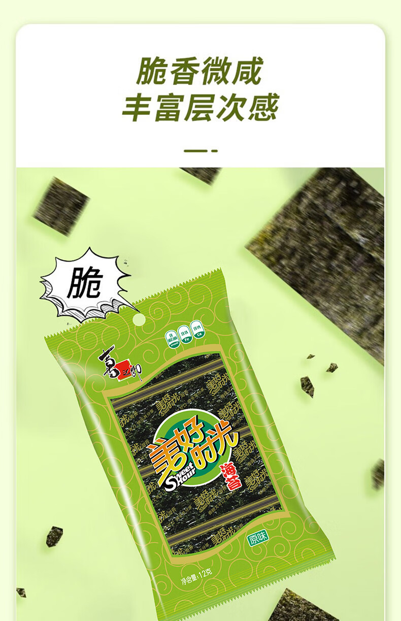 美好时光原味海苔16包共12g 寿司即食海苔片下午茶儿童休闲零食