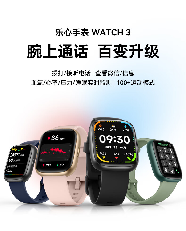 乐心手环9运动智能手环测心率血氧睡眠监测智能穿戴手表防水游泳健身跑步长续航运动手环送礼男友女友 【旗舰款】WATCH3黑色-升级大屏长续航蓝牙通话