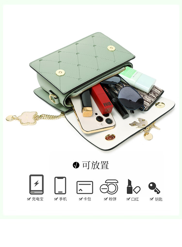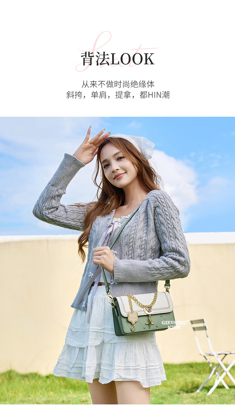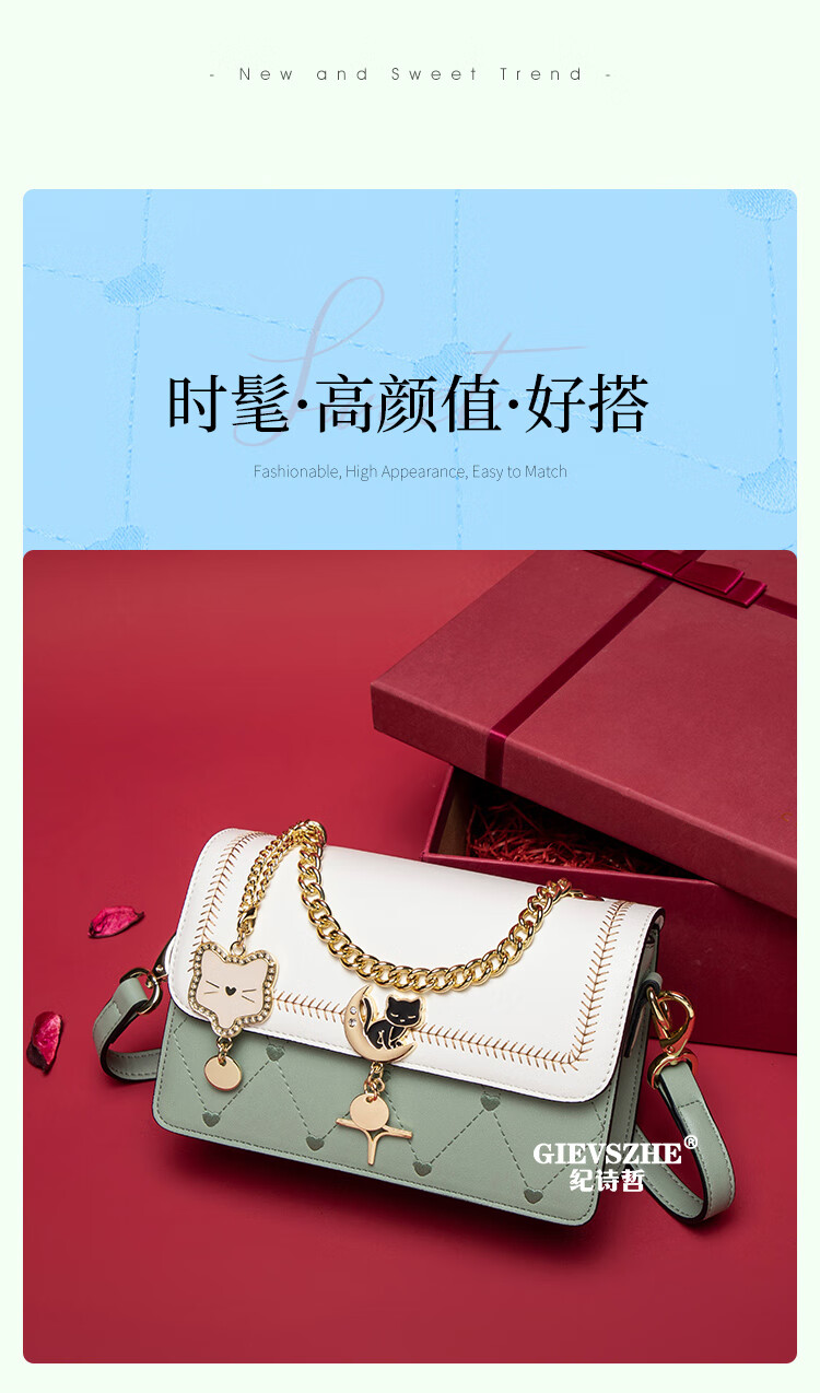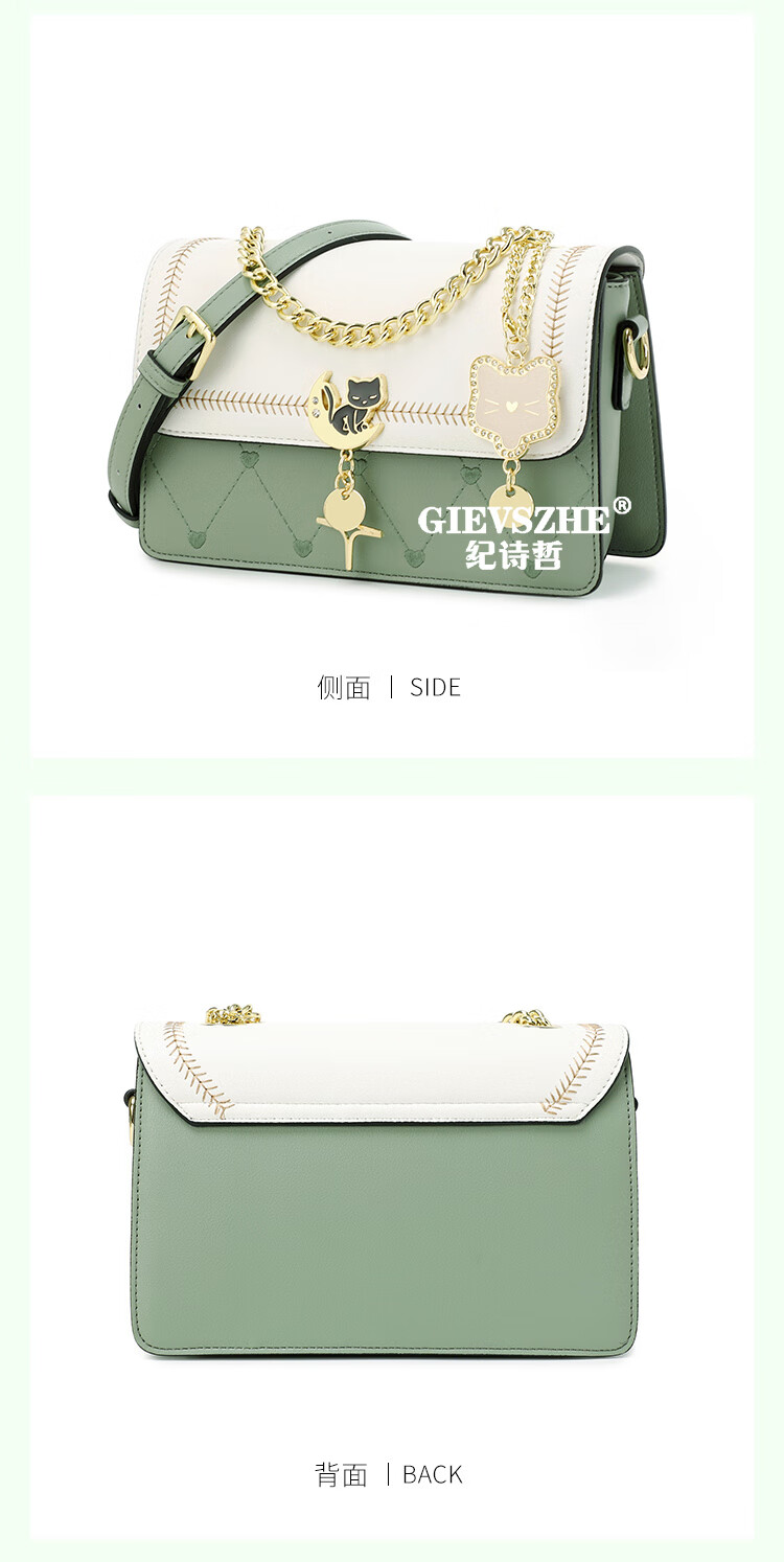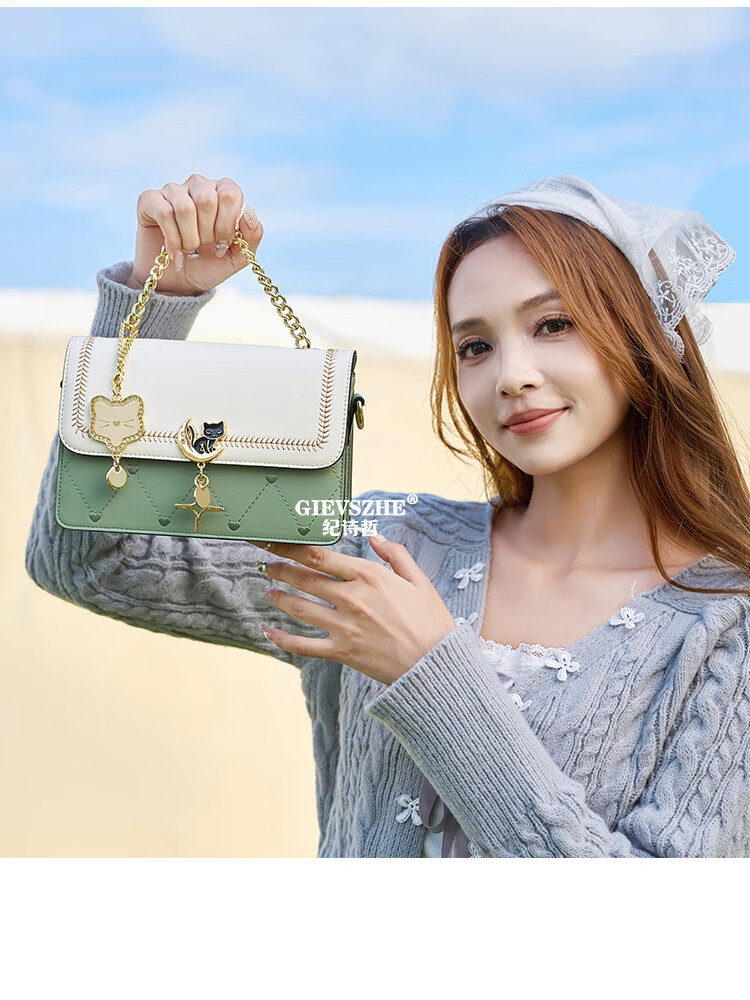 纪诗哲轻奢侈包包女包2025新款女士单肩斜挎包送老婆女友生日圣诞节礼物 米白绿【2025年新款】 品牌礼盒装