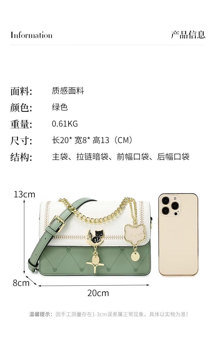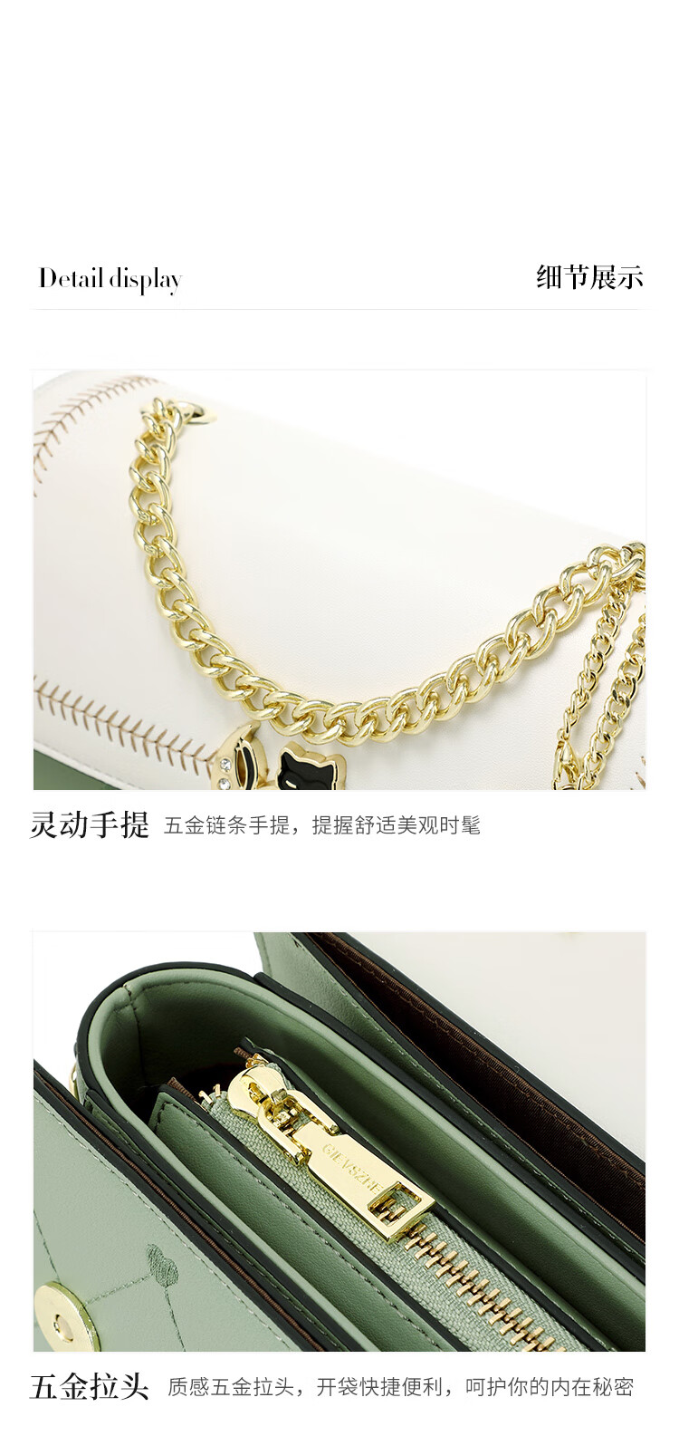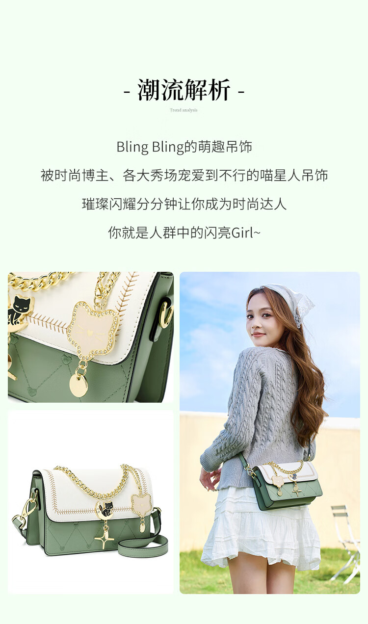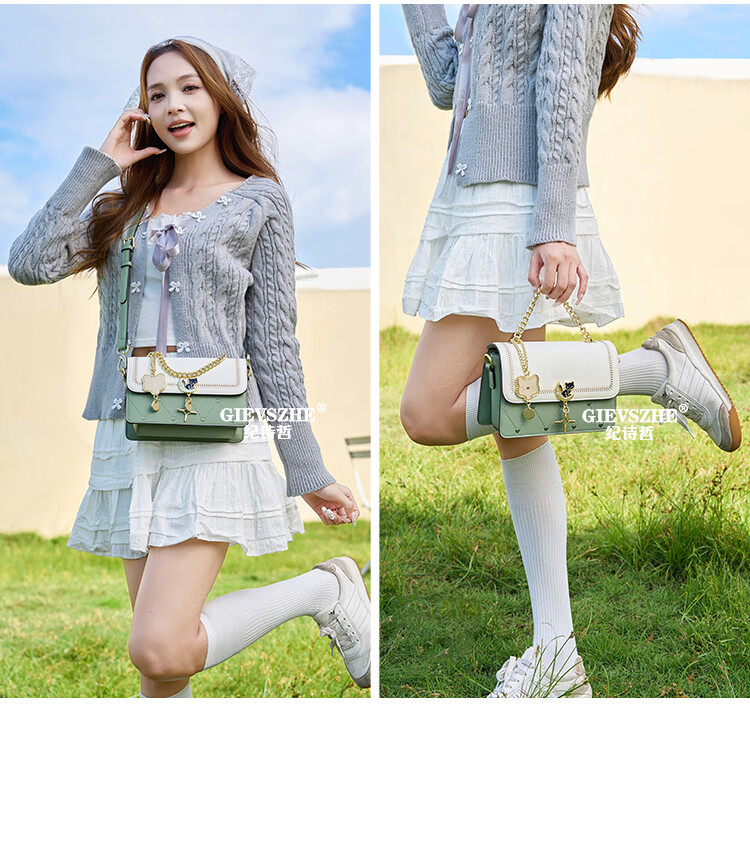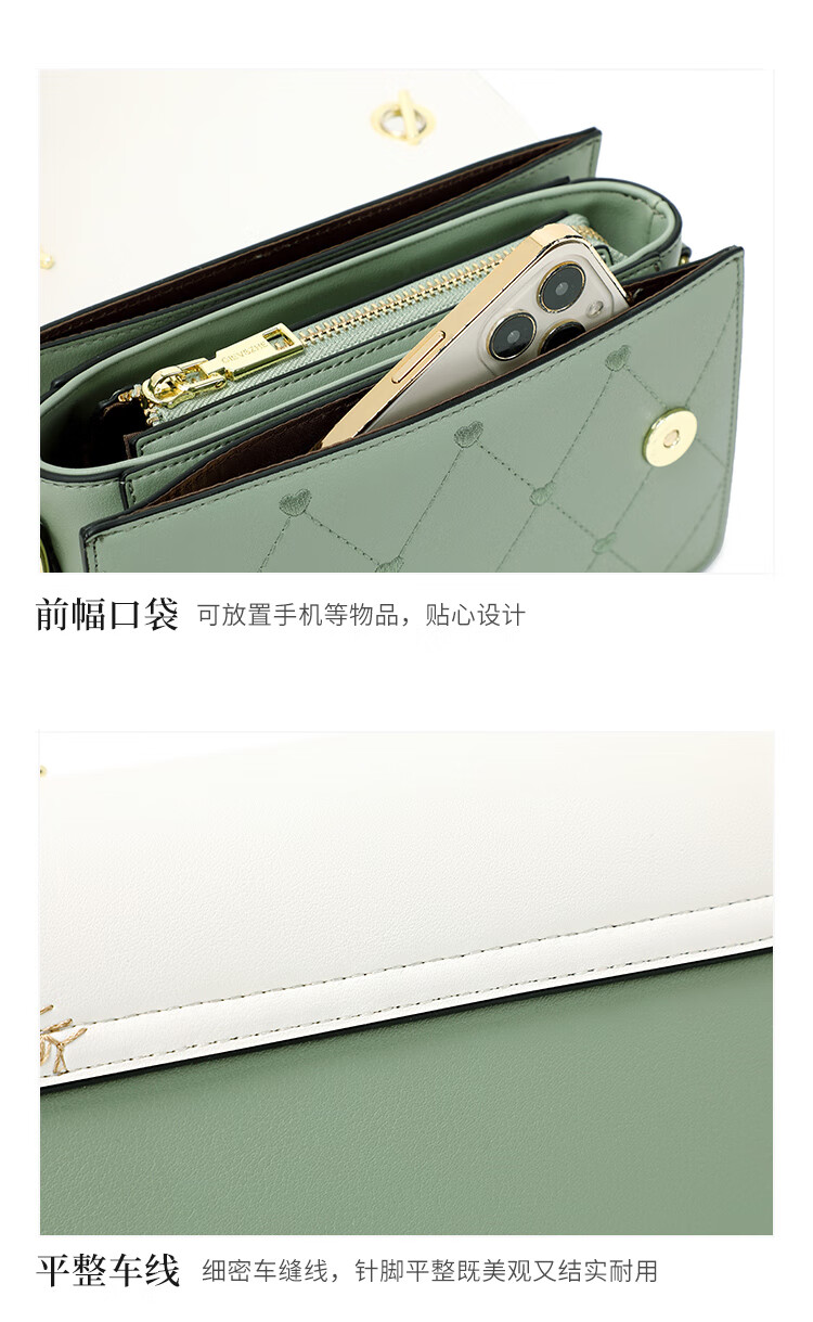 纪诗哲轻奢侈包包女包2025新款女士单肩斜挎包送老婆女友生日圣诞节礼物 米白绿【2025年新款】 品牌礼盒装