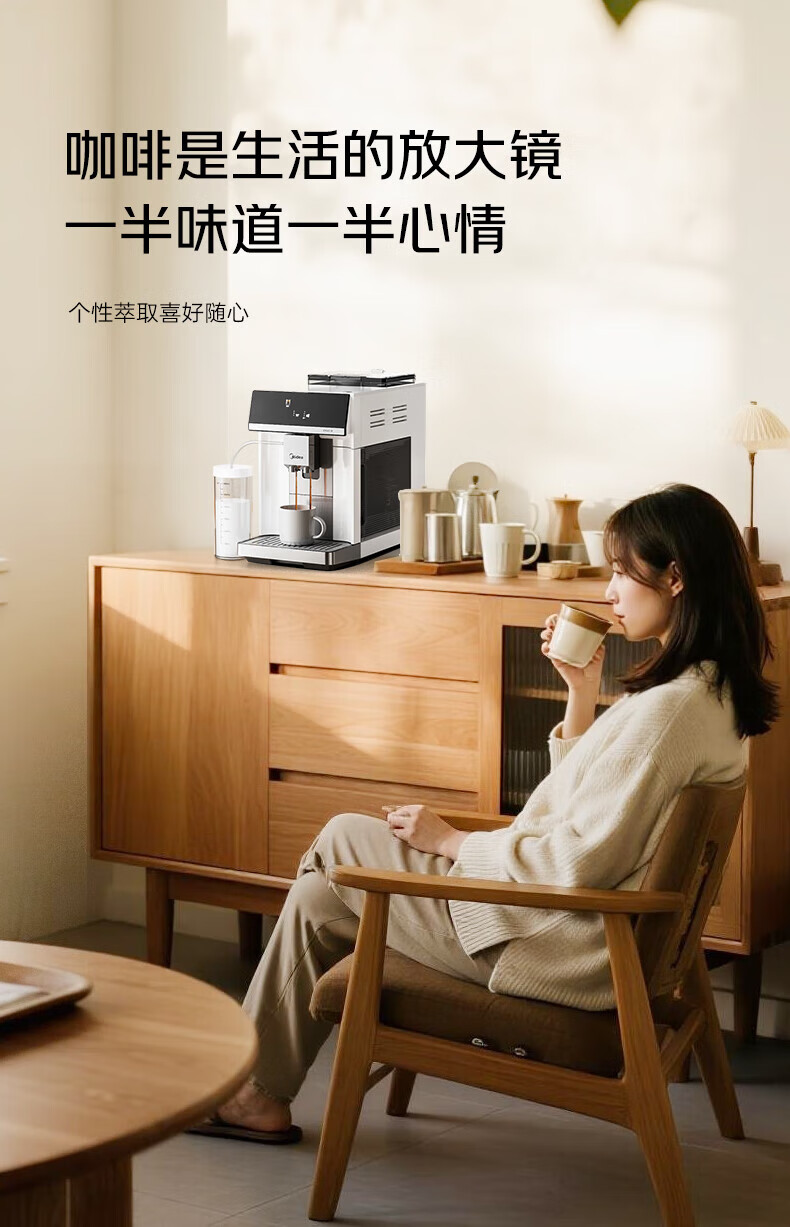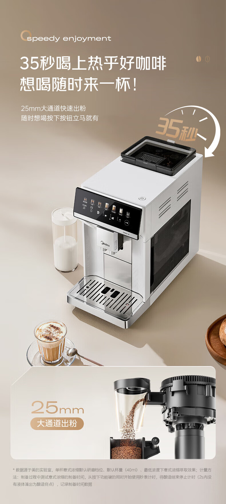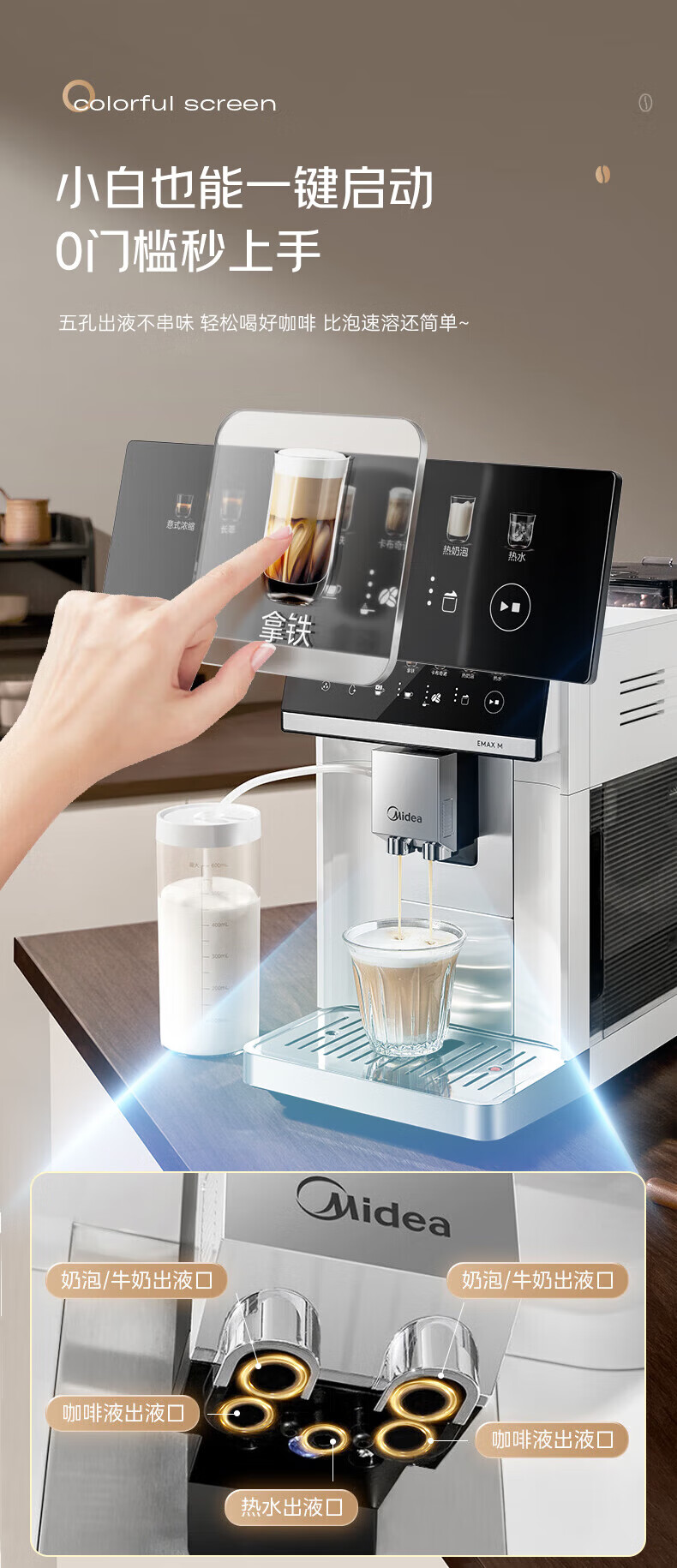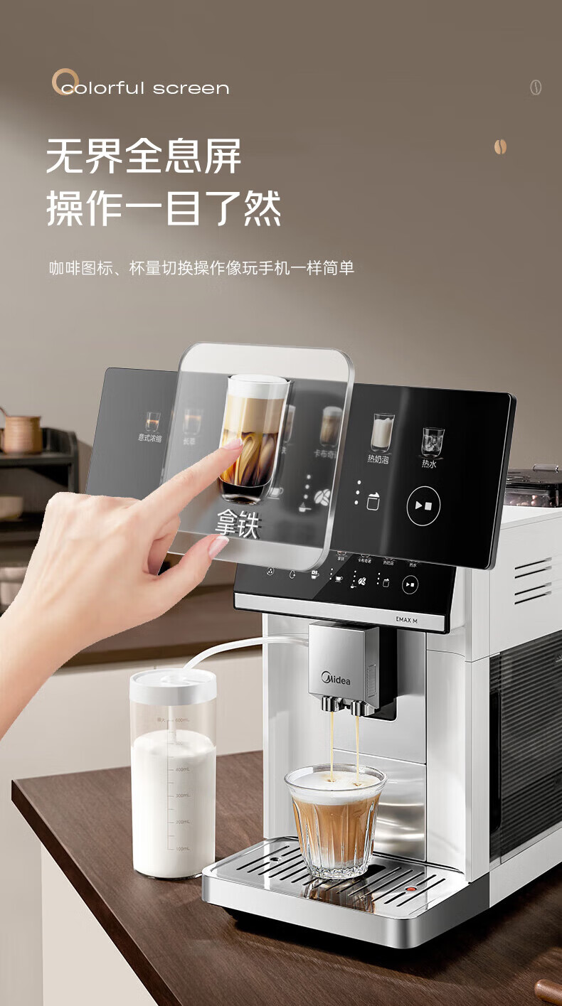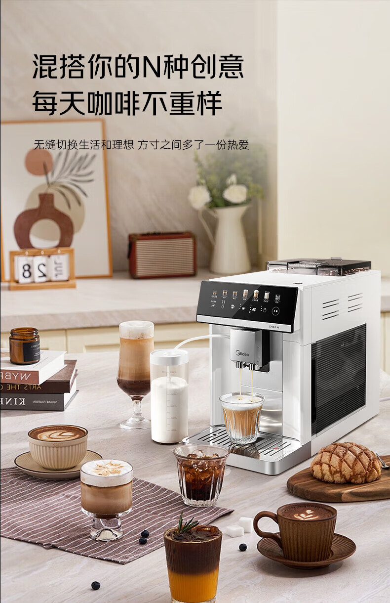 美的(Midea)"咖魔方"全自动咖啡机家用办公式鲜萃意式浓缩磨豆机研磨一体奶泡机大彩屏触控MA-KFEA01 【x鲜萃】MA-KFEA01