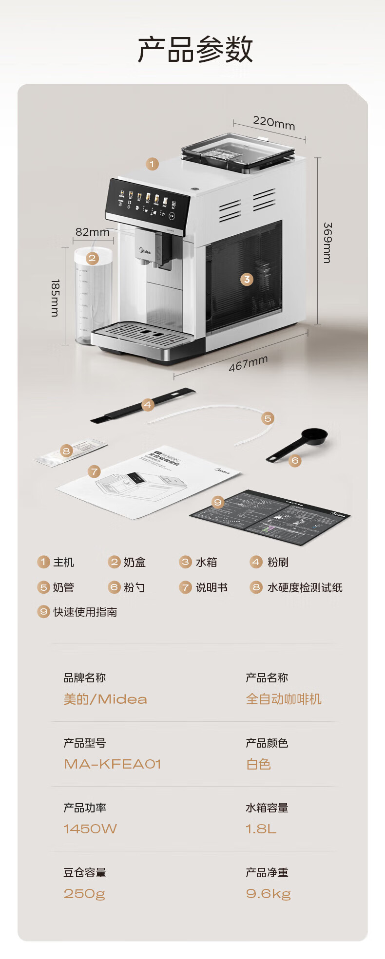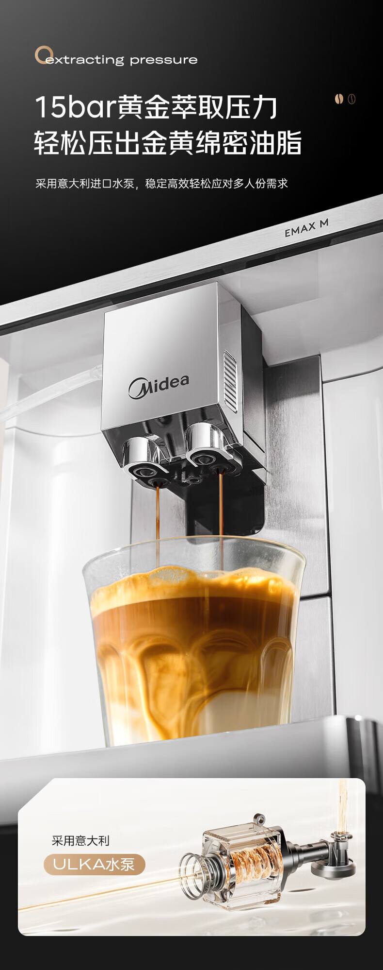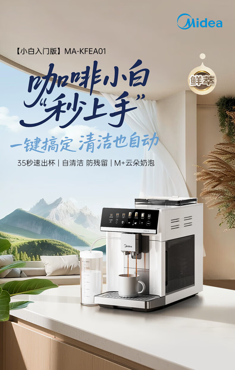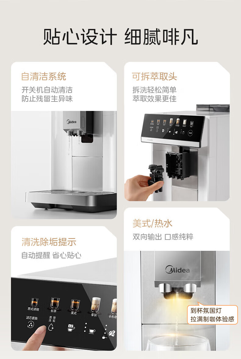 美的(Midea)"咖魔方"全自动咖啡机家用办公式鲜萃意式浓缩磨豆机研磨一体奶泡机大彩屏触控MA-KFEA01 【x鲜萃】MA-KFEA01