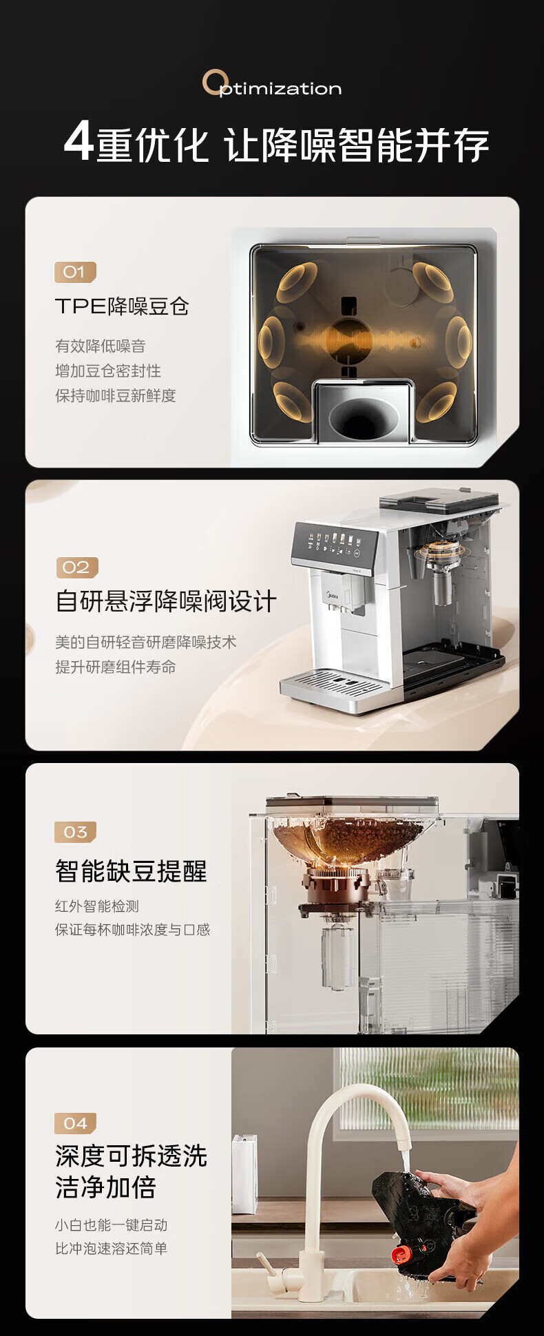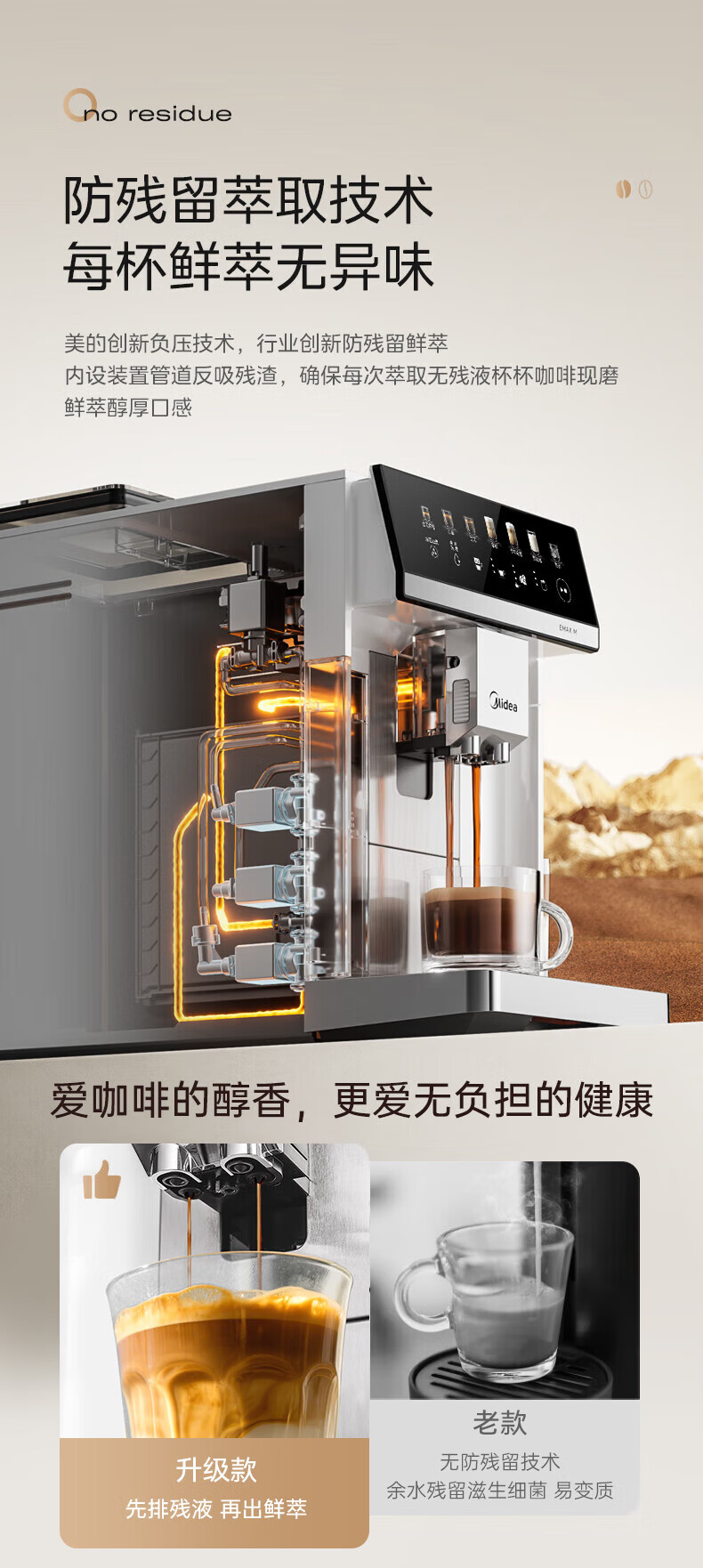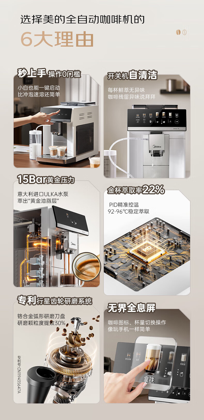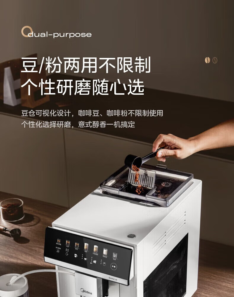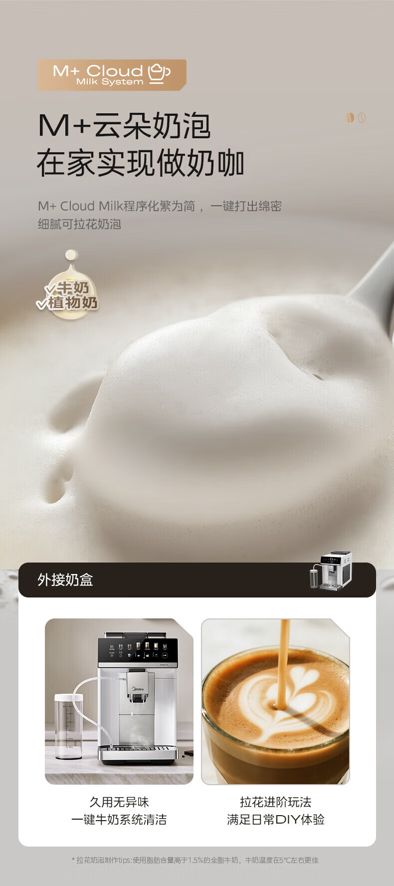 美的(Midea)"咖魔方"全自动咖啡机家用办公式鲜萃意式浓缩磨豆机研磨一体奶泡机大彩屏触控MA-KFEA01 【x鲜萃】MA-KFEA01