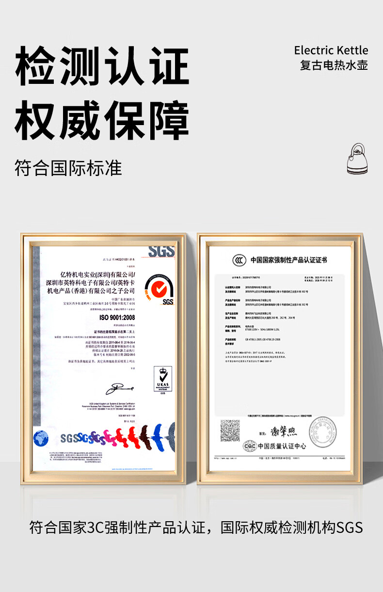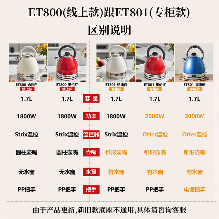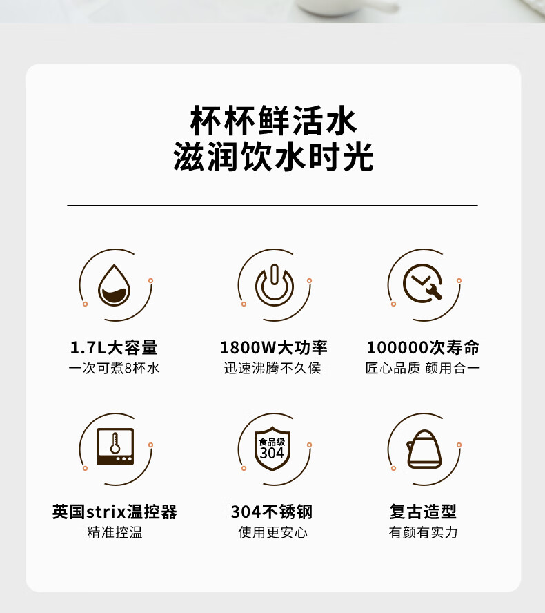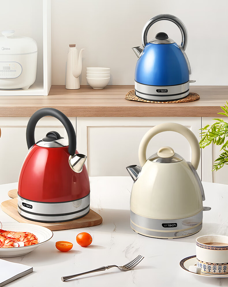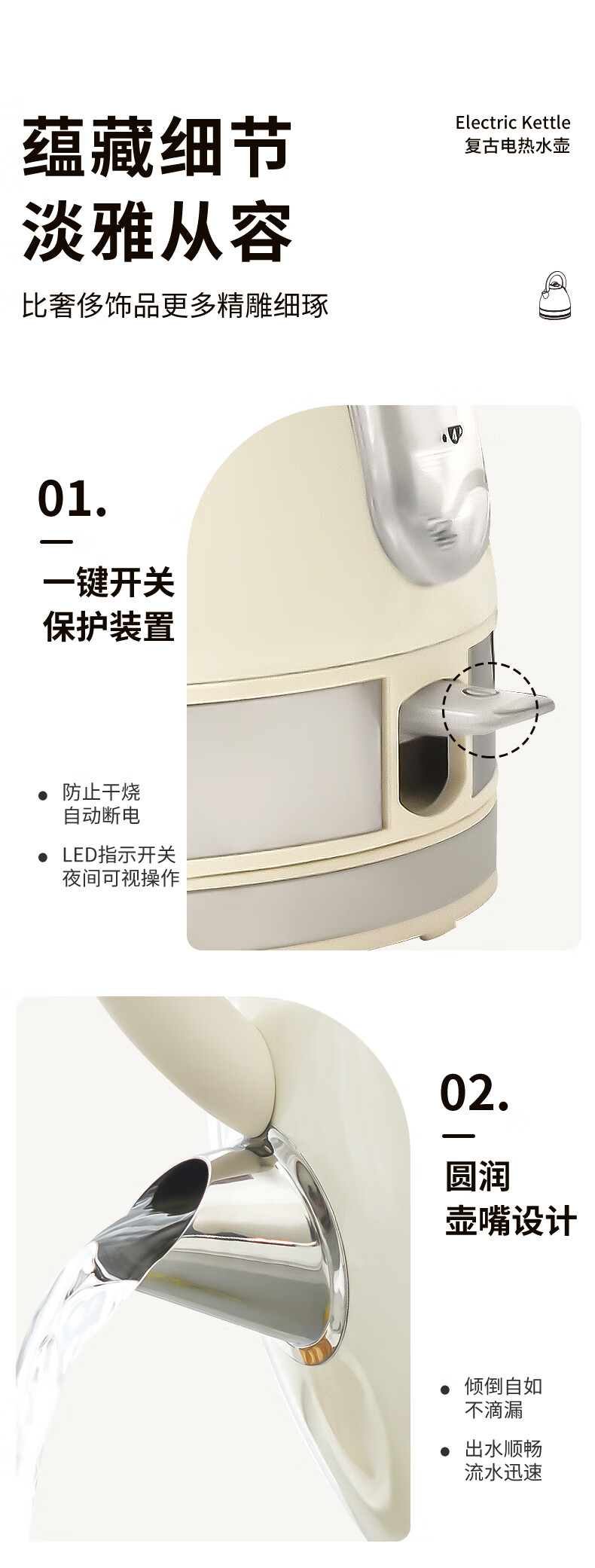 一特(EnTech)英伦复古1800W快速烧水壶家用高颜值高端电热水壶大容量分体式加厚304不锈钢电烧水自动断电防干烧 1.7L 专柜款-奶油白(带水窗)