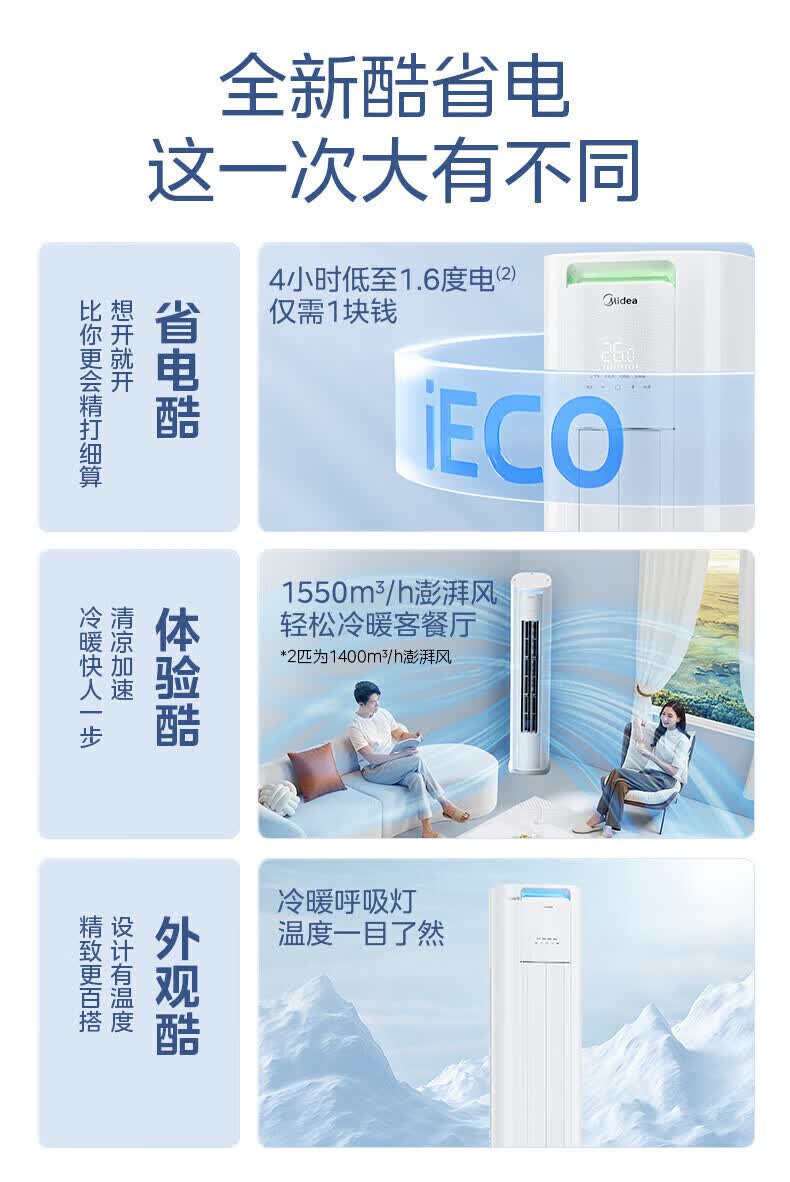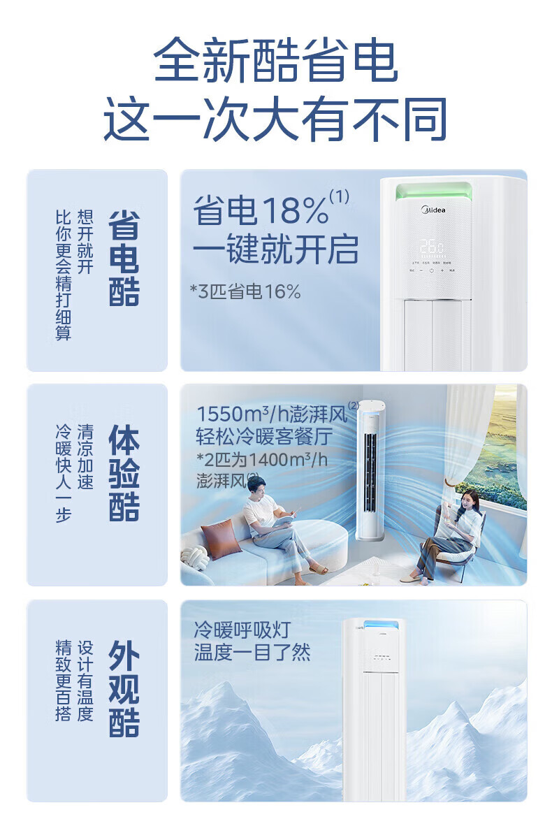 美的空调柜机Ultra 酷省电Pro 大3匹/4匹新一级能效节能省电变频冷暖立式家用客厅空调APP智控纯铜管 酷省电Ultra 大3匹 一年省816度电