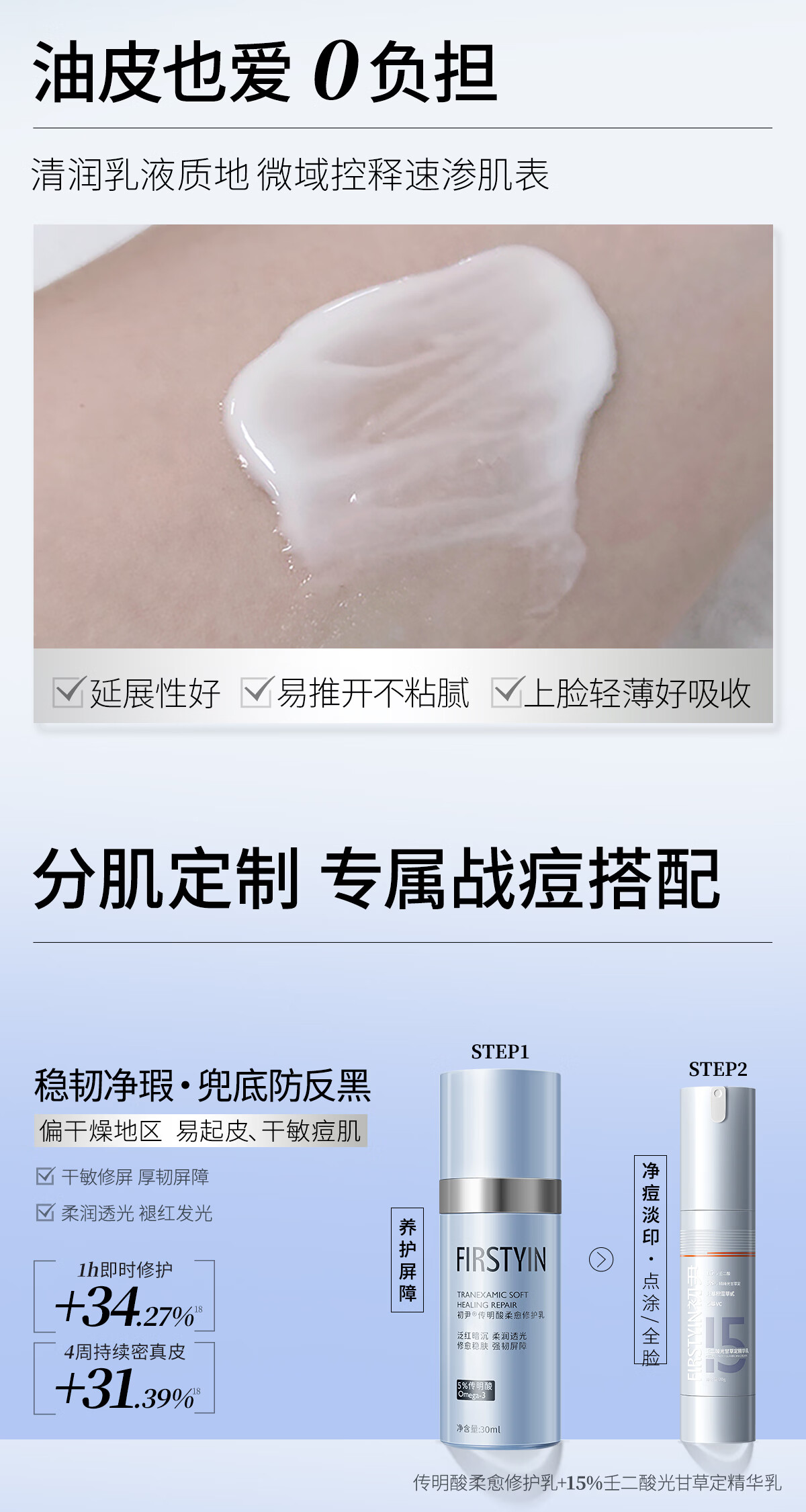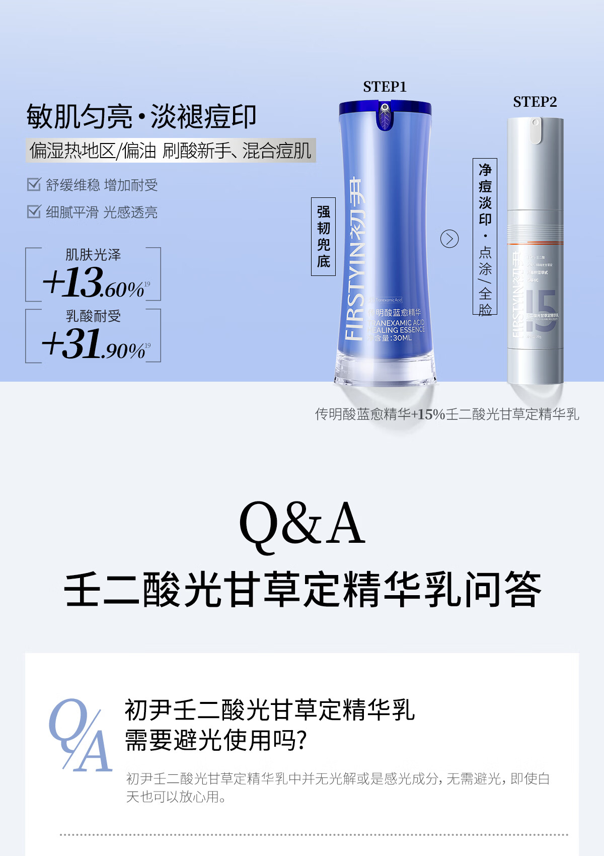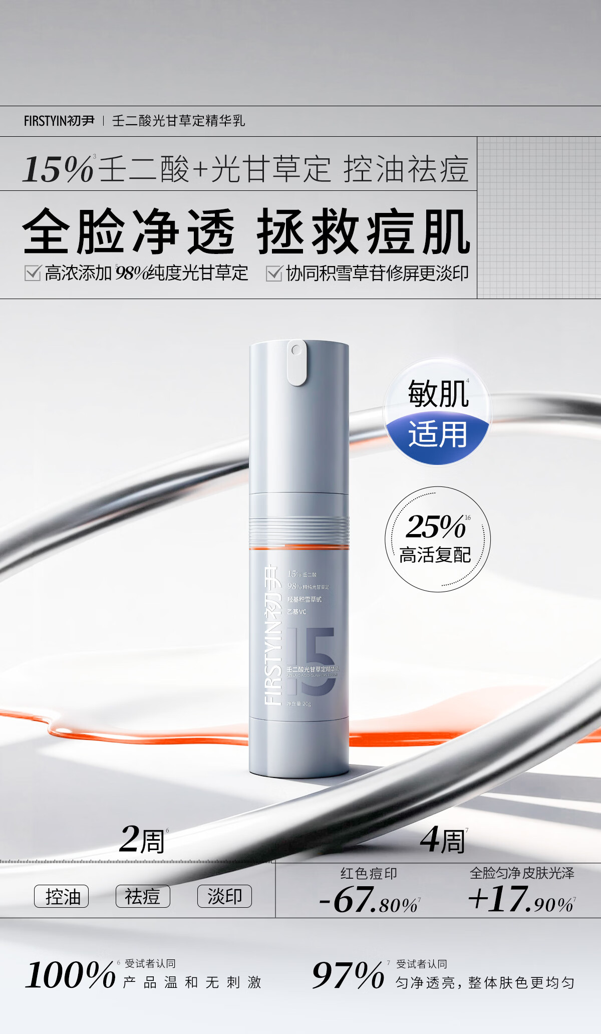 初尹(FIRSTYIN)15%壬二酸面霜 光甘草定乳温和祛痘控油褪红 敏感肌先试后买 20g【单支体验】赠同款1g试用装